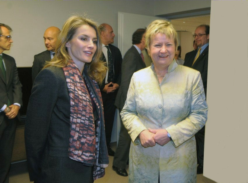 07.10.2013: In Vertretung von Ministerpräsidentin Hannelore Kraft begleitete Ministerin Sylvia Löhrmann das spanische Kronprinzenpaar Felipe und Letizia auf der Ernährungsmesse „Anuga“ in Köln.