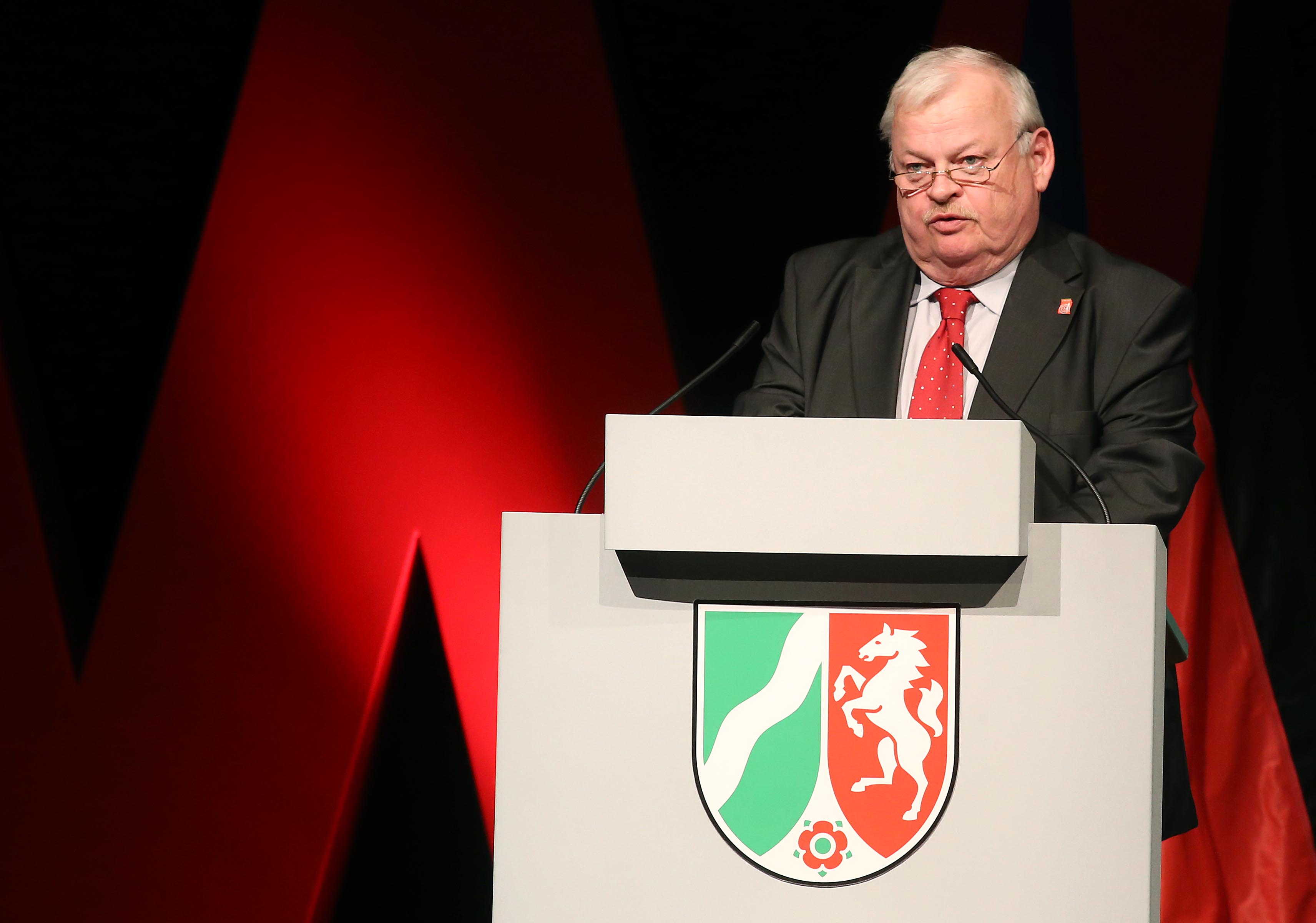 Arbeitsminister Schneider bei seiner Begrüßungsrede.