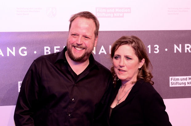 Der Sänger der Fantastischen Vier Smudo und Petra Müller, Geschäftsführerin der Film und MedienStiftung NRW.