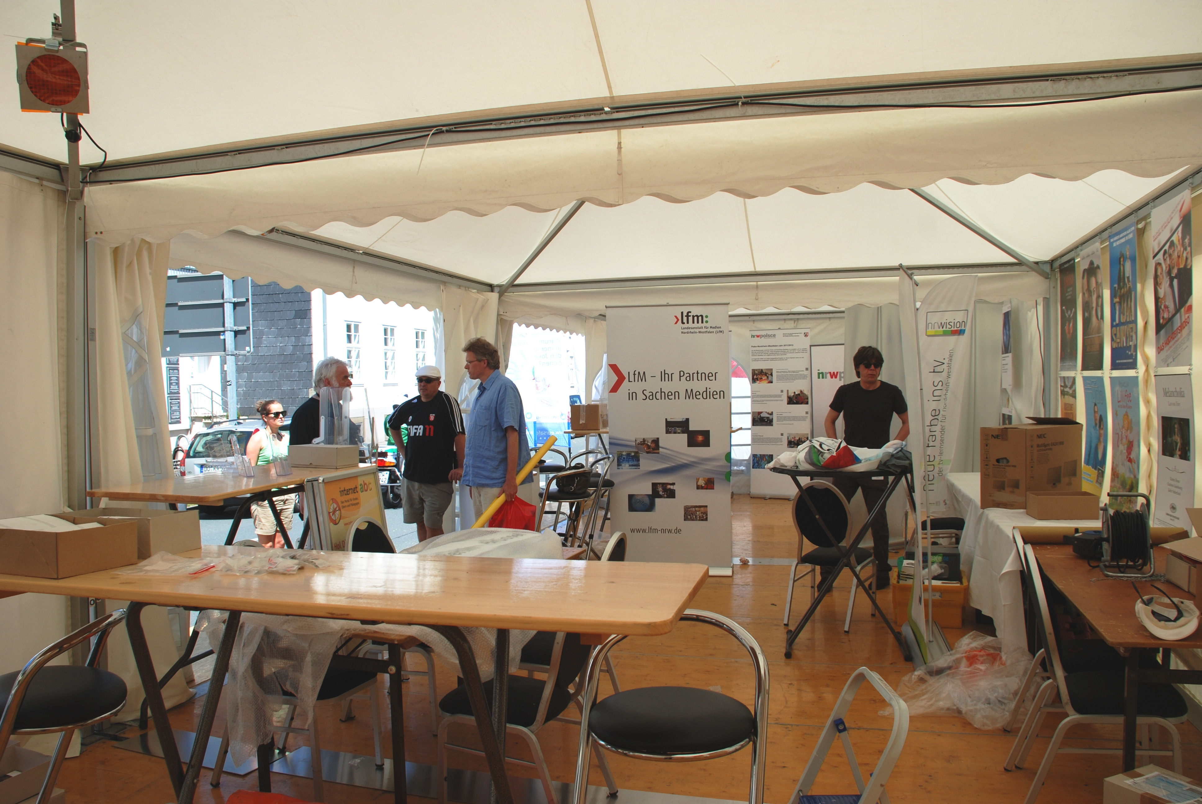 In Detmold steigt die Spannung. Am Vortag des Nordrhein-Westfalen-Tages 2012 laufen dort die Vorbereitungen auf Hochtouren. Fußgänger, Bühnenbauer und Gabelstapler teilen sich die Straßen zwischen Ausstellungszelten.