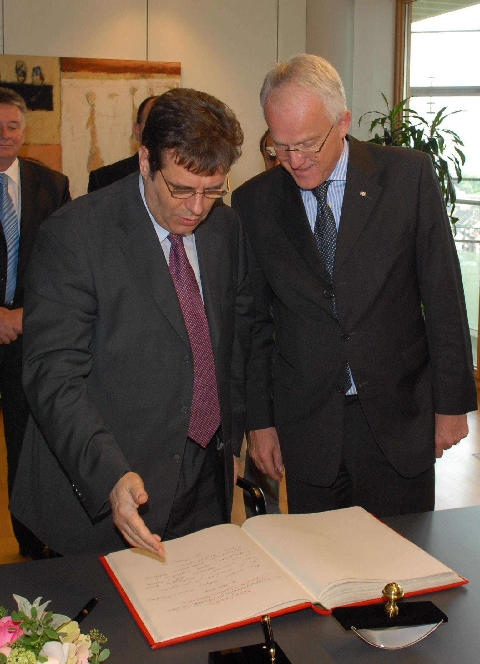 Sie sind hier:StartseiteNRW informierenMediathek Der serbische Ministerpräsident Vojislav Kostunica besucht Nordrhein-Westfalen Der Ministerpräsident der Republik Serbien, Vojislav Kostunica, besucht Nordrhein-Westfalen und trägt sich in das Gästebuch der Landesregierung ein.Termin: 16. Mai 2006 Mediendetails Dateityp Bild Auflösung 1535 x 2126 px Download (337 KB)