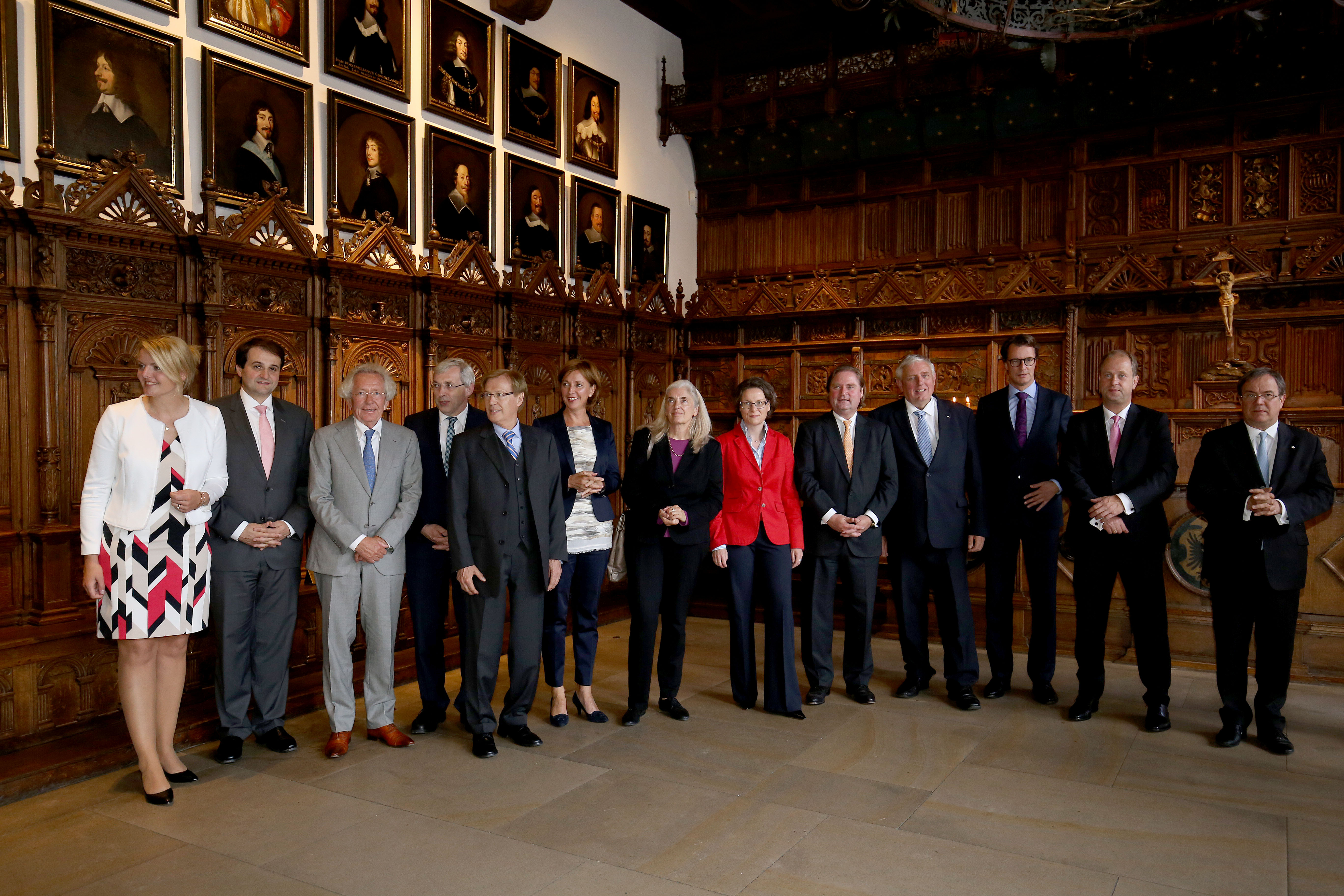 Gruppenfoto des neuen Landeskabinetts im Friedenssaal.