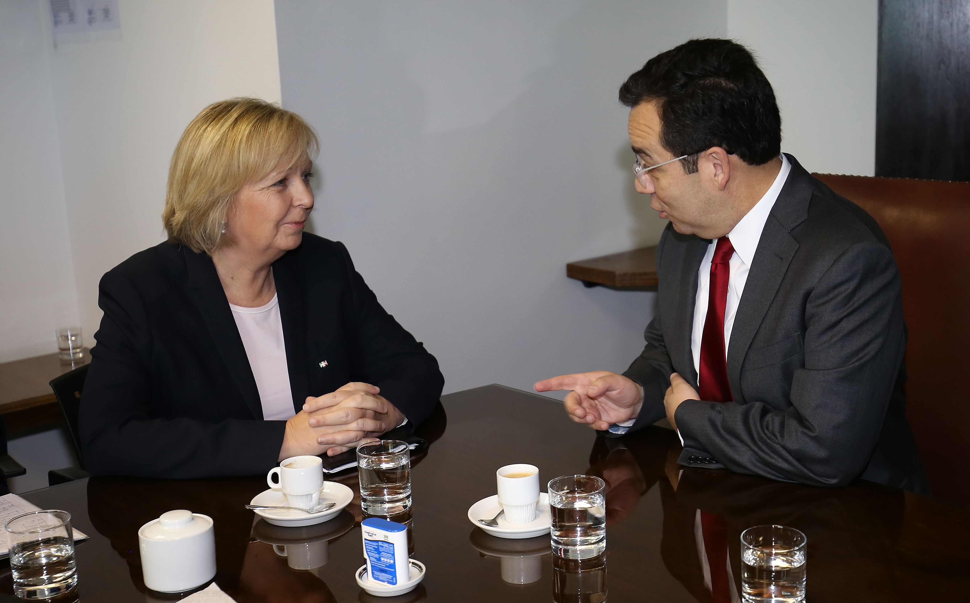 Ministerpräsidentin Hannelore Kraft ist am Montag, 23. November 2015, in Santiago de Chile mit dem chilenischen Minister für Wirtschaft, Förderung und Tourismus, Luis Felipe Céspedes zu einem Gespräch zusammengekommen.