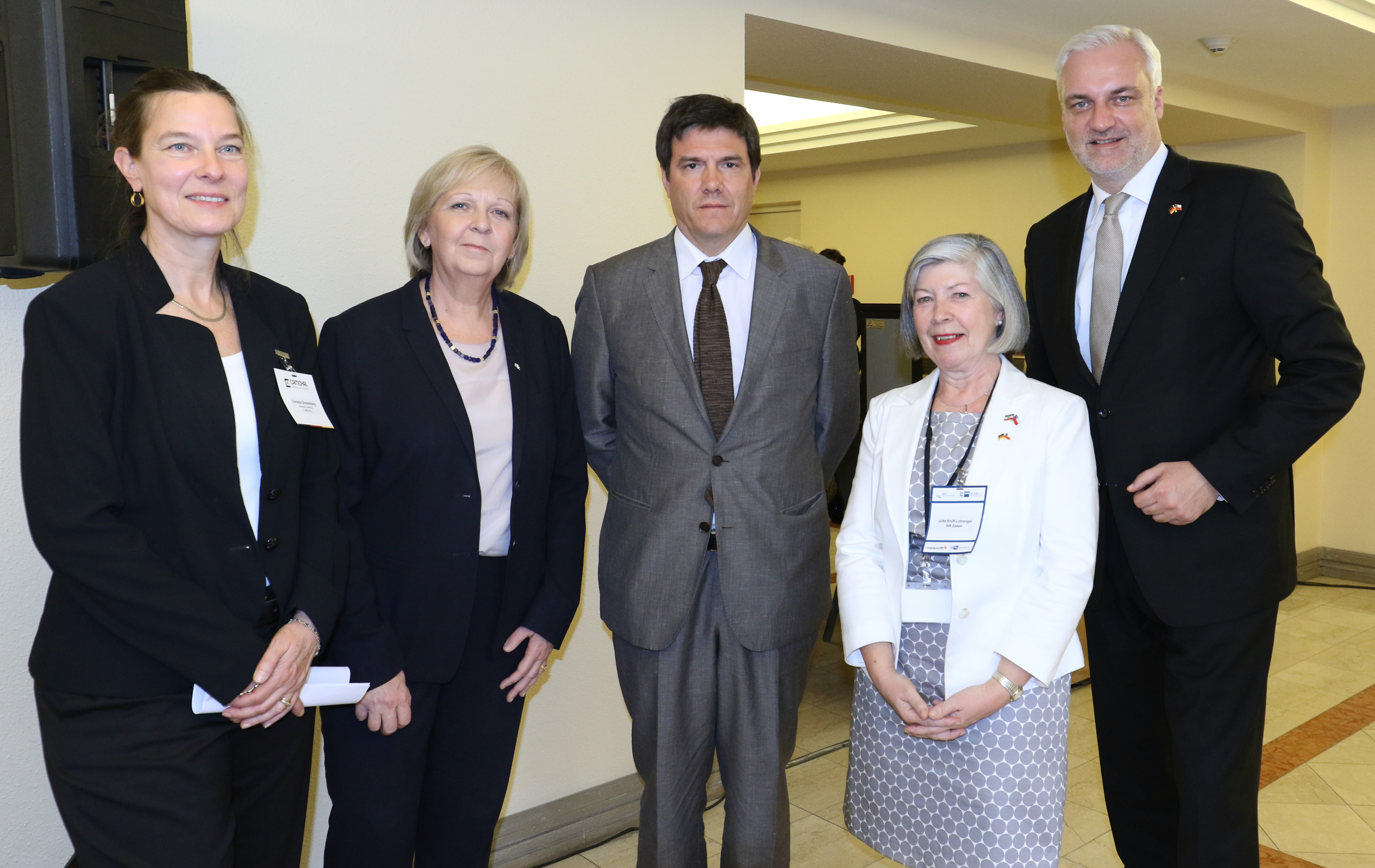 Ministerpräsidentin Hannelore Kraft und NRW-Wirtschaftsminister Garrelt Duin sind am Montag, 23. November 2015, in Santiago de Chile mit dem Minister für Transport und Kommunikation, Andrés Gómez-Lobo, zu einem Gespräch zusammengekommen. Mit dabei war Cornelia Sonnenberg, Hauptgeschäftsführerin er AHK Chile (l.) und Jutta Kruft-Lohrengel, Präsidentin IHK Essen.