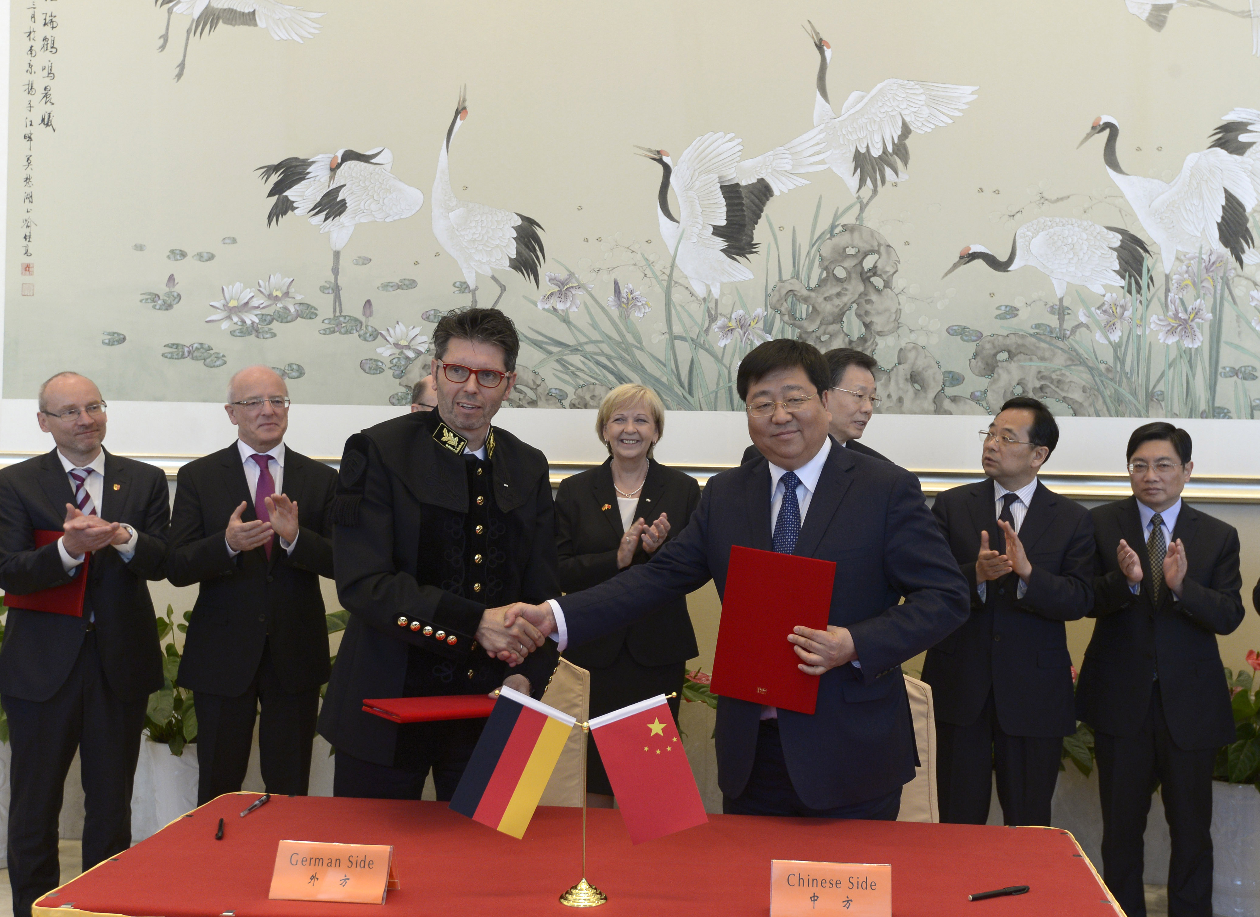 Im Anschluss ein politisches Gespräch von Ministerpräsidentin Hannelore Kraft und LI Xueyong, dem Gouverneur der Provinz Jiangsu, wurden Kooperationsvereinbarungen und Partnerschaften mit den Städten Essen, Herford und Minden unterzeichnet.