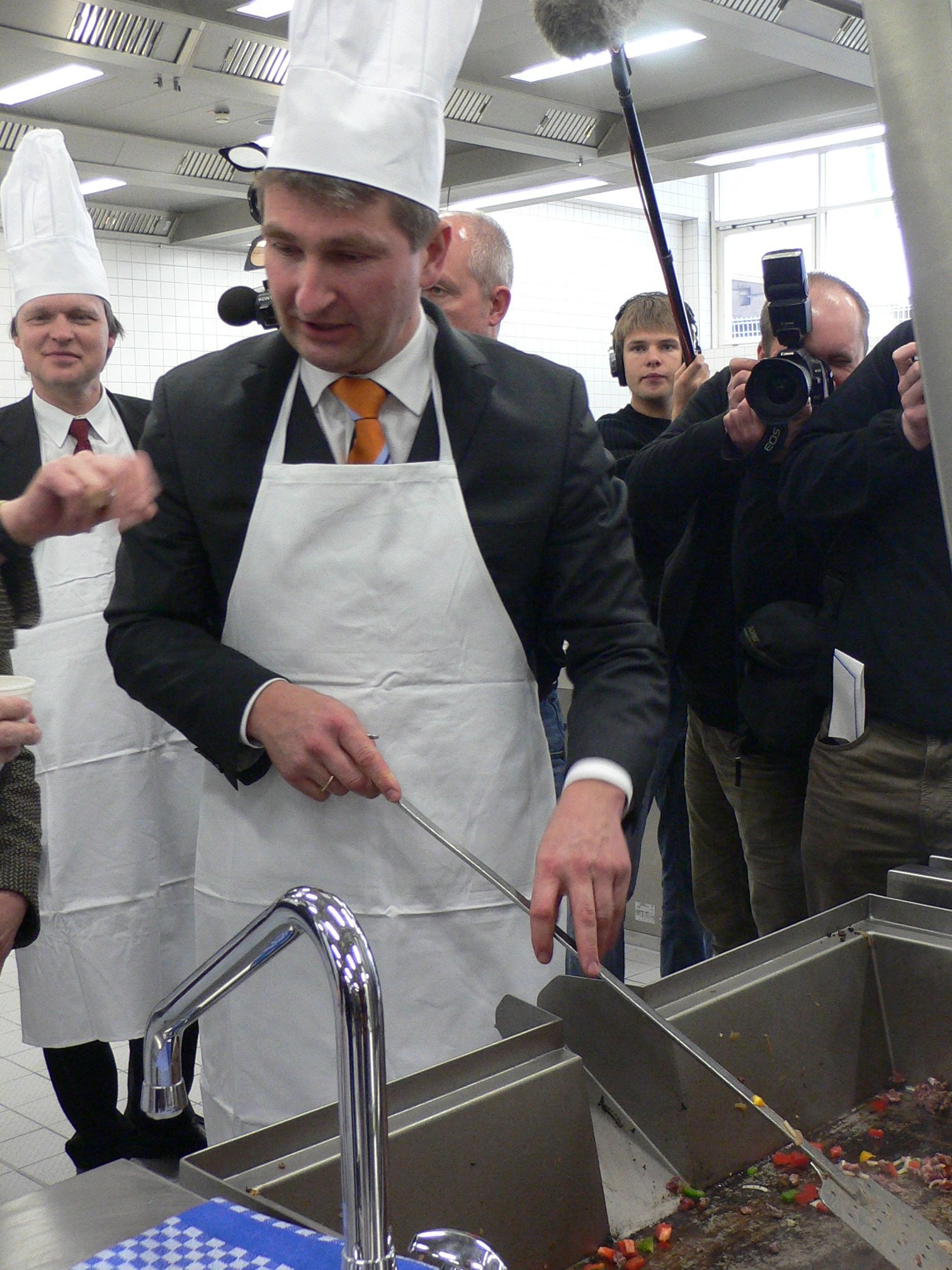 Innovationsminister Professor Andreas Pinkwart hat gestern (29. März) nach zweieinhalbjähriger Bauzeit die kernsanierte Mensa der Ruhr-Universität Bochum eingeweiht. Beim "Ankochen" griff der Minister selbst zum Kochlöffel. "Die Sanierung der Mensa zeigt, dass das Land trotz der außerordentlich schwierigen Haushaltslage investiert - für die Studentenwerke und für die Studierenden", betonte Pinkwart.