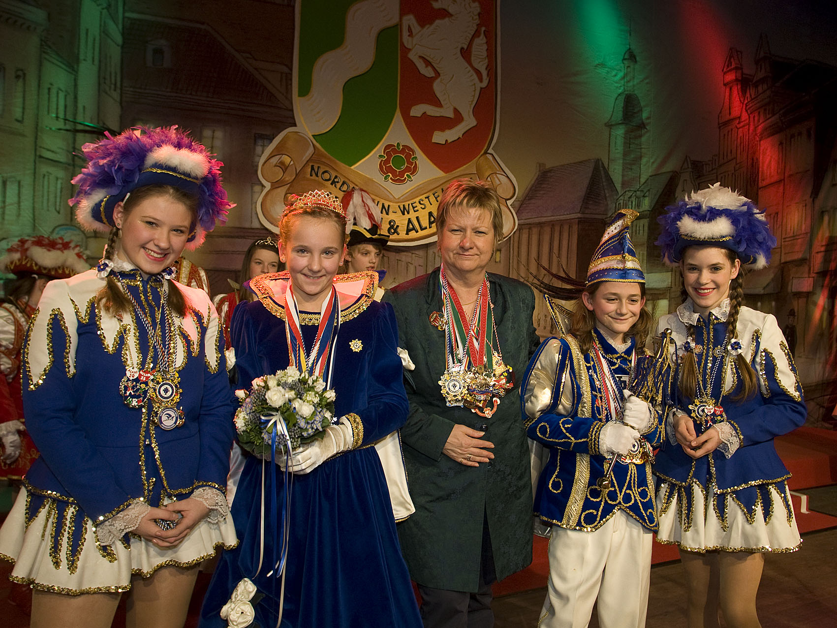 Sylvia Löhrmann mit Prinz Ben I. und Prinzessin Isabella I. von den Kindertollitäten der Stadt Bottrop.