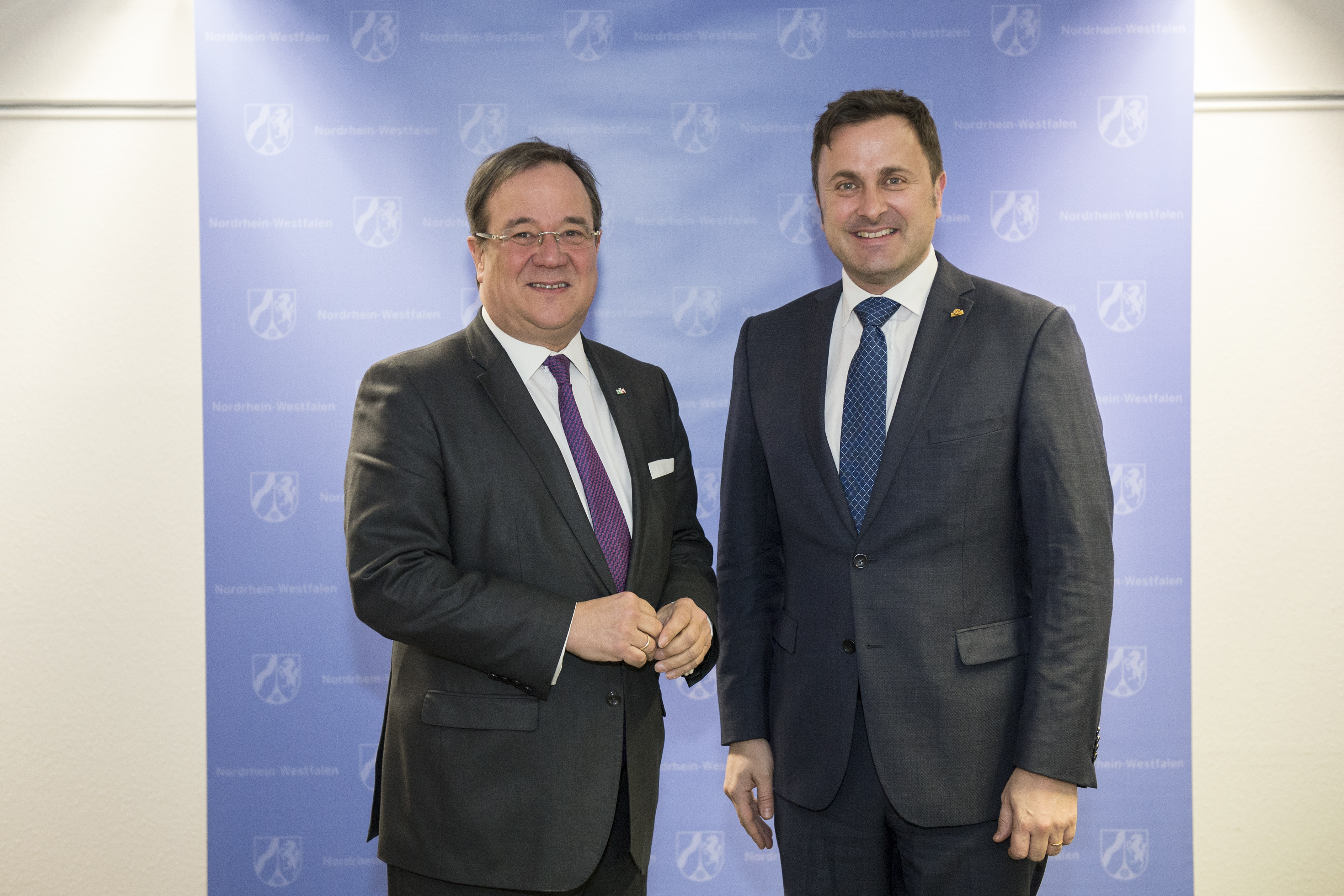 Ministerpräsident Armin Laschet ist am Samstag, 17. März 2018, in Dortmund mit dem Premierminister des Großherzogtums Luxemburg, Herrn Xavier Bettel, zu einem Gespräch zusammegekommen. Im Gespräch haben sich beide Seiten über die Vertiefung der Zusammenarbeit zwischen Nordrhein-Westfalen und Luxemburg und der Kooperation mit der Benelux-Union ausgetauscht. Seit 2008 ist Nordrhein-Westfalen mit der Benelux-Union im Rahmen einer privilegierten Partnerschaft eng verbunden.