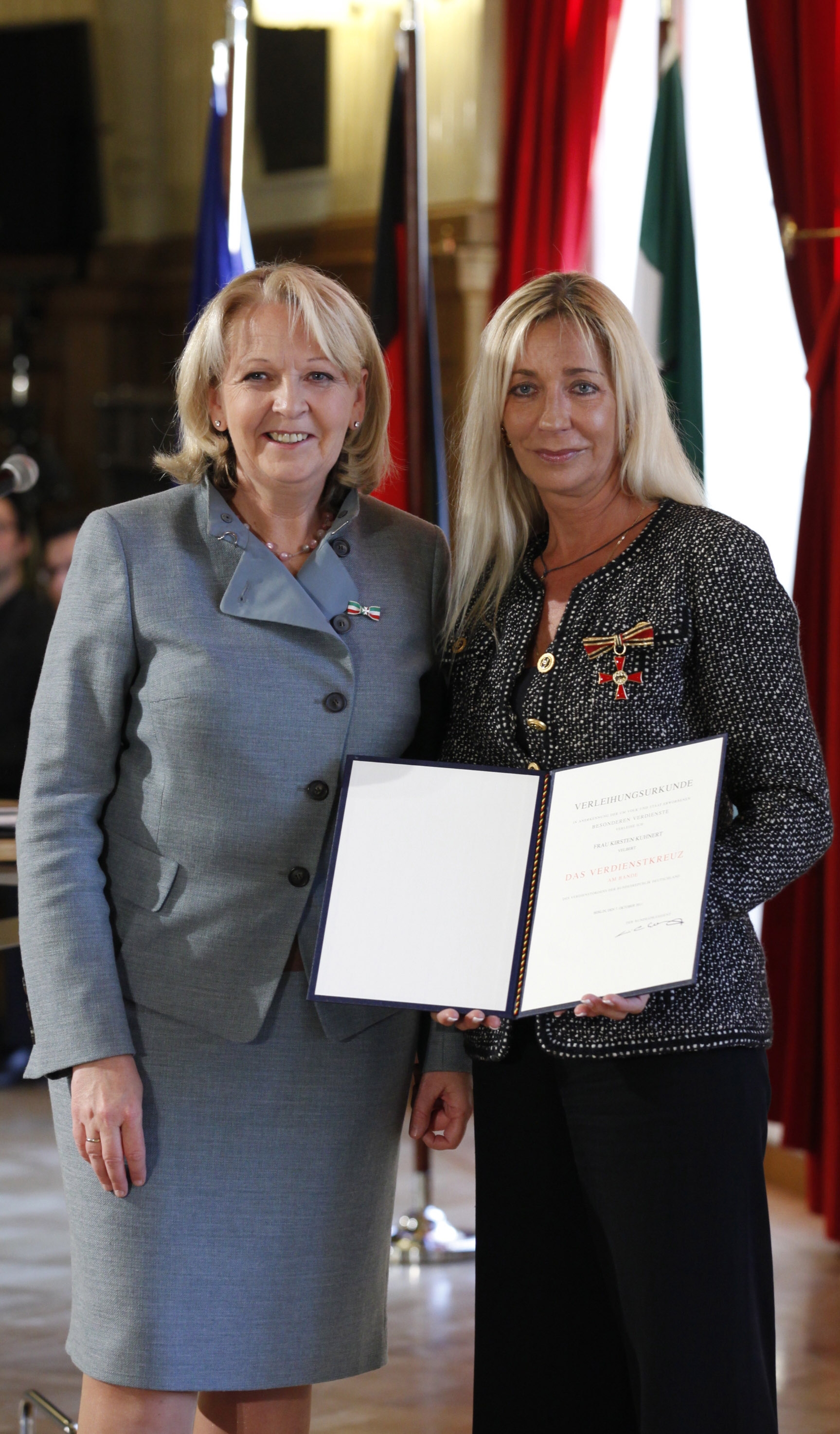Düsseldorf, 01.02.2012: Aushändigung des Bundesverdienstordens durch Ministerpräsidentin Hannelore Kraft an Kirsten Kuhnert.