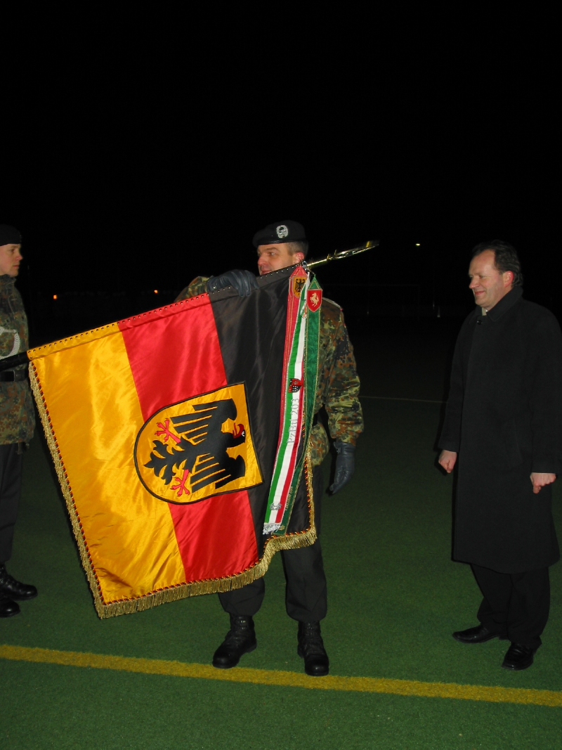 Sie sind hier:StartseiteNRW informierenMediathek NRW-Fahnenband an Panzerbataillon 203 in Hemer verliehen Termin: 23. Januar 2007 Mediendetails Dateityp Bild Auflösung 800 x 1067 px Download (548 KB)