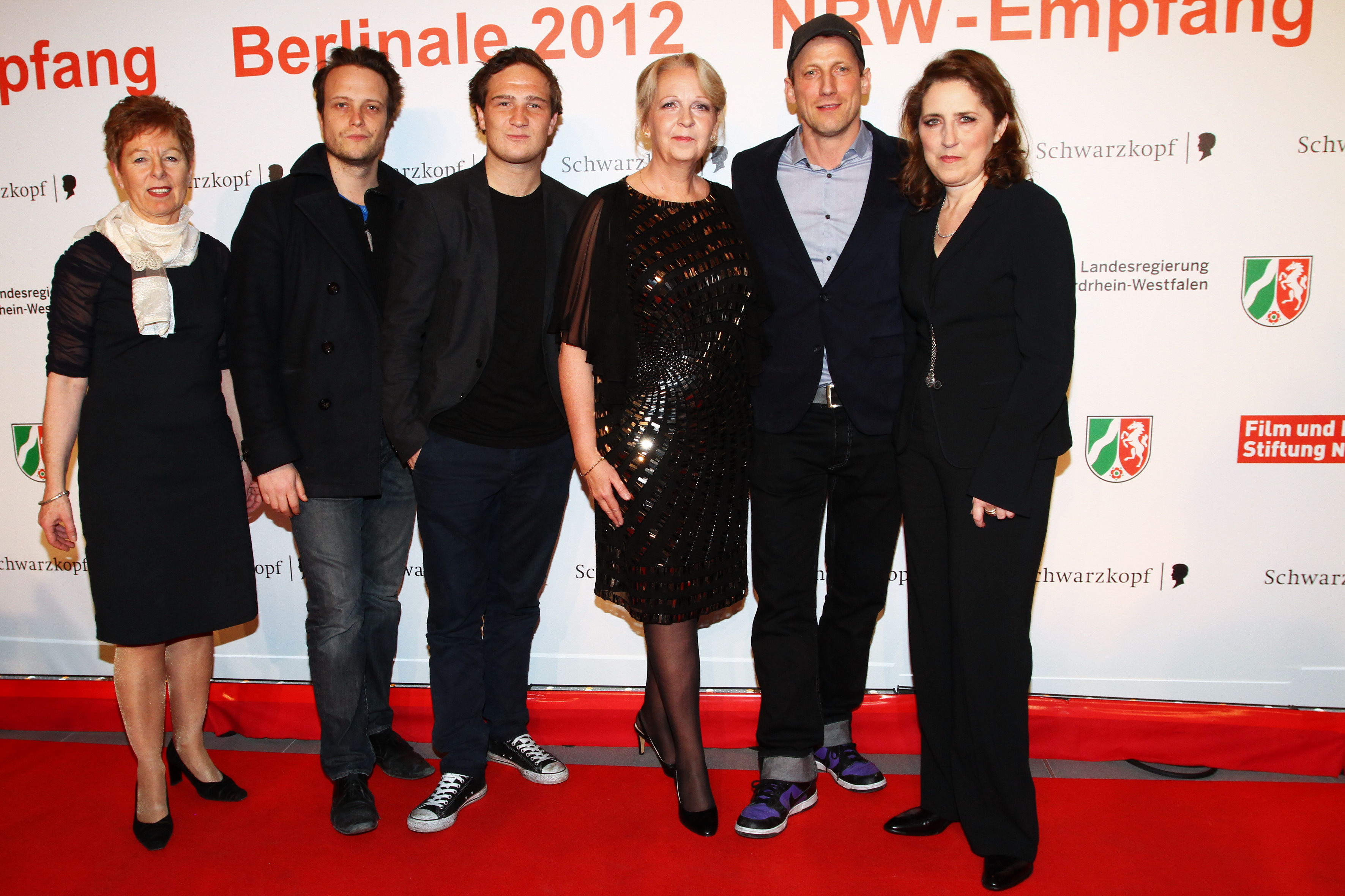 Ministerin Dr. Angelica Schwall-Düren, August Diehl, Frederick Lau, Ministerpräsidentin Hannelore Kraft, Wotan Wilke Möhring und Petra Müller (Film- und Medienstiftung NRW) beim Empfang in der NRW-Landesvertretung.