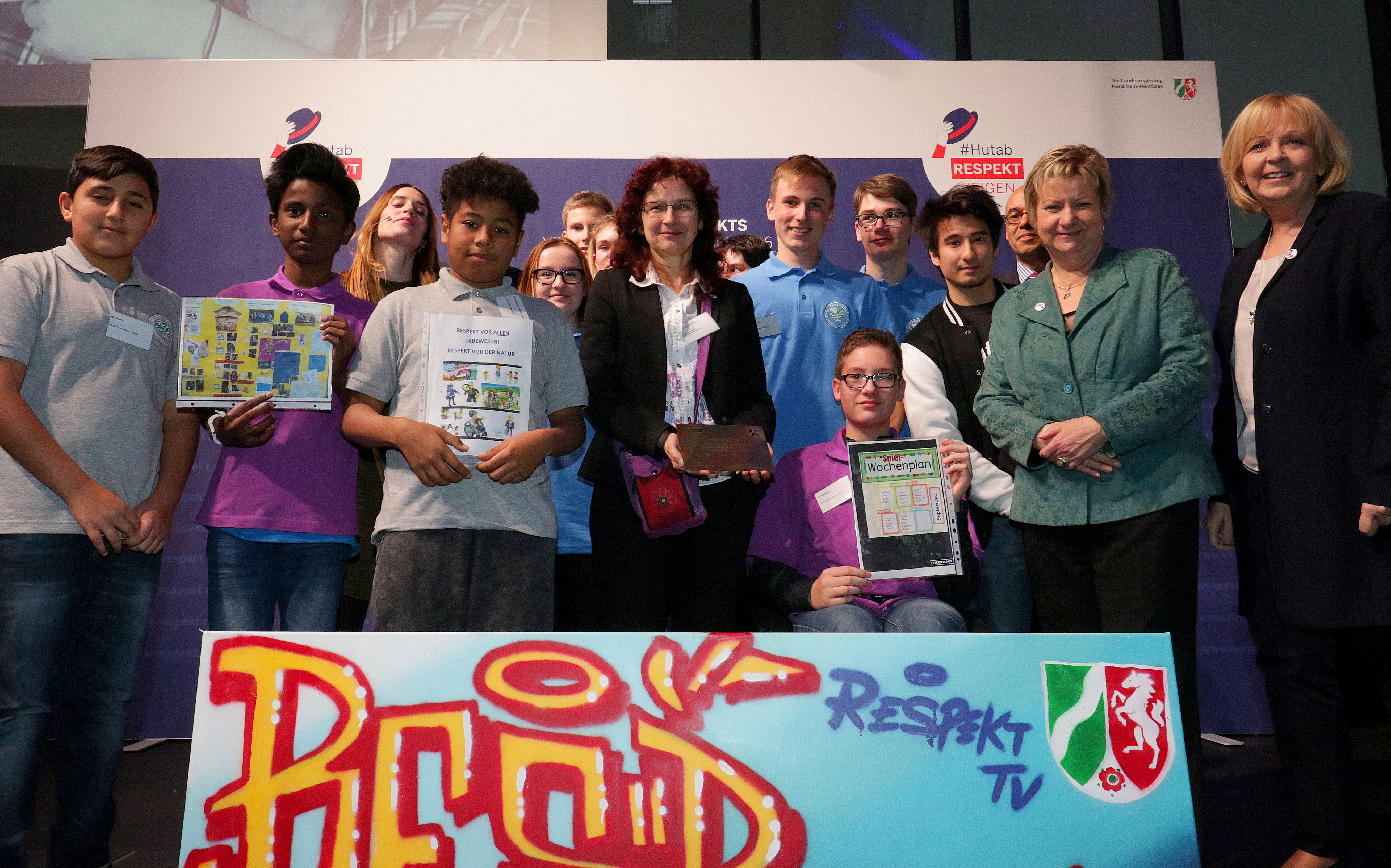 Sie sind hier:StartseiteNRW informierenMediathek Foto: Staatskanzlei NRW / U. Wagner Preisverleihung zum Schulwettbewerb zur Woche des Respekts Die Gesamtschule Friedensschule aus Hamm setzte sich in der Kategorie „Sekundarstufe I“ mit dem Beitrag „Maz ab - Respekt zeigen!“ durch. Mediendetails Datum 14.11.2016 Dateityp Bild Auflösung 5232 x 3264 px Download (3 MB)