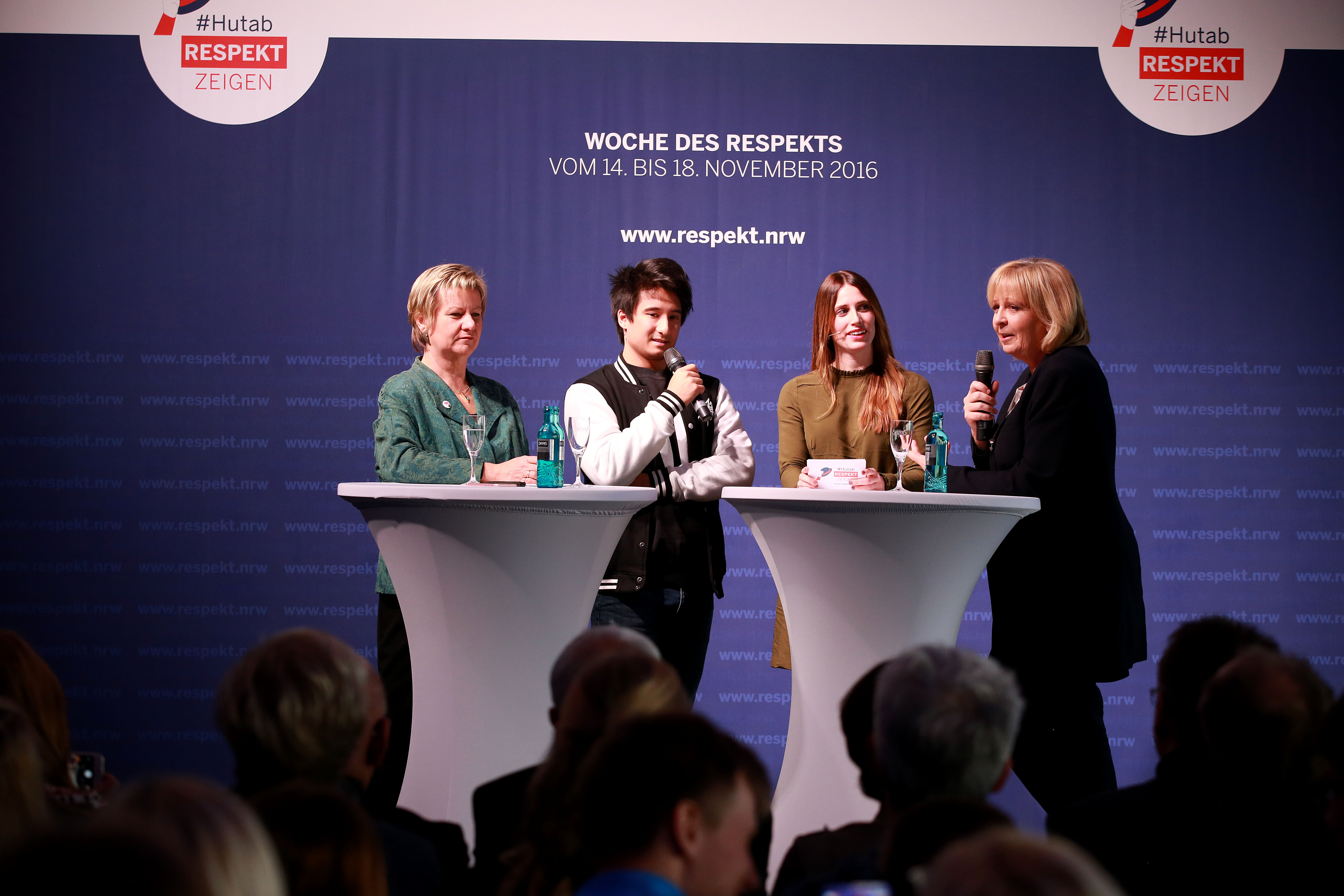 Sie sind hier:StartseiteNRW informierenMediathek Foto: Staatskanzlei NRW / U. Wagner Preisverleihung zum Schulwettbewerb zur Woche des Respekts Ministerpräsidentin Hannelore Kraft und Sylvia Löhrmann verleihen im Rahmen der "Woche des Respekts" die Preise in einem Schulwettbewerb. Mediendetails Datum 14.11.2016 Dateityp Bild Auflösung 5472 x 3648 px Download (1 MB)