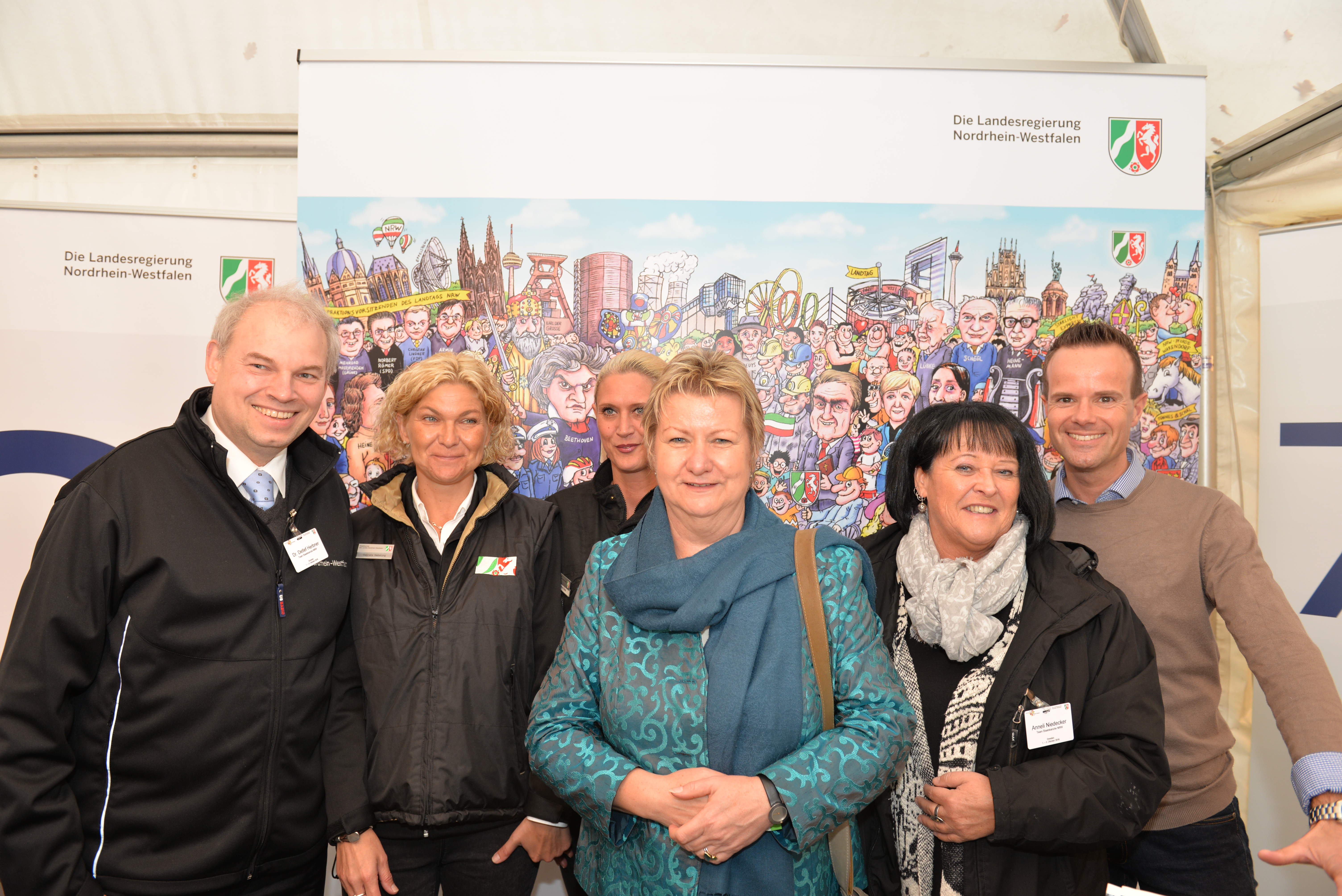 Sylvia Löhrmann, stellvertretende Ministerpräsidentin des Landes NRW, mit dem Team des Standes der Staatskanzlei NRW
