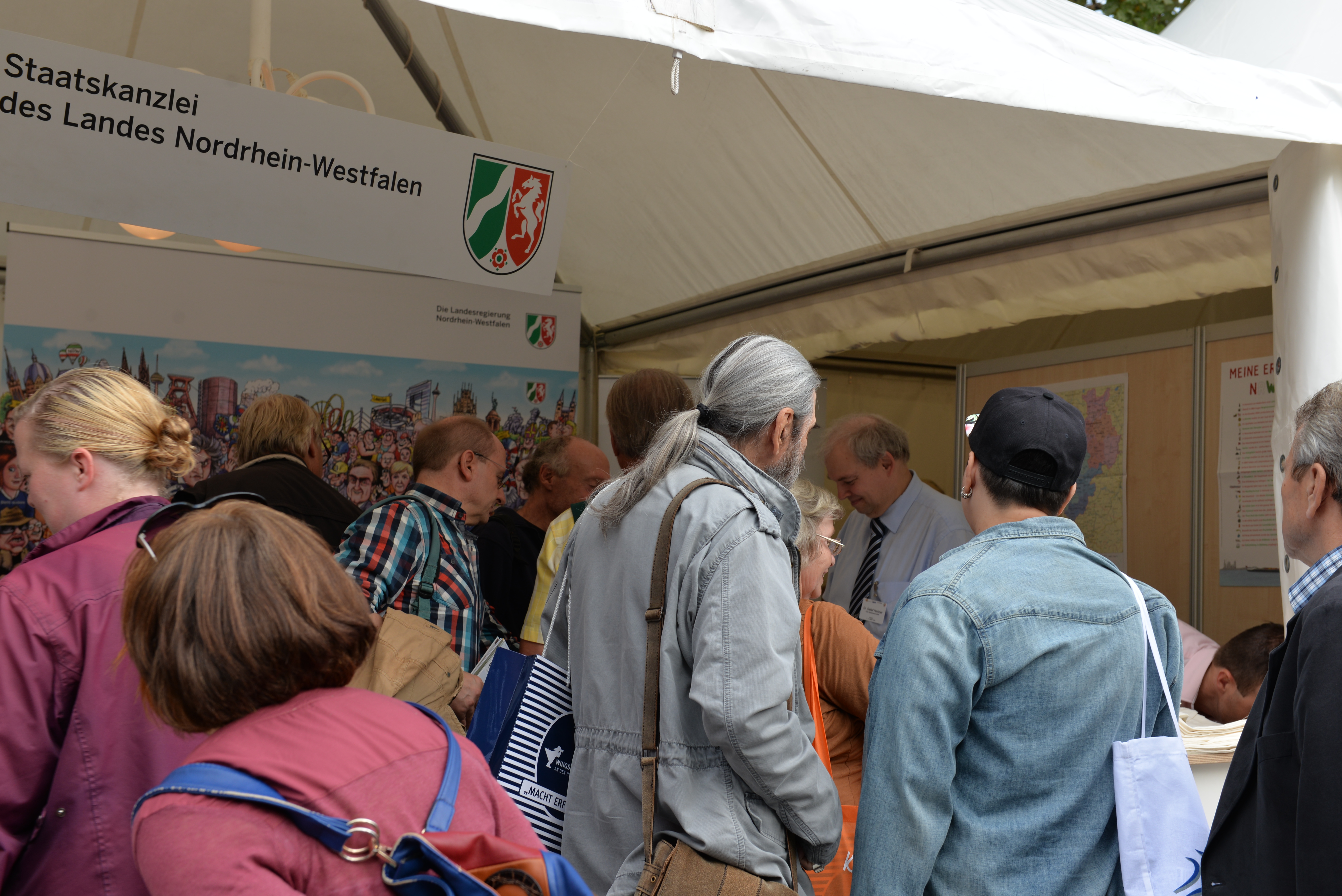 Besucher am Stand der Staatskanzlei NRW beim Tag der Deutschen Einheit 2016.