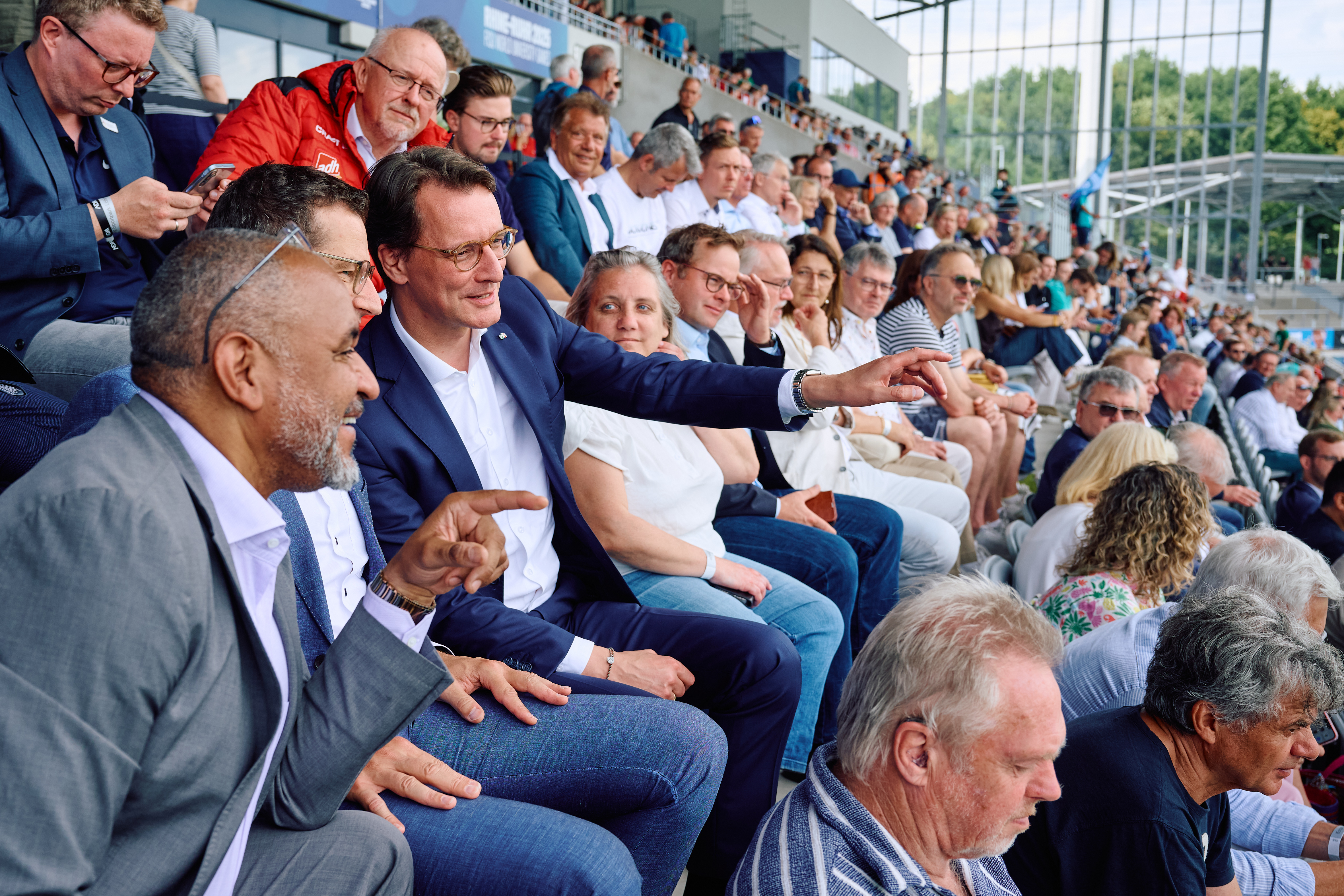 Rund 500.000 Menschen engagieren sind in Nordrhein-Westfalen ehrenamtlich in Sportvereinen. Um dieses Engagement zu würdigen, hat Ministerpräsident Hendrik Wüst am Montag, 21. Juli, junge Ehrenamtlerinnen und Ehrenamtler aus den Host-Cities der FISU World University Games 2025 Bochum, Duisburg, Essen, Hagen und Mülheim an der Ruhr zu einem Empfang in das Lohrheidestadion eingeladen. Staatssekretärin für Sport und Ehrenamt Andrea Milz hat ebenfalls am Empfang teilgenommen.