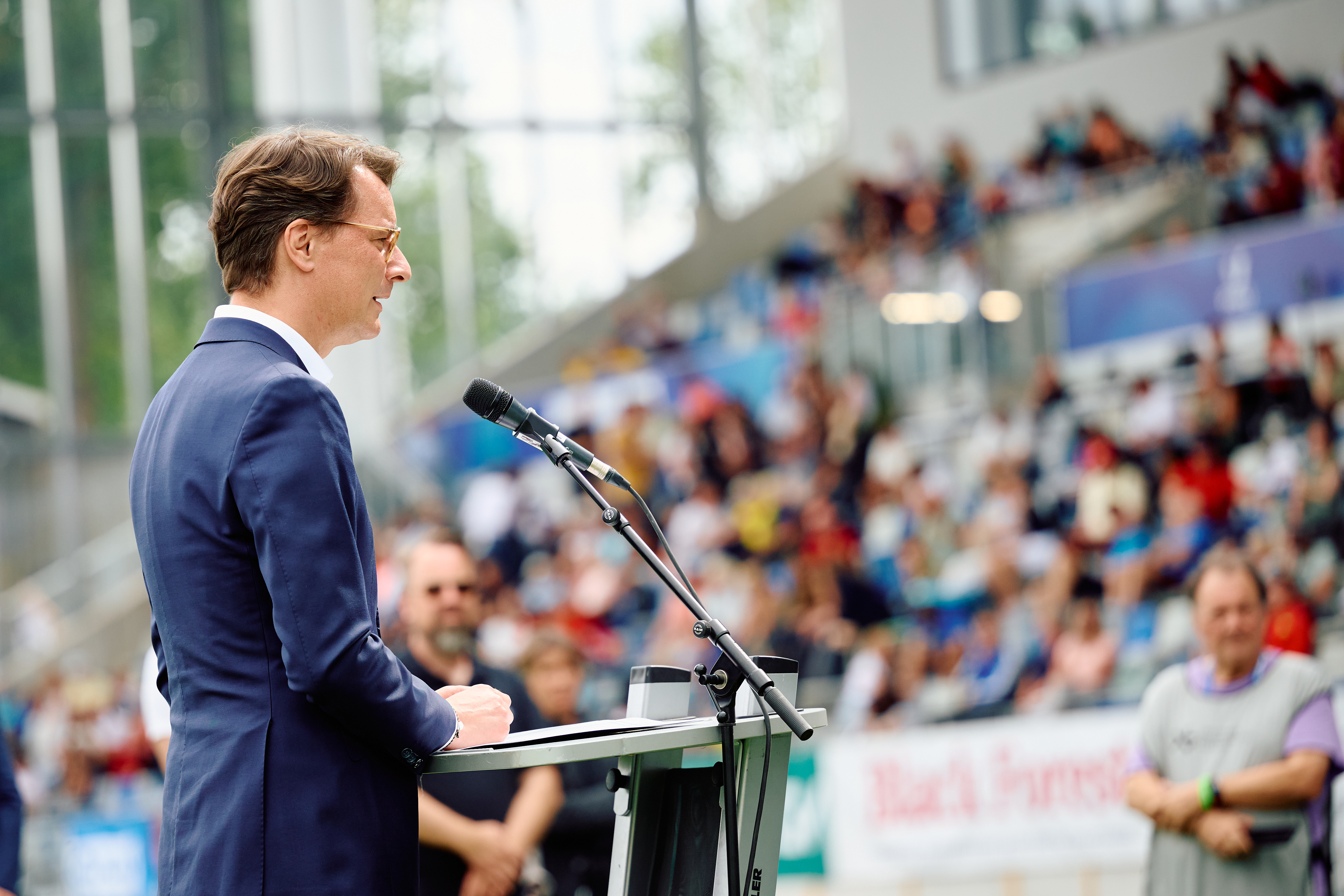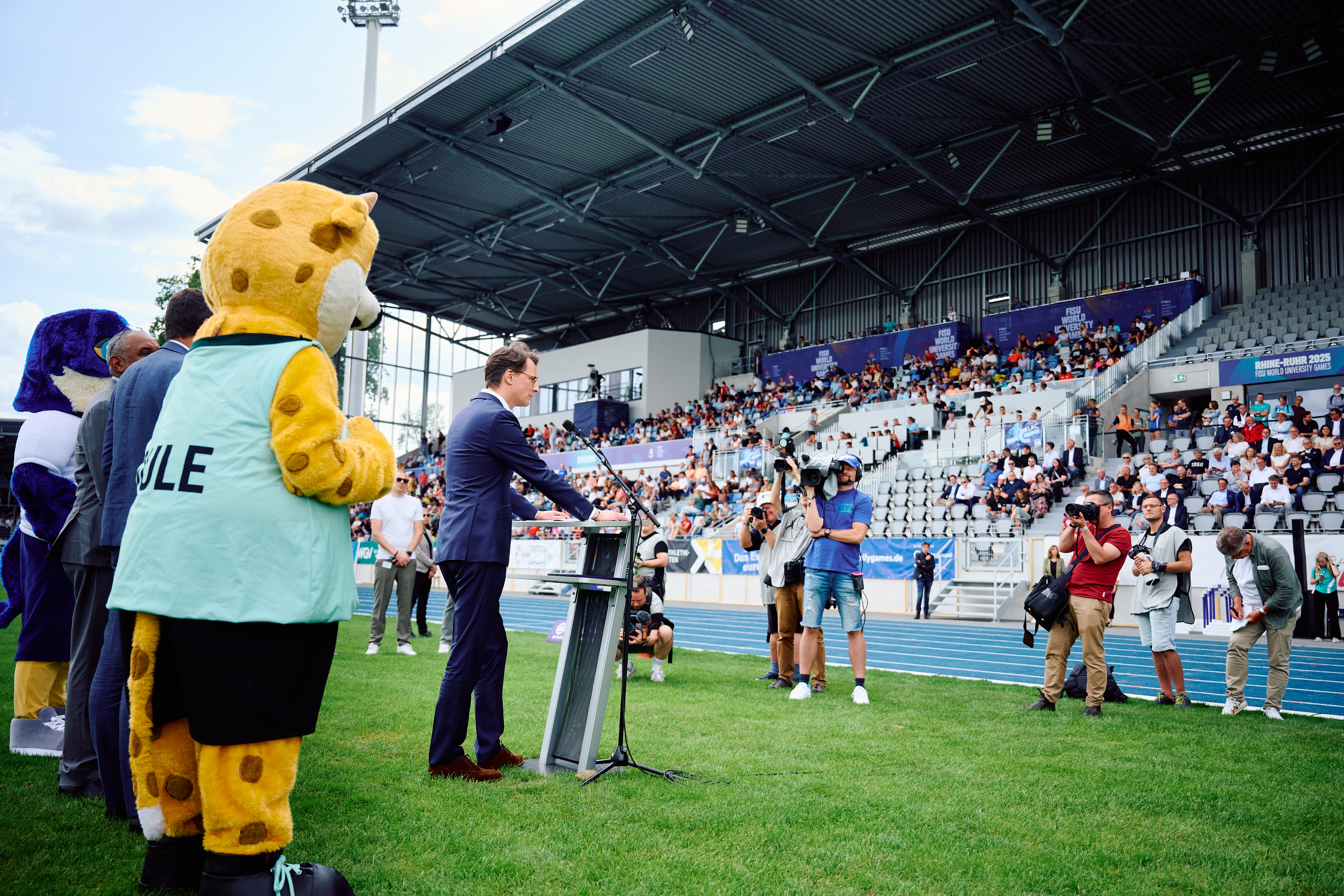 Ministerpräsident Hendrik Wüst nahm an der Eröffnungsfeier am Mittwoch, 16. Juli, in Duisburg teil und hielt eine Rede. Sie haben die Eröffnungsfeier und die Rede des Ministerpräsidenten verpasst? Hier können Sie die gesamte Zeremonie im Re-Live erneut anschauen.