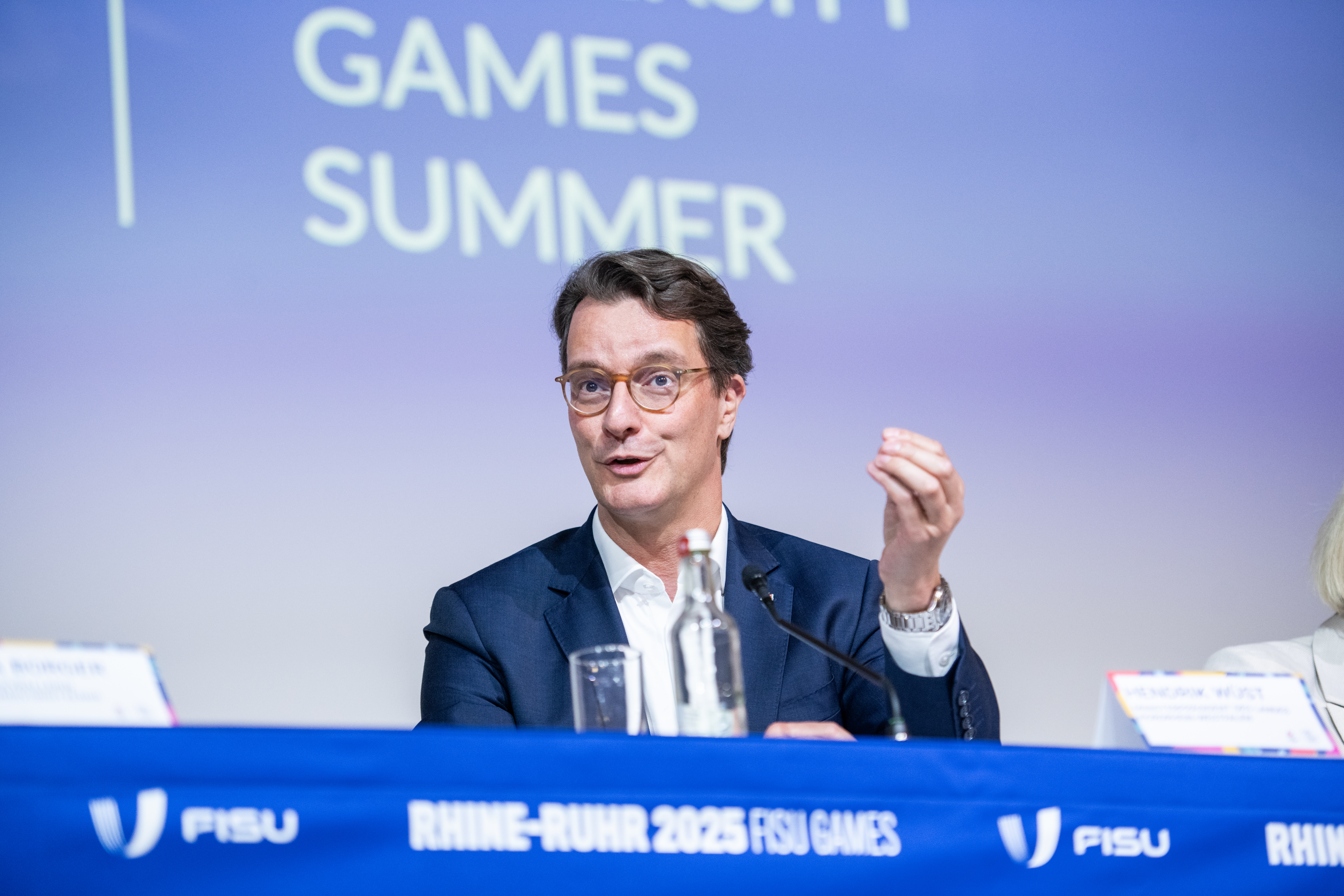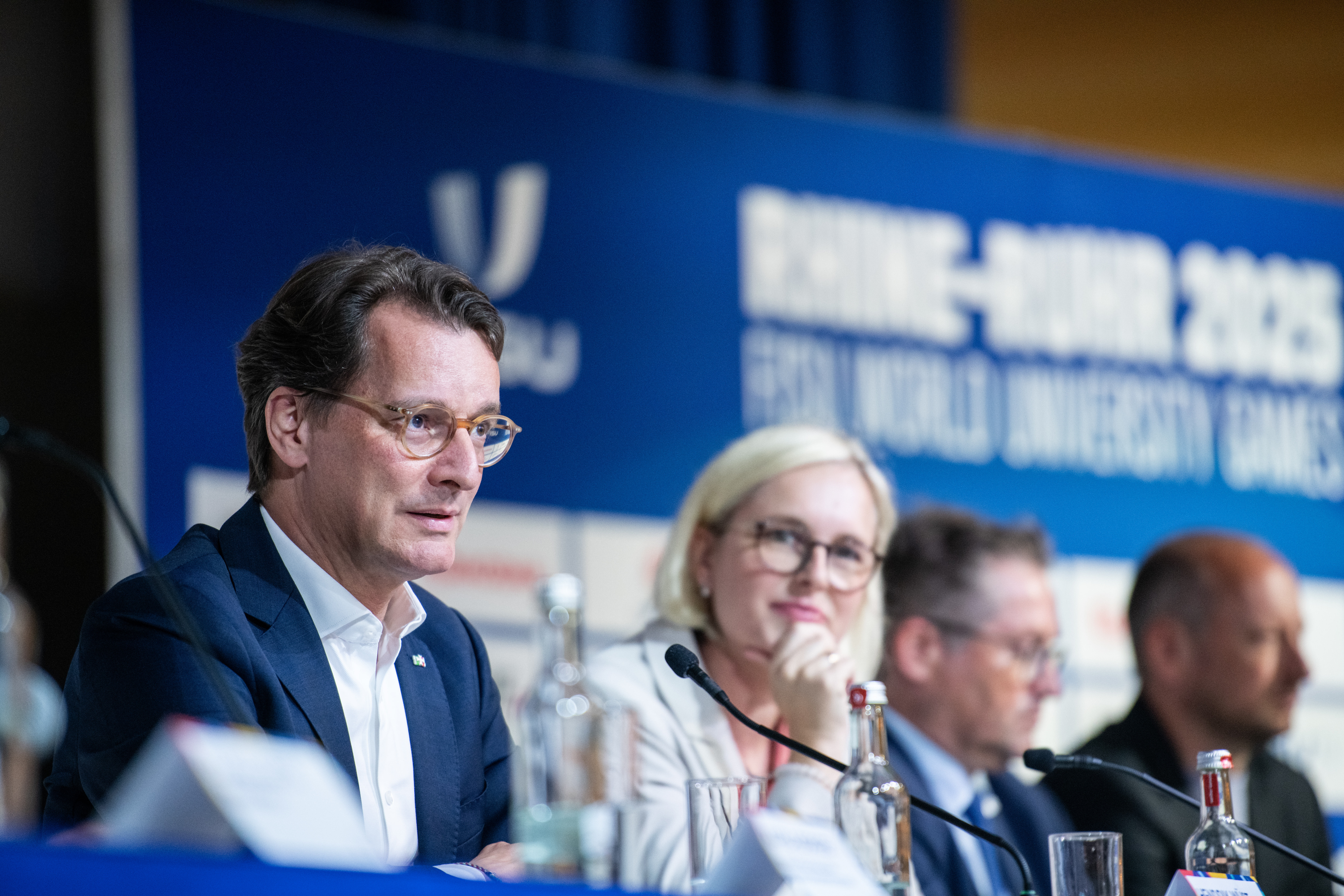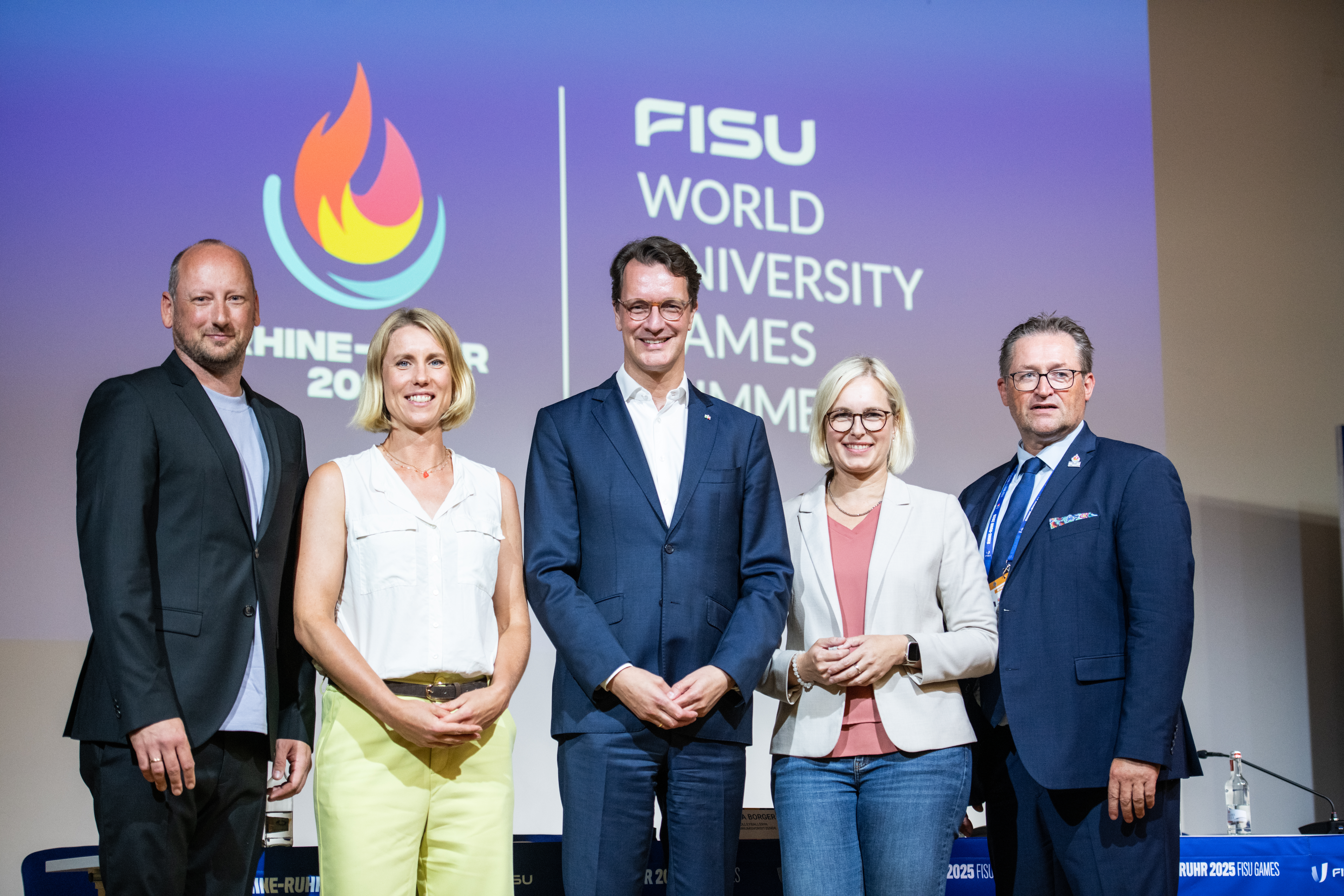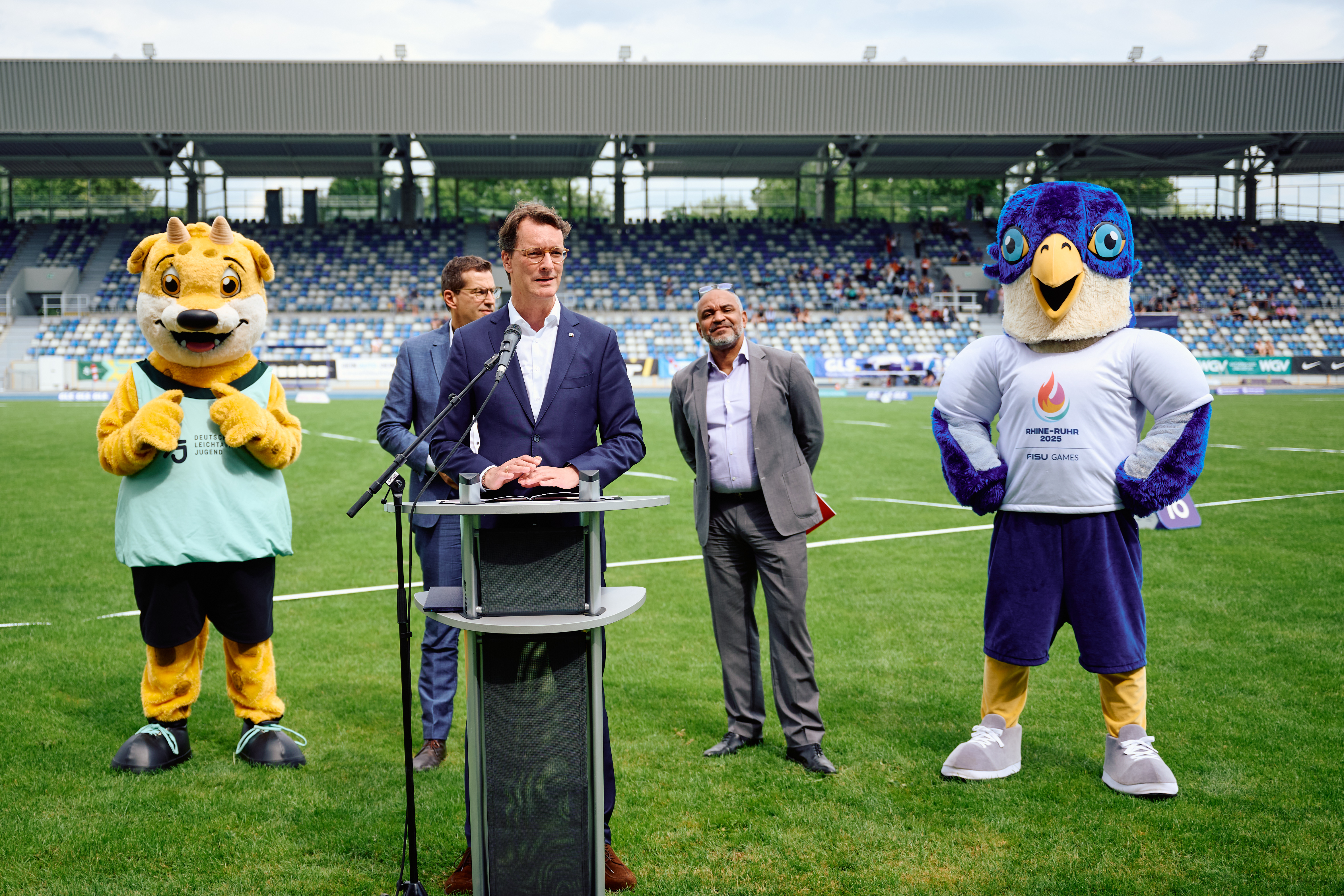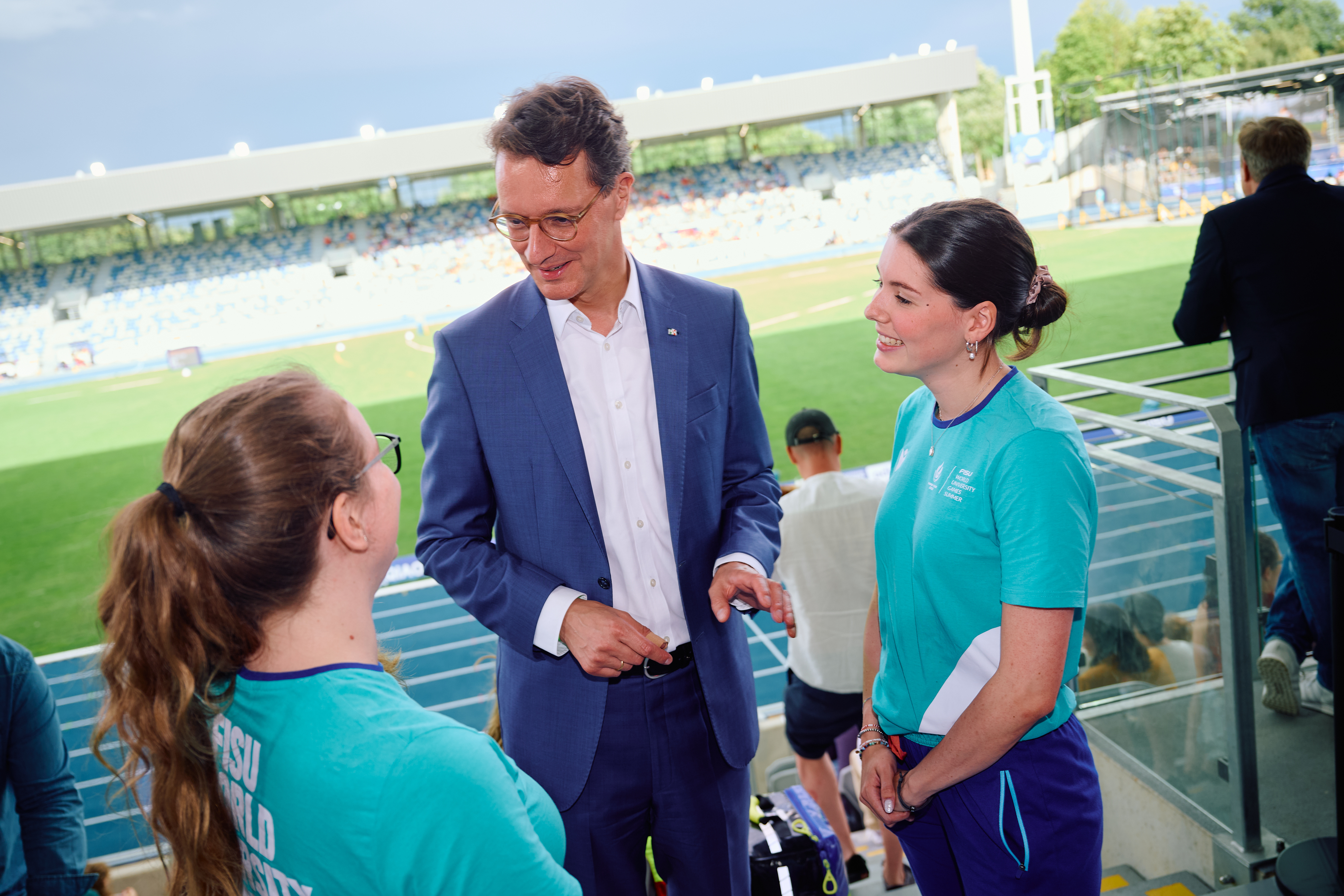 Am Mittwoch, 23. Juli 2025, besuchte Ministerpräsident Hendrik Wüst die FISU World University Games in der Host-City Essen. Dabei gab es einen Rundgang über die laufenden Sportwettbewerbe in der Messe Essen sowie ein Besuch des Rahmenprogrammes im Gruga Park. Im Anschluss begrüßte Ministerpräsident Wüst zum Sportland.NRW Empfang im Champions-Park (Musikpavillon) im Gruga Park.