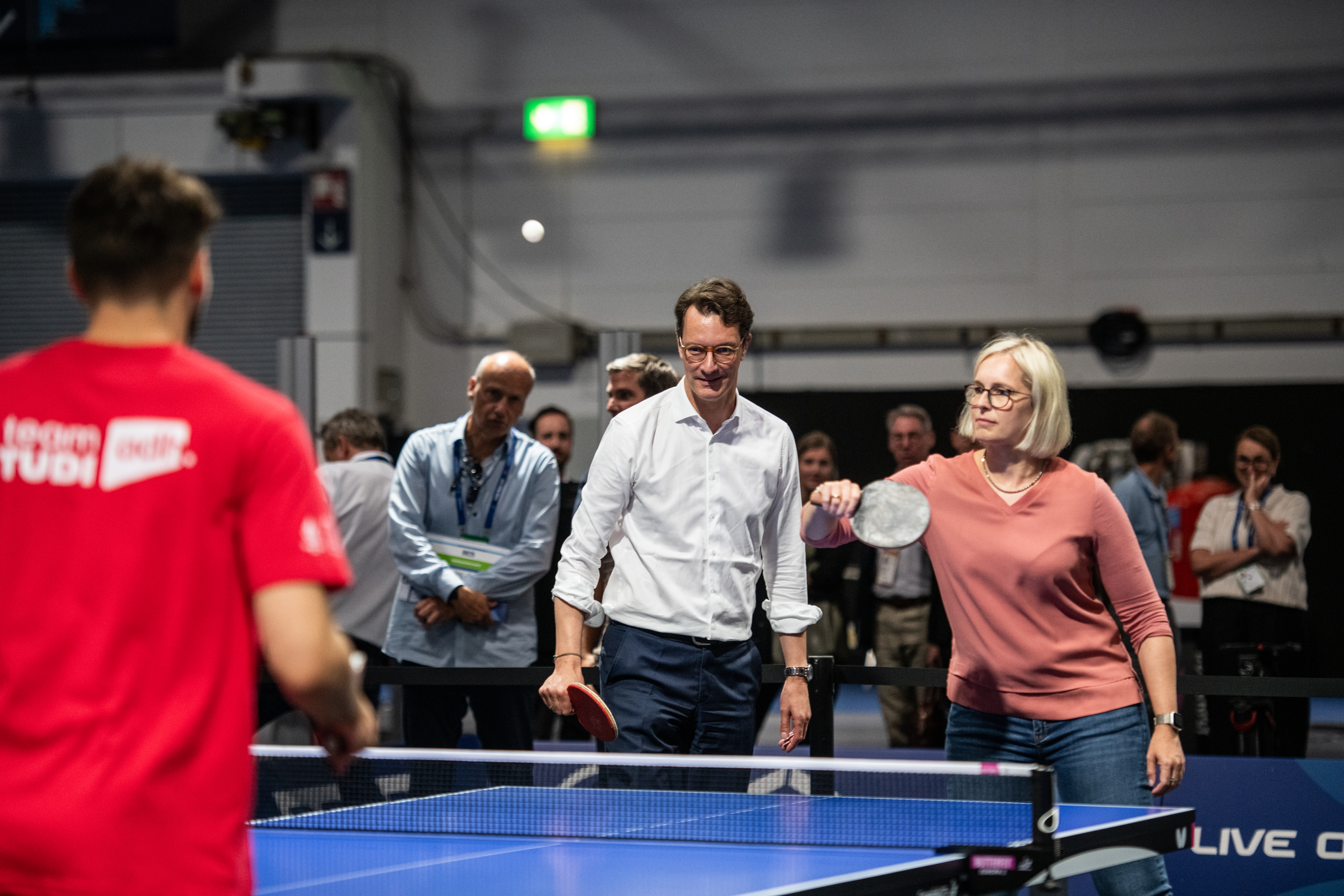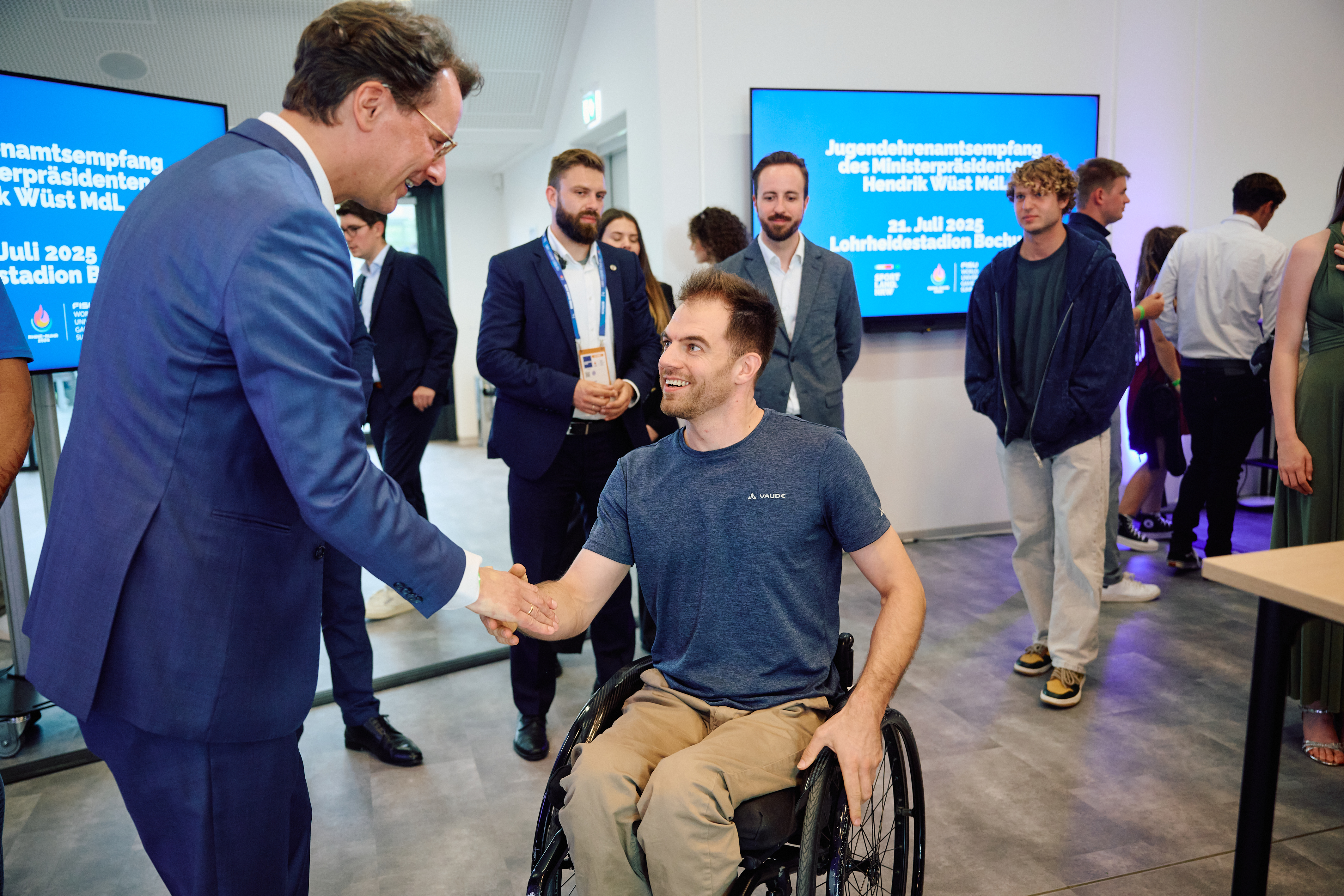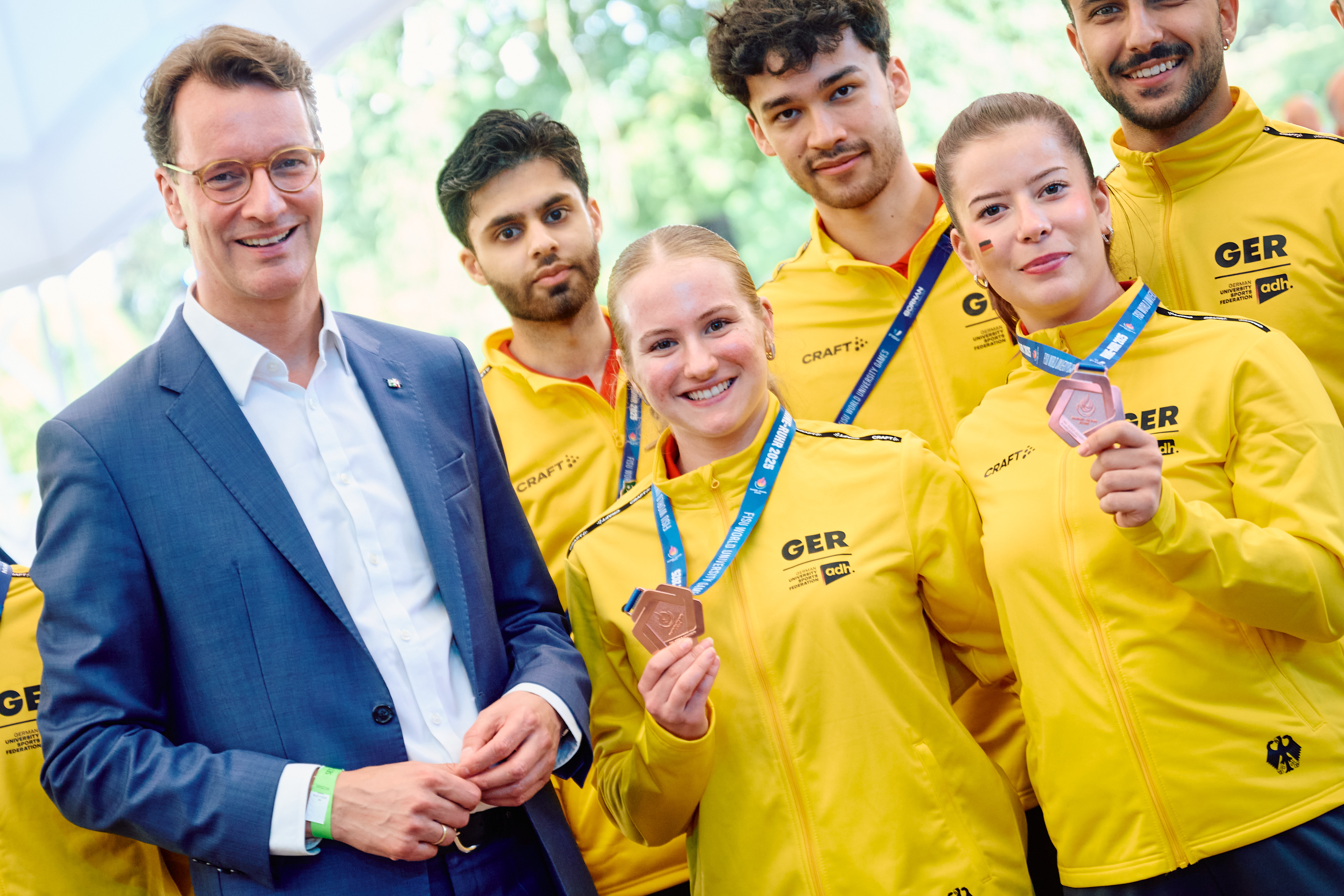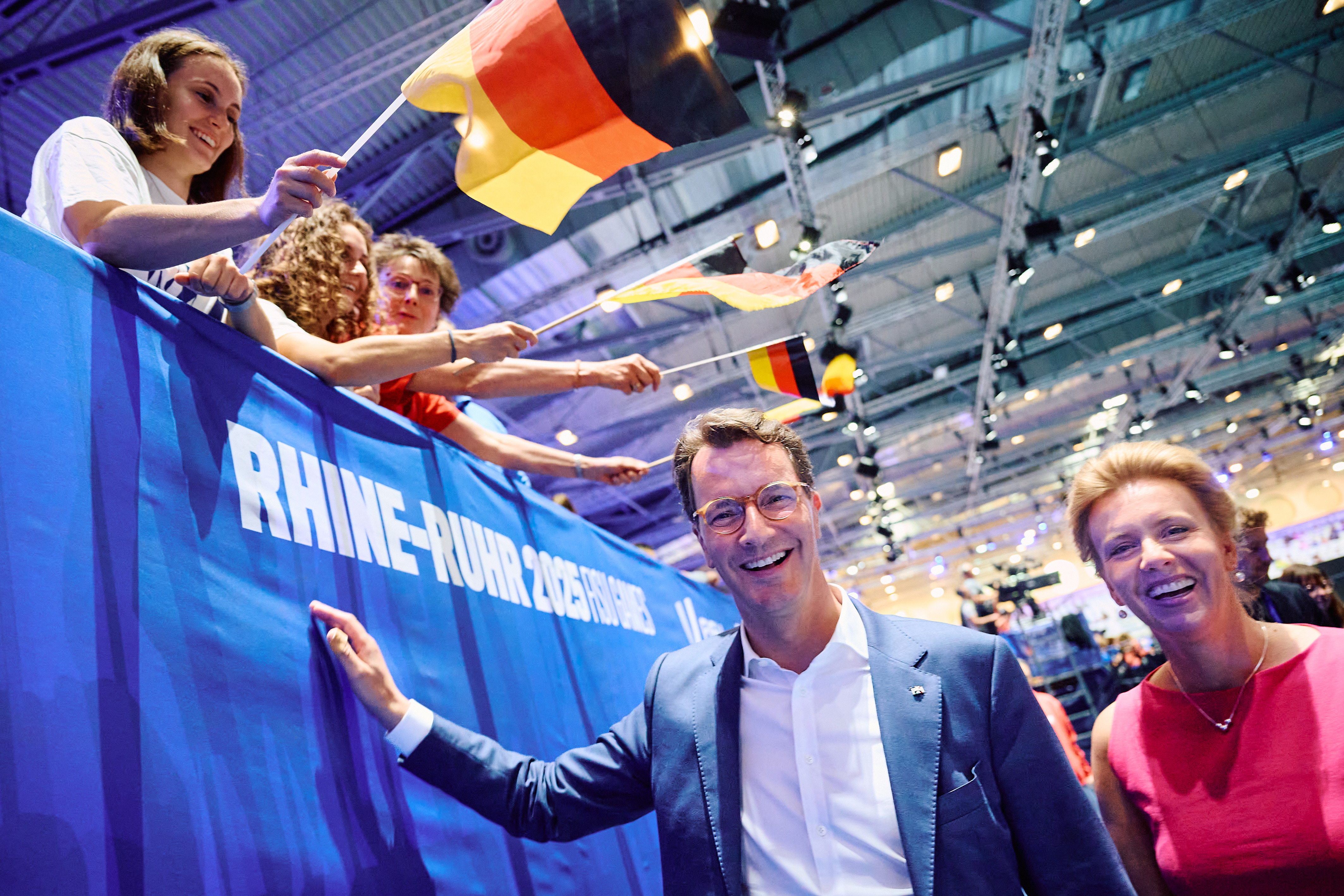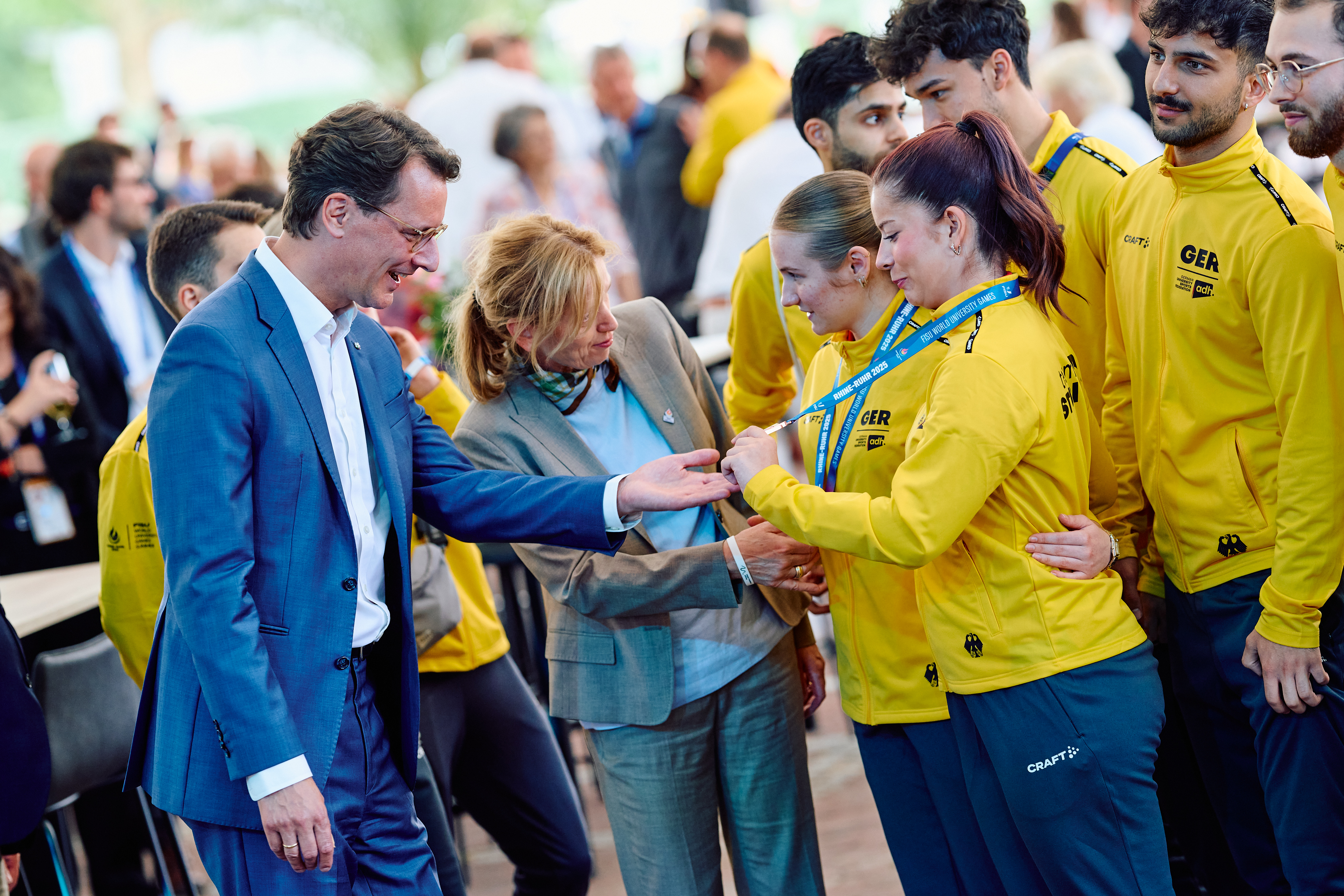Im Rahmen der FISU World University Games hat Ministerpräsident Hendrik Wüst am Montag, 21. Juli, am Deutschen Empfang in Essen teilgenommen. Gemeinsam mit dem Bundesministerium des Innern wurden die teilnehmenden Athletinnen und Athleten aus Deutschland gewürdigt. Die studentischen Sportlerinnen und Sportler vertreten Deutschland in zahlreichen Disziplinen – von der Leichtathletik über das Fechten bis zum Schwimmen. Neben sportlichen Leistungen stehen sie für Fairness, Vielfalt und internationalen Austausch. Nordrhein-Westfalen dankt den Sportlerinnen und Sportlern für ihren Einsatz und ihr Engagement und freut sich, Gastgeber der FISU World University Games zu sein.