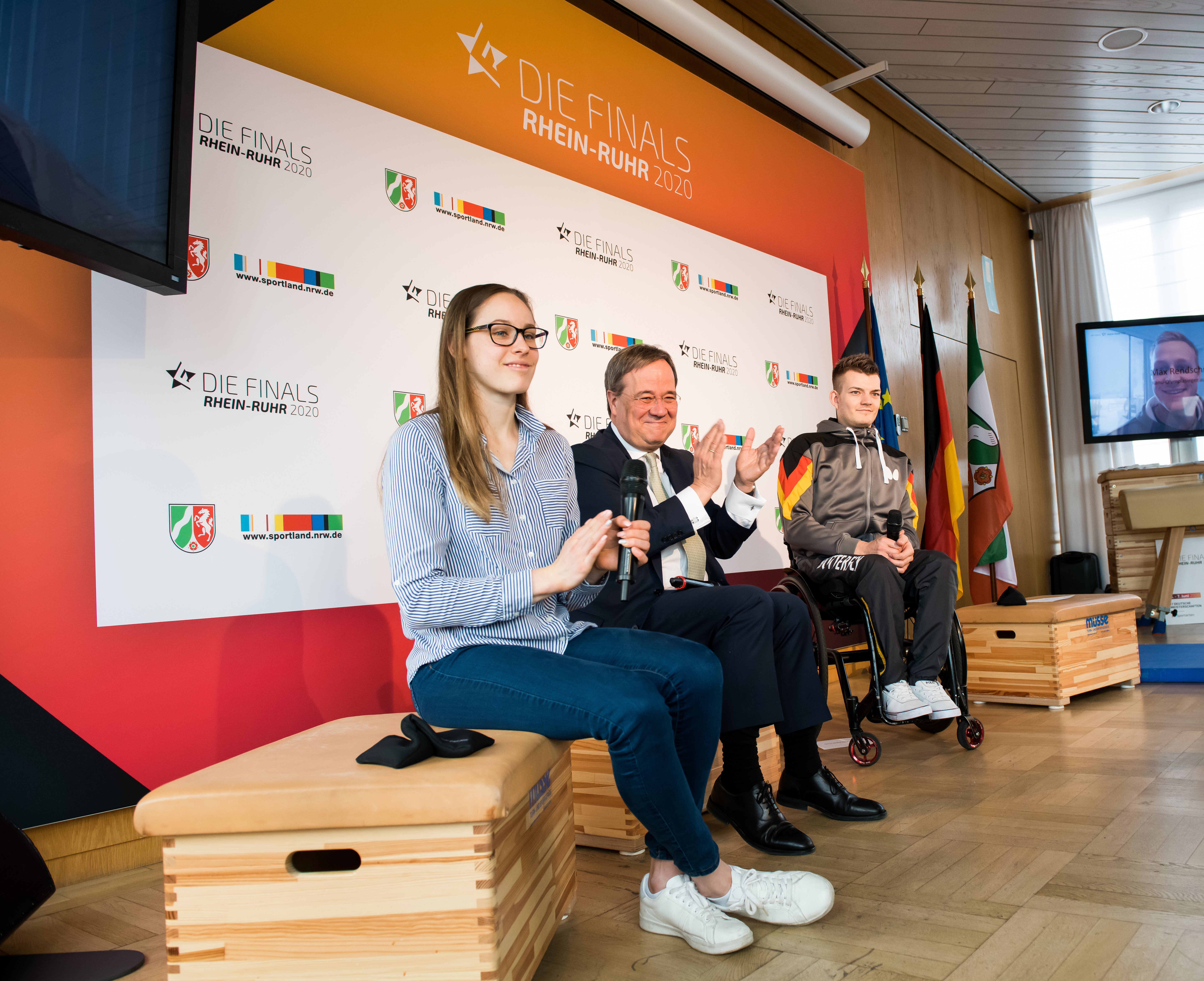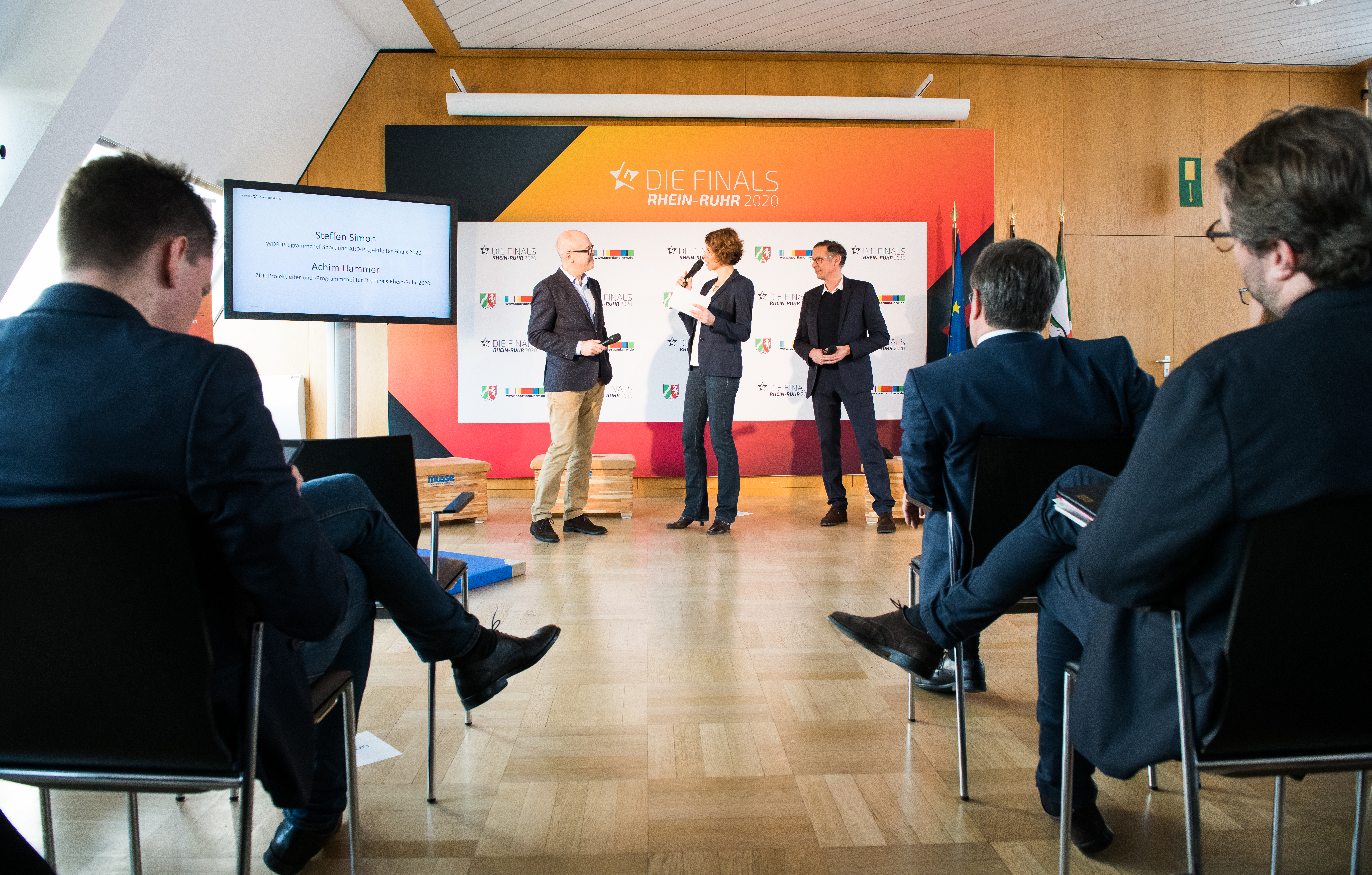 Am Dienstag (28. Januar 2020) stellten Ministerpräsident Armin Laschet, Steffen Simon, WDR-Programmchef Sport und ARD-Projektleiter „Finals Rhein-Ruhr 2020“, Achim Hammer, ZDF-Projektleiter und -Programmchef „Finals Rhein-Ruhr 2020“, sowie Athletinnen und Athleten das Programm der Sportveranstaltung in der Staatskanzlei des Landes Nordrhein-Westfalen in Düsseldorf vor.