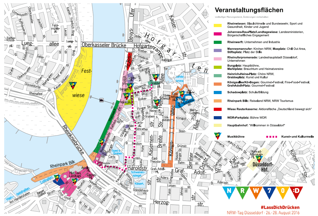 Hier finden Sie Informationen dazu, welche Aktionsflächen es beim NRW-Tag 2016 geben wird und wo diese zu finden sein werden.