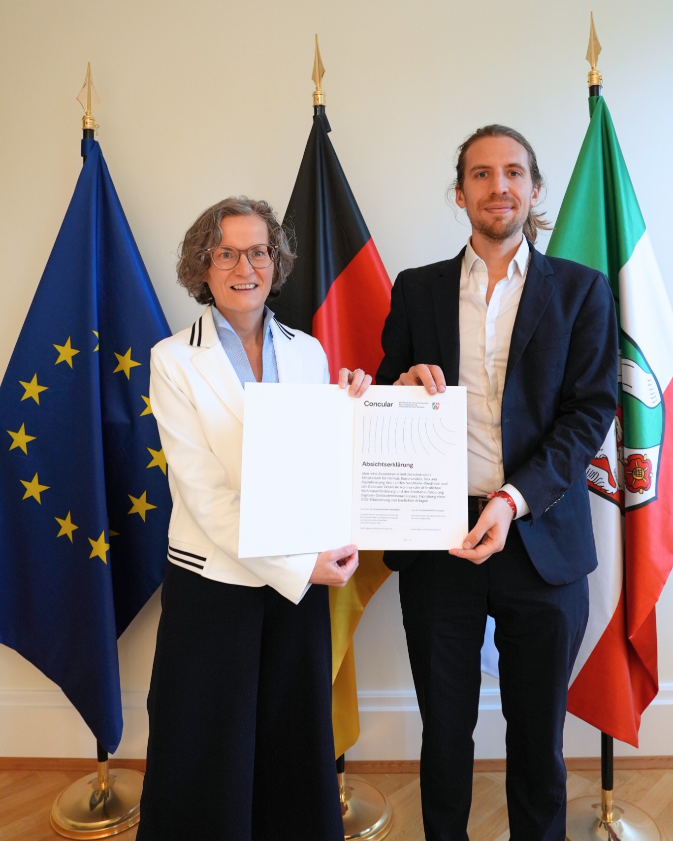 Das Ministerium für Heimat, Kommunales, Bau und Digitalisierung hat mit der Concular GmbH mit Sitz in Berlin eine weitere Kooperationsvereinbarung unterzeichnet, um die praktikable Erstellung von digitalen Gebäuderessourcenpässen und damit das Verständnis für das zirkuläre Bauen voranzutreiben.