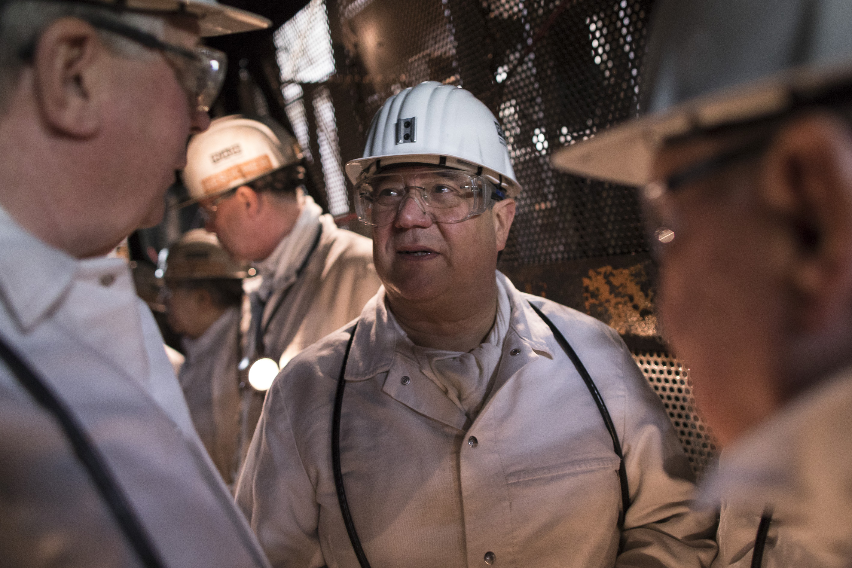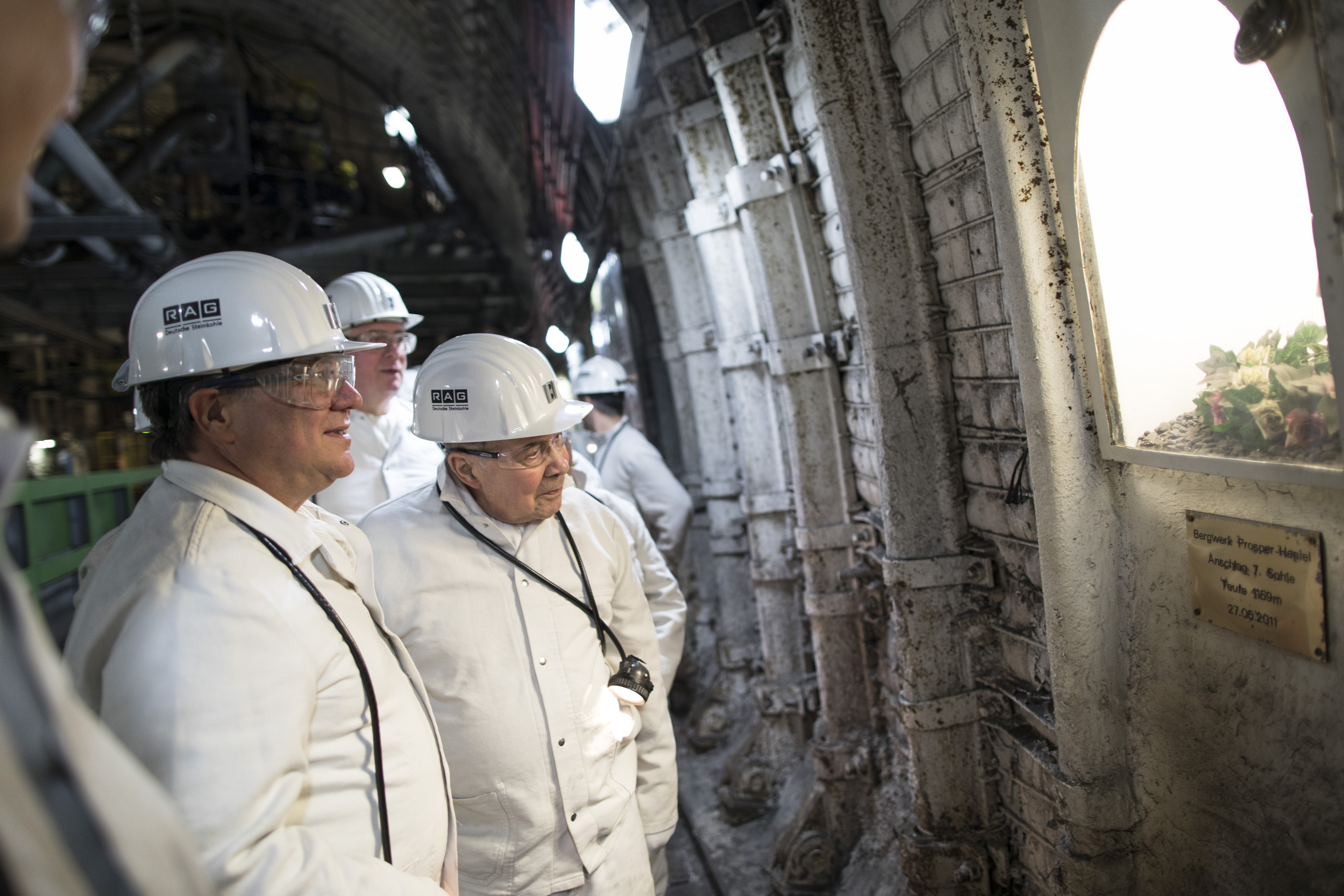 Mit dem Abschied von der Steinkohle geht in diesem Jahr eine industrielle Ära zu Ende, die Nordrhein-Westfalen tief geprägt hat. Um den Einsatz der vielen hunderttausend Bergleute und ihren Beitrag zum Wohlstand und Fortschritt Nordrhein-Westfalens zu würdigen, hat Ministerpräsident Armin Laschet am Montag, 17. September 2018, eine Grubenfahrt im Bergwerk Prosper-Haniel in Bottrop unternommen. Dabei wurde der Ministerpräsident unter anderem von mehreren nordrhein-westfälischen Bergleuten mit Zuwanderungsgeschichte begleitet. An der Grubenfahrt nahmen ebenfalls Bernd Tönjes, Vorsitzender des Vorstandes der RAG-Stiftung, und Werksleiter Jürgen Kroker teil. Auch der Vater von Ministerpräsident Armin Laschet, Heinz Laschet, der selbst Steiger in einem Alsdorfer Bergwerk war, gehörte zu den Ehrengästen, die einen Abbaubetrieb im Flöz Zollverein von Prosper-Haniel besuchten.