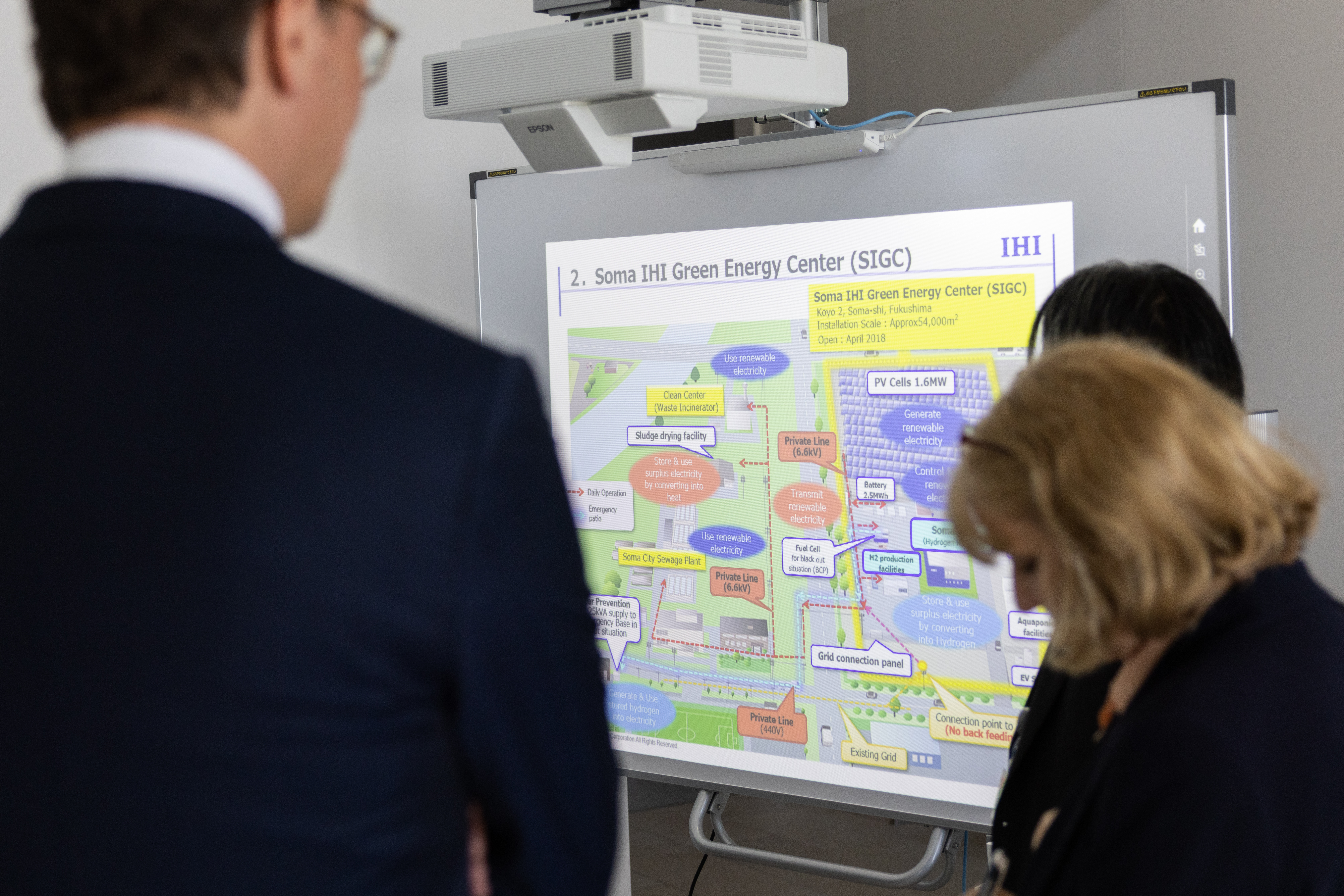 Fukushima ist in Japan – ebenso wie Nordrhein-Westfalen in Deutschland – Vorreiter auf dem Weg zur Klimaneutralität. Ministerpräsident Wüst besuchte das IHI Soma Green Energy Center – ein beispielhaftes Projekt für gelungene Transformation der Wirtschaft in der Region. Dank eines intelligenten Energiemanagements, welches unter anderem Photovoltaik-Anlagen und Wasserstoffproduktion umfasst, gelingt eine lokale Erzeugung von erneuerbarer Energie für den lokalen Verbrauch. Ebenfalls ein Beispiel für die Chancen von Wandel ist das Unternehmen Fujifilm. Bei seinem Besuch des Standortes Tokio würdigte Ministerpräsident Wüst das Engagement des Herstellers in Nordrhein-Westfalen. Fujifilm ist eines von vielen japanischen Unternehmen mit hohen und dauerhaften Investitionen in Nordrhein-Westfalen und steht beispielhaft für erfolgreiche Transformation – vom klassischen Fotogeschäft hin zu den Bereichen Medizintechnik und Life Science.