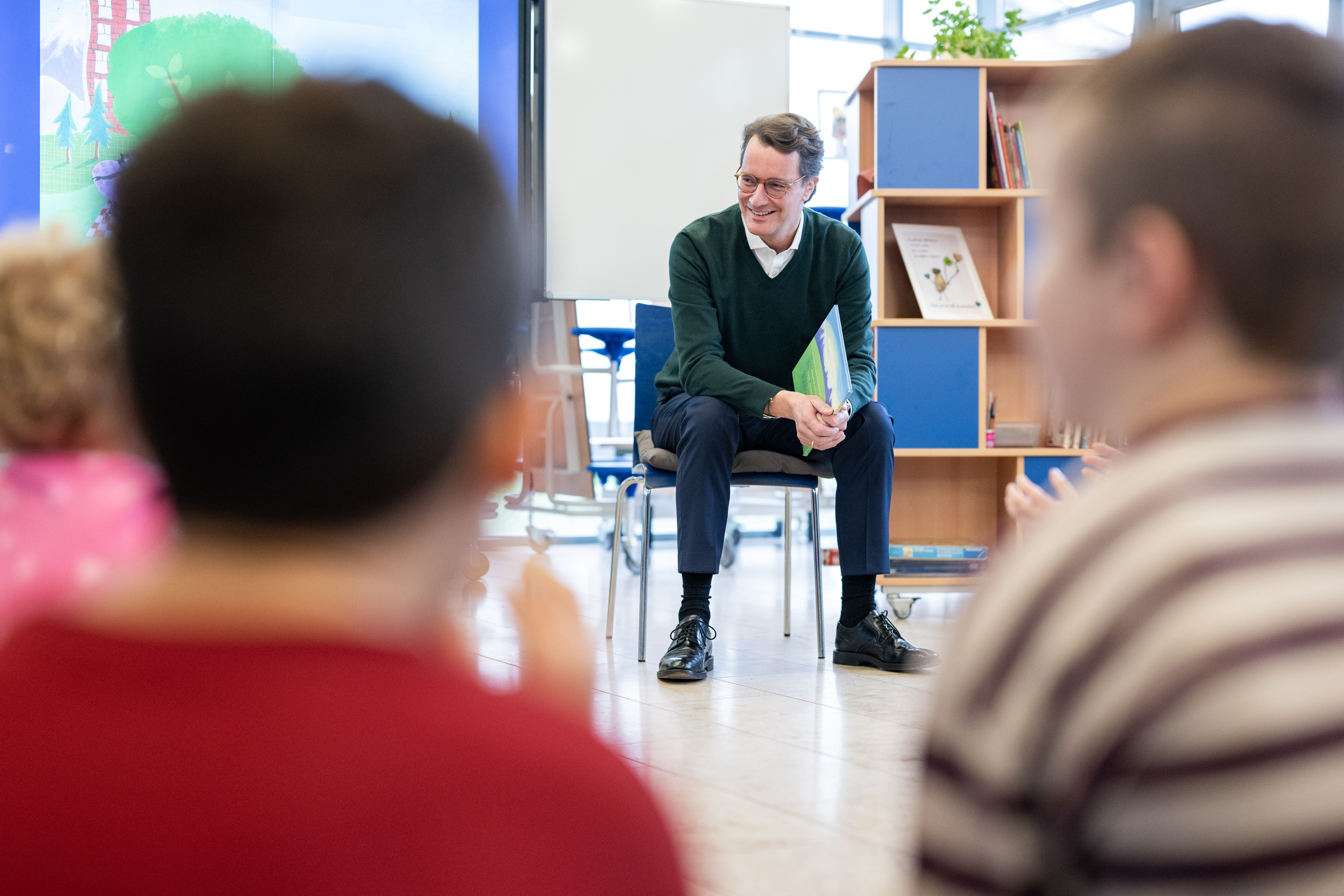 Ministerpräsident Wüst liest gemeinsam mit Henning Krautmacher / Vorleseaktionen mit Kabinettmitgliedern im ganzen Land