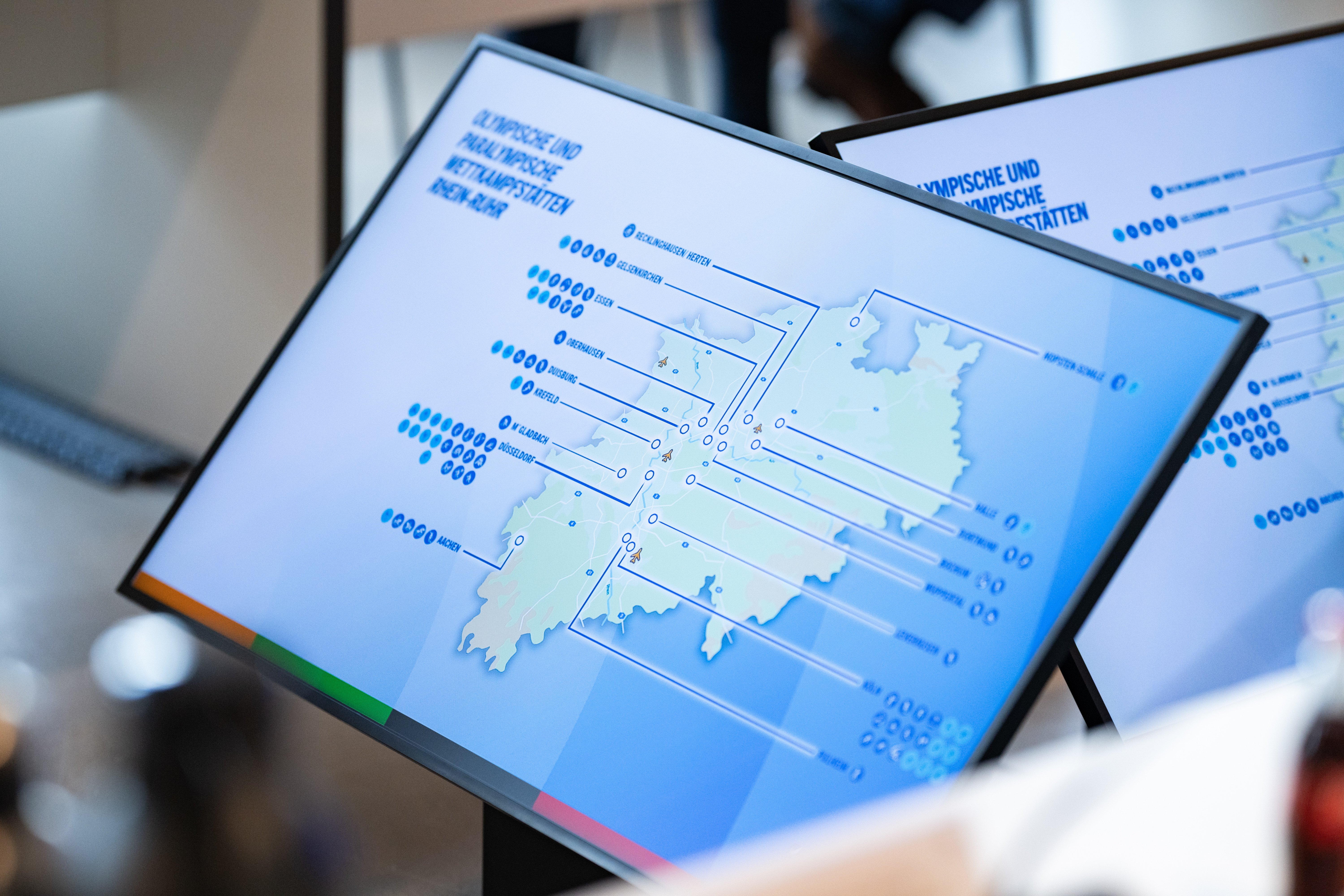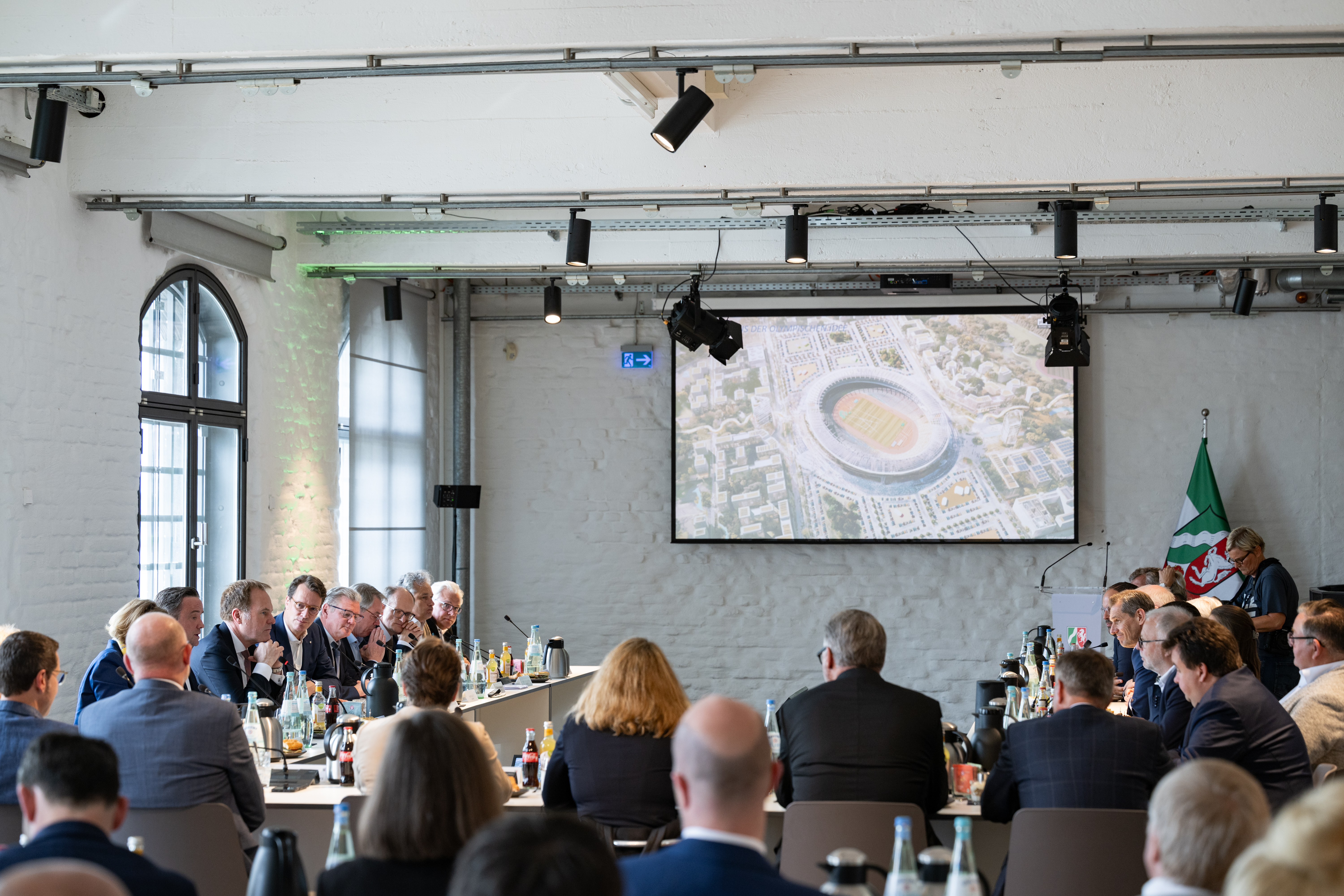 Mit spektakulären Sportstätten bringt Nordrhein-Westfalen den Olympischen Geist eindrucksvoll zu den Menschen. So würden die Schwimmwettbewerbe vor 60.000 Zuschauern in der Arena Gelsenkirchen stattfinden – noch nie zuvor in der Olympischen Geschichte wurde diese Disziplin vor mehr Menschen gezeigt. Die Finals im Handball, Basketball und Volleyball würden vor einer Rekordkulisse in der Merkur Spiel-Arena in Düsseldorf ausgerichtet. Die Reitsportanlage auf der Aachener Soers zählt bereits jetzt zu den renommiertesten Sportstätten, die der internationale Reitsport zu bieten hat. Auch der Parasport würde eine einzigartige und atemberaubende Kulisse erleben, mit Finals verschiedener Disziplinen vor 18.000 Menschen in der Lanxess Arena in Köln und Blindenfußball auf den Düsseldorfer Rheinwiesen. So sportbegeistert die Menschen in Nordrhein-Westfalen sind, so nachhaltig sind die Sportstätten im Land. Rund 95 Prozent der für die Olympischen und Paralympischen Spiele notwendigen Sportstätten würden bestehende oder temporär ertüchtigte oder errichtete Sportstätten sein.
