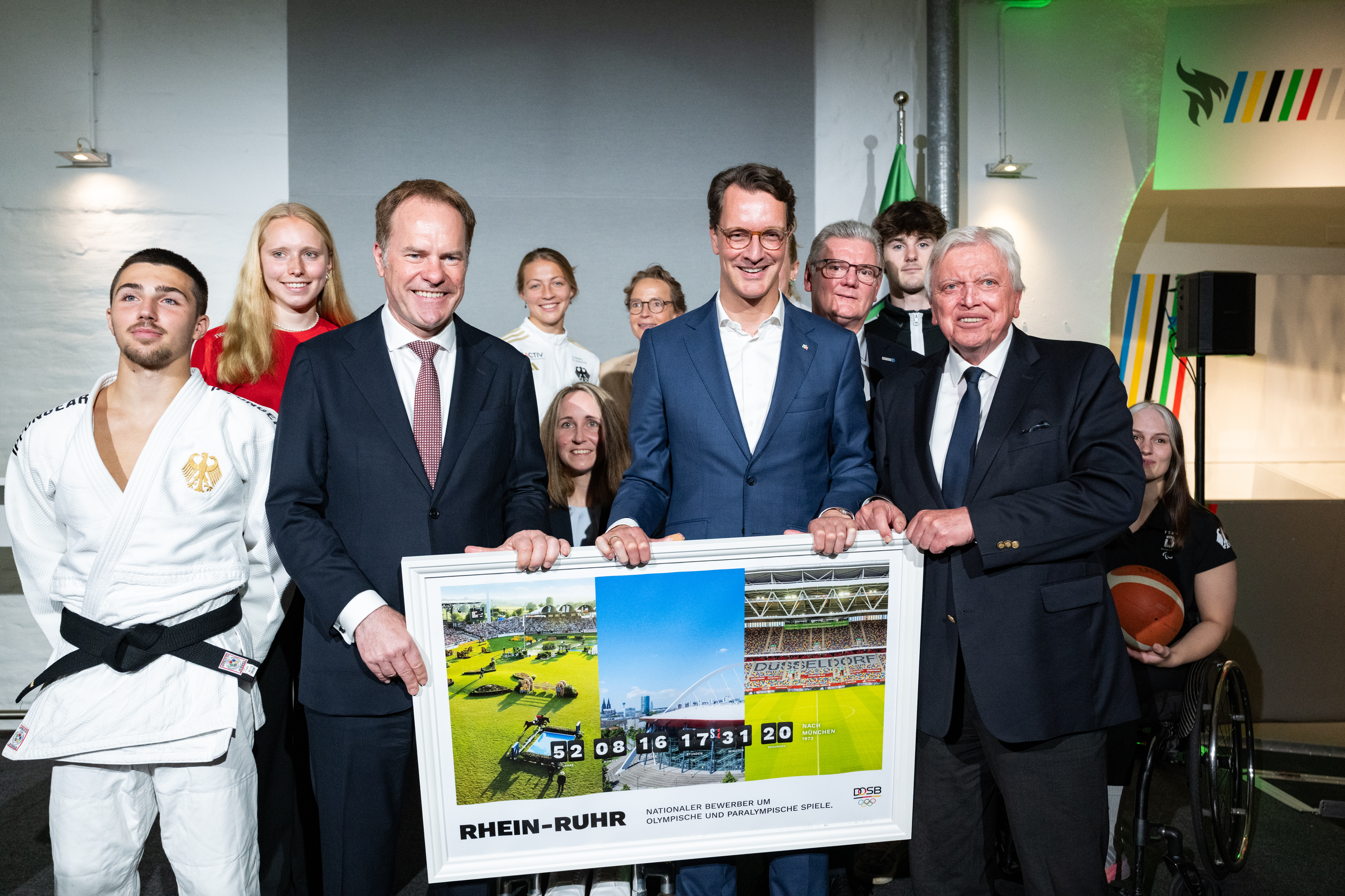 Ministerpräsident Hendrik Wüst: „Nordrhein-Westfalen ist bereit für die Spiele an Rhein und Ruhr. Bei uns stehen die Sportlerinnen und Sportler im Mittelpunkt. Für sie und mit den Menschen in unserem Land wollen wir ein großes Fest feiern. Mit bisher nicht erreichten Zuschauerzahlen, spektakulären Sportstätten, getragen von einer sportbegeisterten Bevölkerung. Es ist außergewöhnlich, dass bei Olympischen Spielen in Nordrhein-Westfalen insgesamt rund zehn Millionen Tickets für die Wettkämpfe angeboten werden können. Die Spiele fänden vor mehr Zuschauern statt als jemals zuvor in der Geschichte der Spiele. Wir verfügen schon heute über einzigartige Sportstätten mit Rekordkulissen. Unser Konzept ist nachhaltig, weil rund 95 Prozent der notwendigen Sportstätten bei uns bereits bestehen oder nur temporär ertüchtigt oder errichtet werden müssten. Die Sportbegeisterung in unserem Land hat schon heute Olympia-Niveau. Woche für Woche strömen Fan-Massen in die Stadien und Hallen unseres Landes. Sportgroßveranstaltungen sind in Nordrhein-Westfalen an der Tagesordnung – top organisiert und mit Zuschauerrekorden. Für diese Bewerbung gibt es einen großen politischen Konsens in unserem Land und eine hohe Akzeptanz in der Region. Nordrhein-Westfalen und die Region Rhein-Ruhr sind der richtige Platz für die Olympischen und Paralympischen Spiele. Unser Bekenntnis zu Olympia ist dabei fest verbunden mit unserem Bekenntnis zum Breitensport, den wir dauerhaft noch stärker fördern werden.“