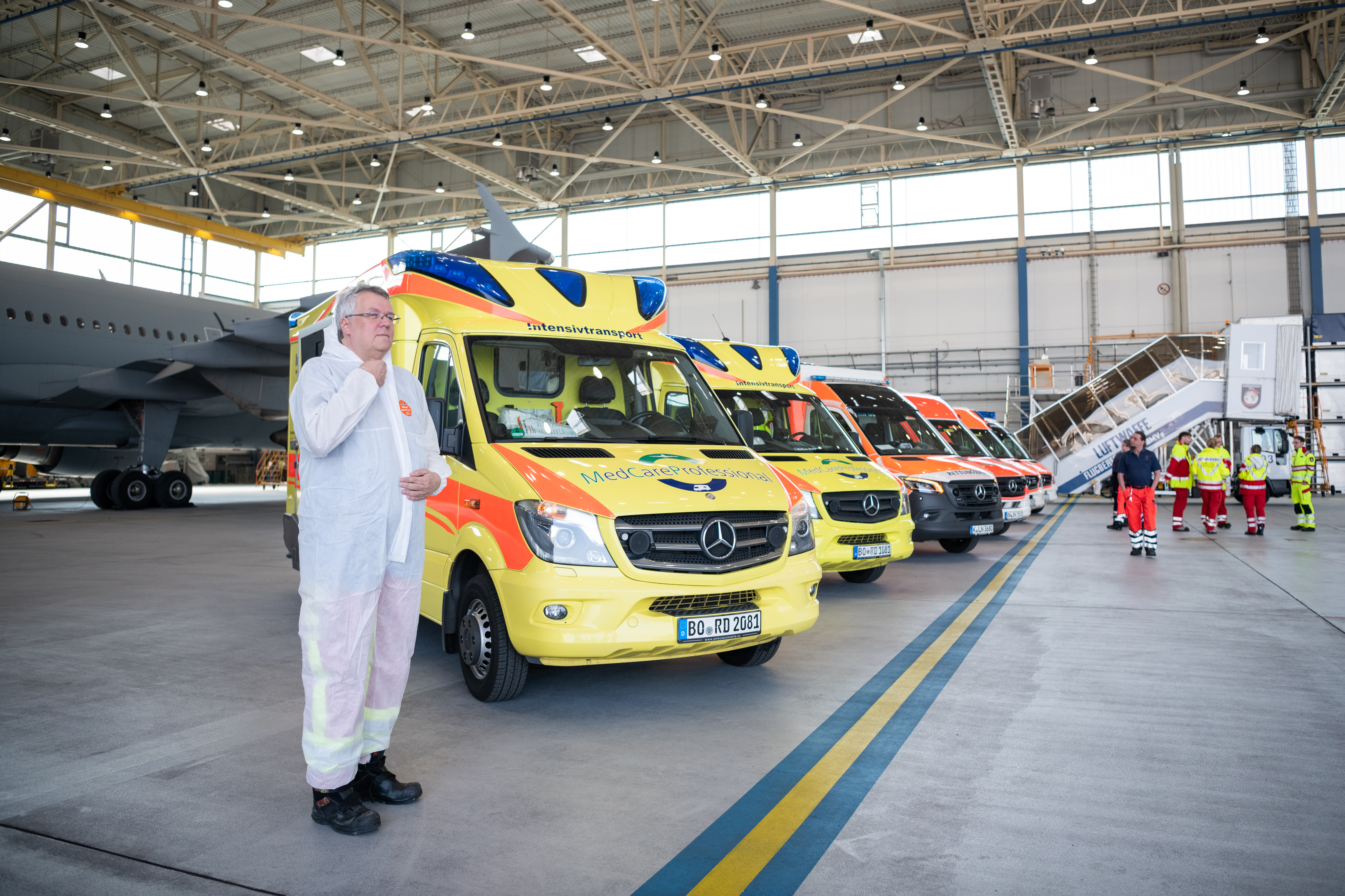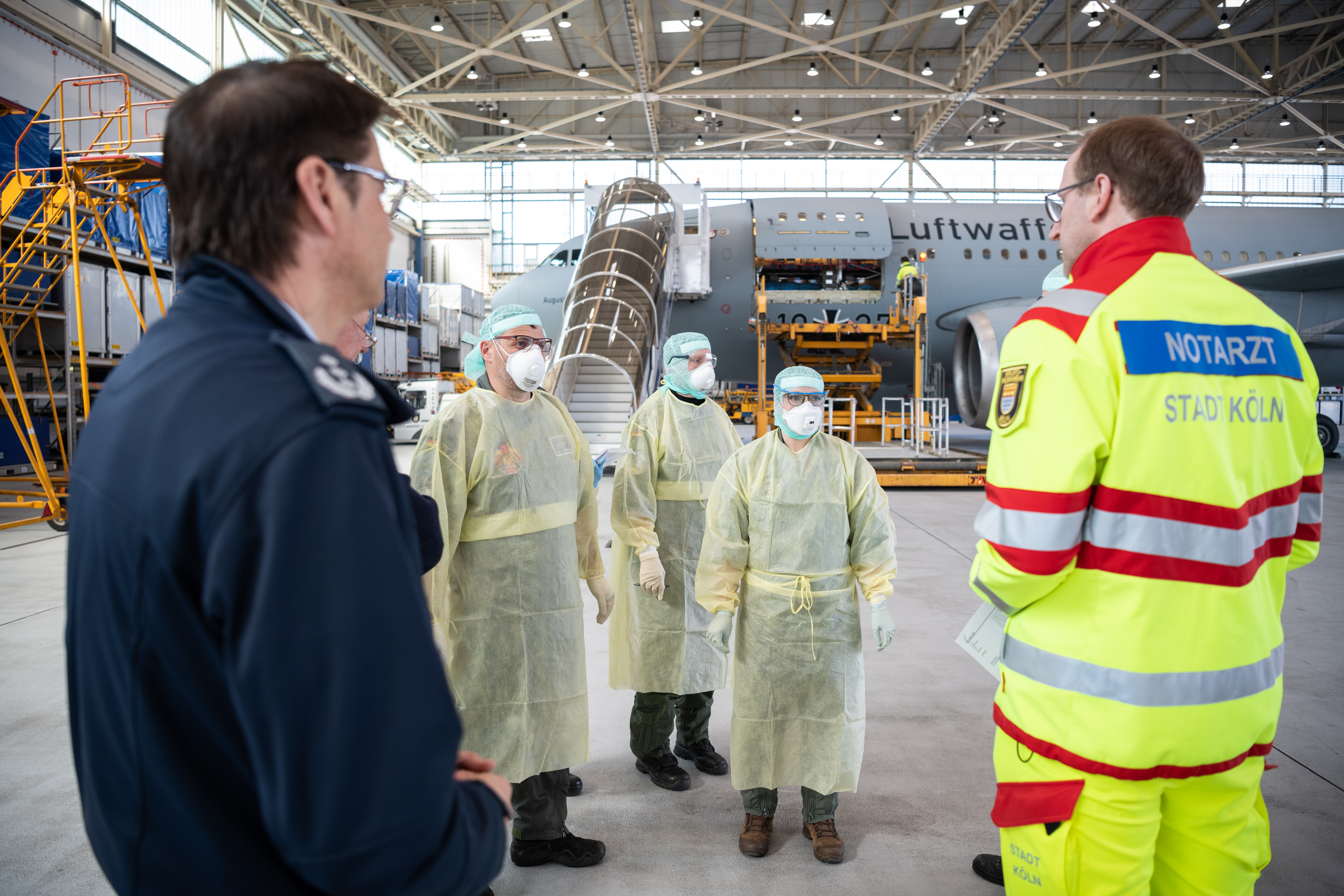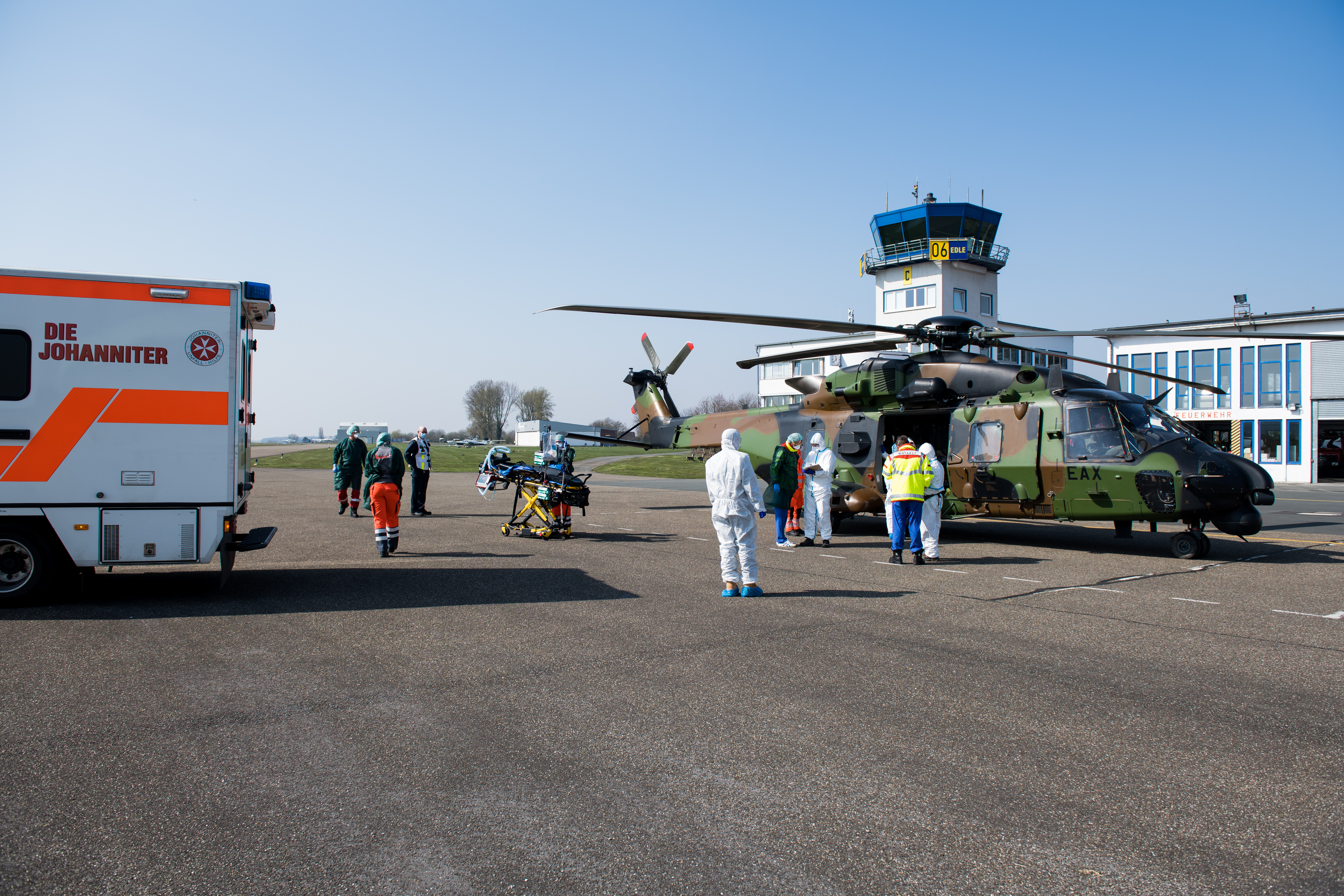 In den nächsten 24 Stunden startet eine spezielle Maschine der Luftwaffe vom Flughafen Köln/Bonn zum Flughafen Bergamo. Von dort aus bringt die Luftwaffe zunächst sechs mit dem Corona-Virus infizierte Patienten aus den besonders betroffenen Regionen Lombardei und Piemont zum Flughafen Köln/Bonn, wo sie am Wochenende ankommen und anschließend auf mehrere Kliniken in Nordrhein-Westfalen verteilt werden. Vom Flughafen aus werden je zwei Patienten in das Universitätsklinikum Köln, das Universitätsklinikum Bonn und das Katholische Klinikum Bochum gebracht. In den kommenden Tagen fliegt die Luftwaffe vier weitere Patienten aus Italien nach Nordrhein-Westfalen: Zwei von ihnen werden in das Universitätsklinikum Essen gebracht, die beiden anderen in das Herz- und Diabeteszentrum NRW der Universitätsklinik der Ruhr-Universität Bochum in Bad Oeynhausen.