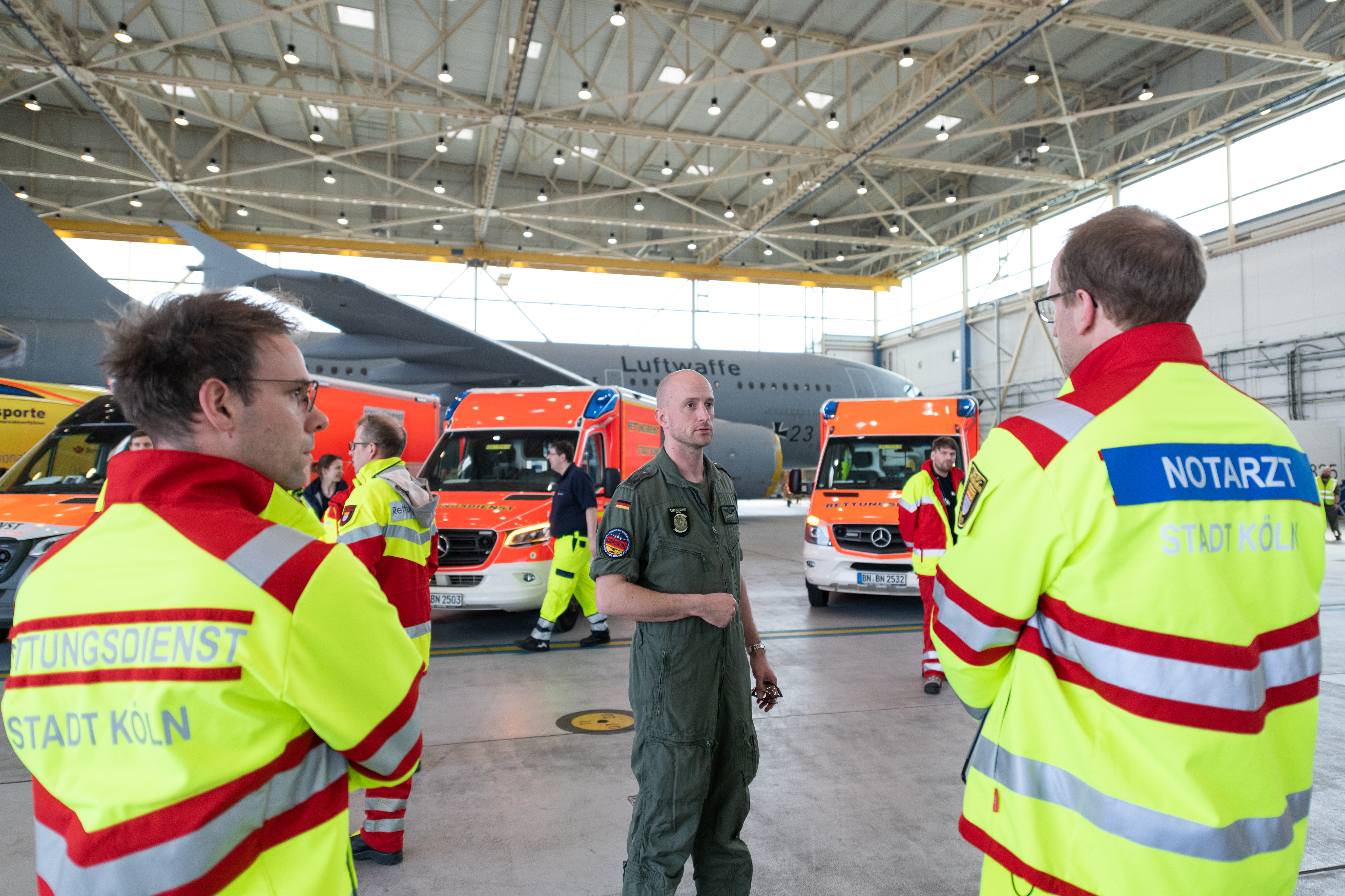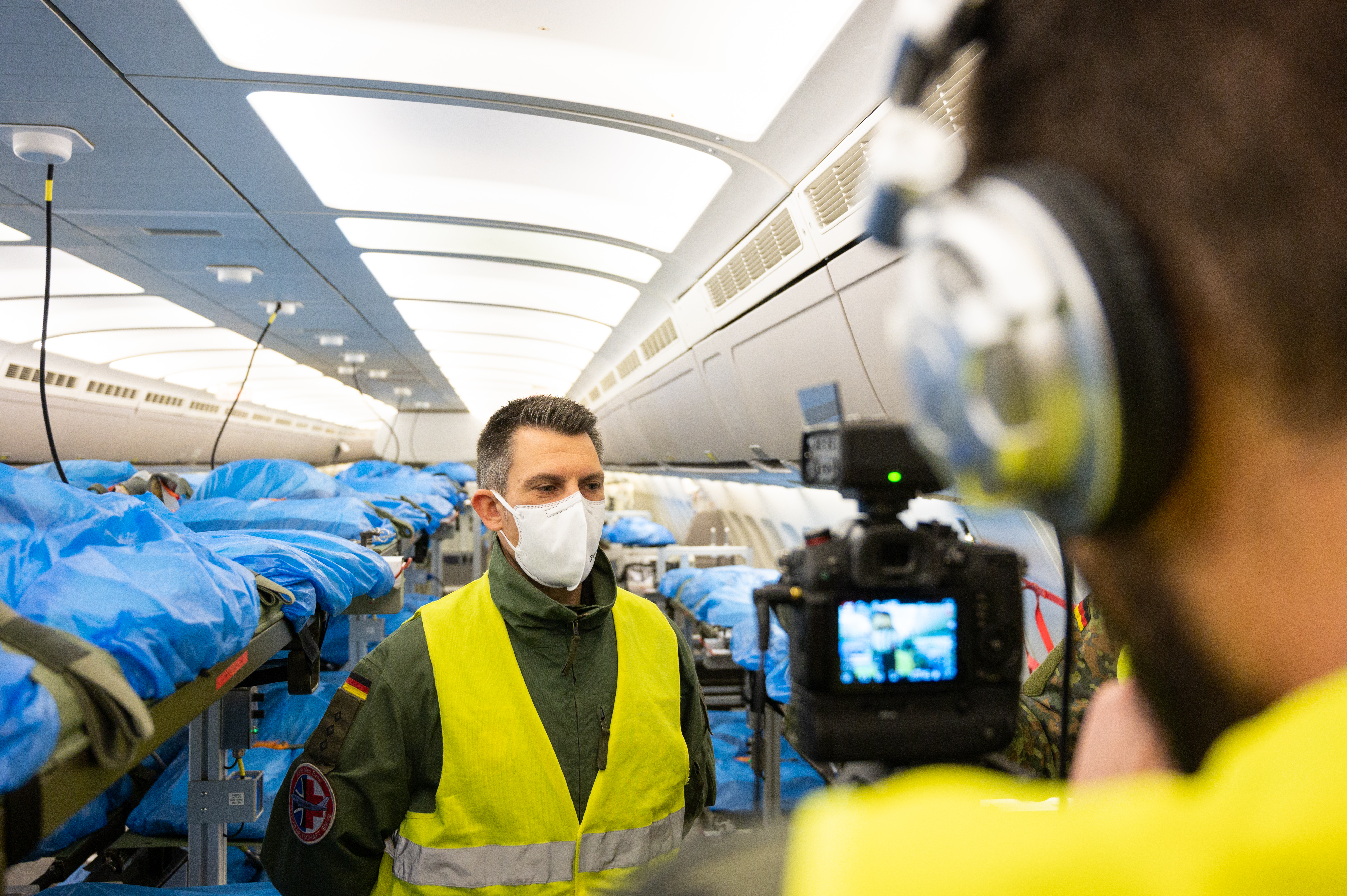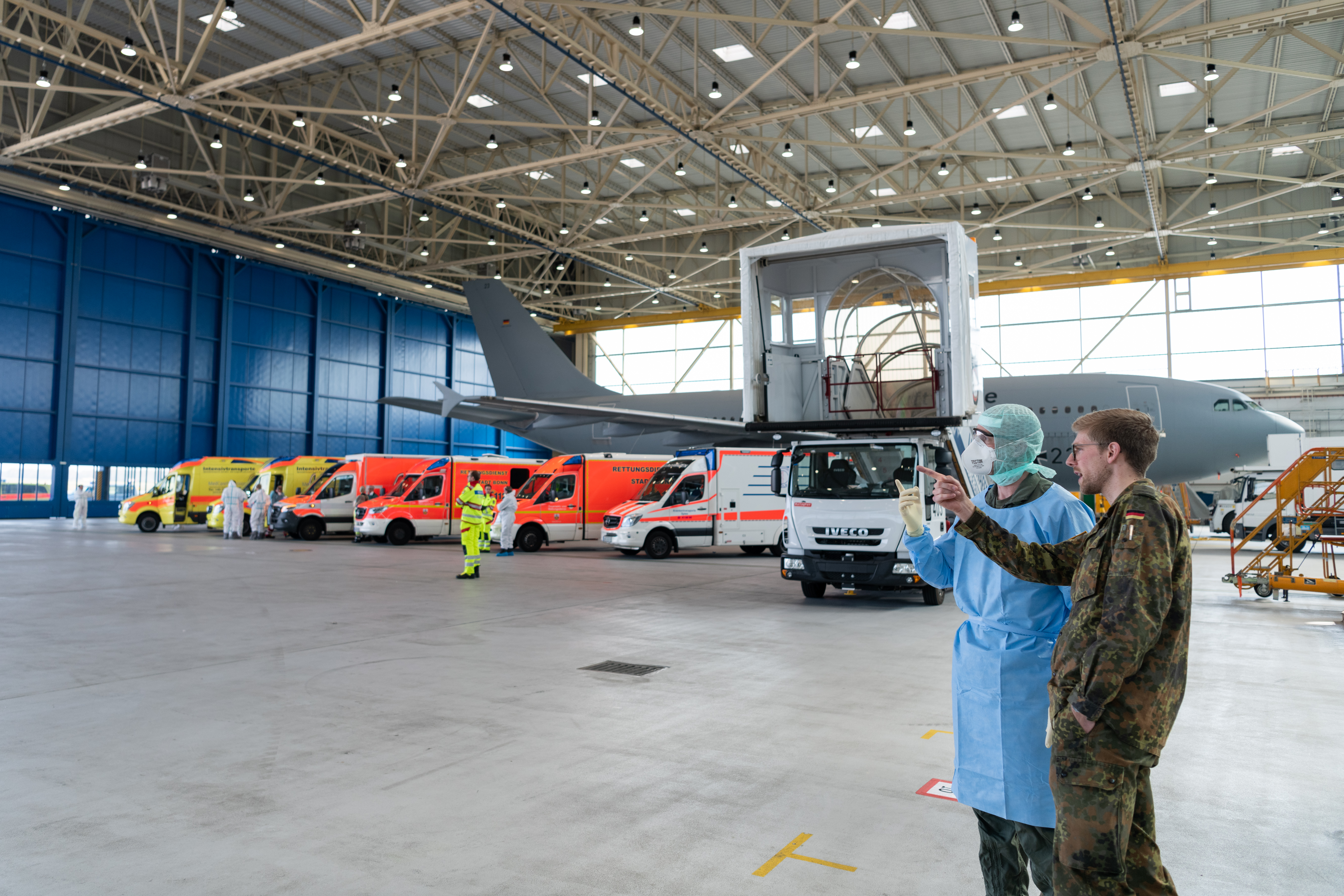 In den nächsten 24 Stunden startet eine spezielle Maschine der Luftwaffe vom Flughafen Köln/Bonn zum Flughafen Bergamo. Von dort aus bringt die Luftwaffe zunächst sechs mit dem Corona-Virus infizierte Patienten aus den besonders betroffenen Regionen Lombardei und Piemont zum Flughafen Köln/Bonn, wo sie am Wochenende ankommen und anschließend auf mehrere Kliniken in Nordrhein-Westfalen verteilt werden. Vom Flughafen aus werden je zwei Patienten in das Universitätsklinikum Köln, das Universitätsklinikum Bonn und das Katholische Klinikum Bochum gebracht. In den kommenden Tagen fliegt die Luftwaffe vier weitere Patienten aus Italien nach Nordrhein-Westfalen: Zwei von ihnen werden in das Universitätsklinikum Essen gebracht, die beiden anderen in das Herz- und Diabeteszentrum NRW der Universitätsklinik der Ruhr-Universität Bochum in Bad Oeynhausen.