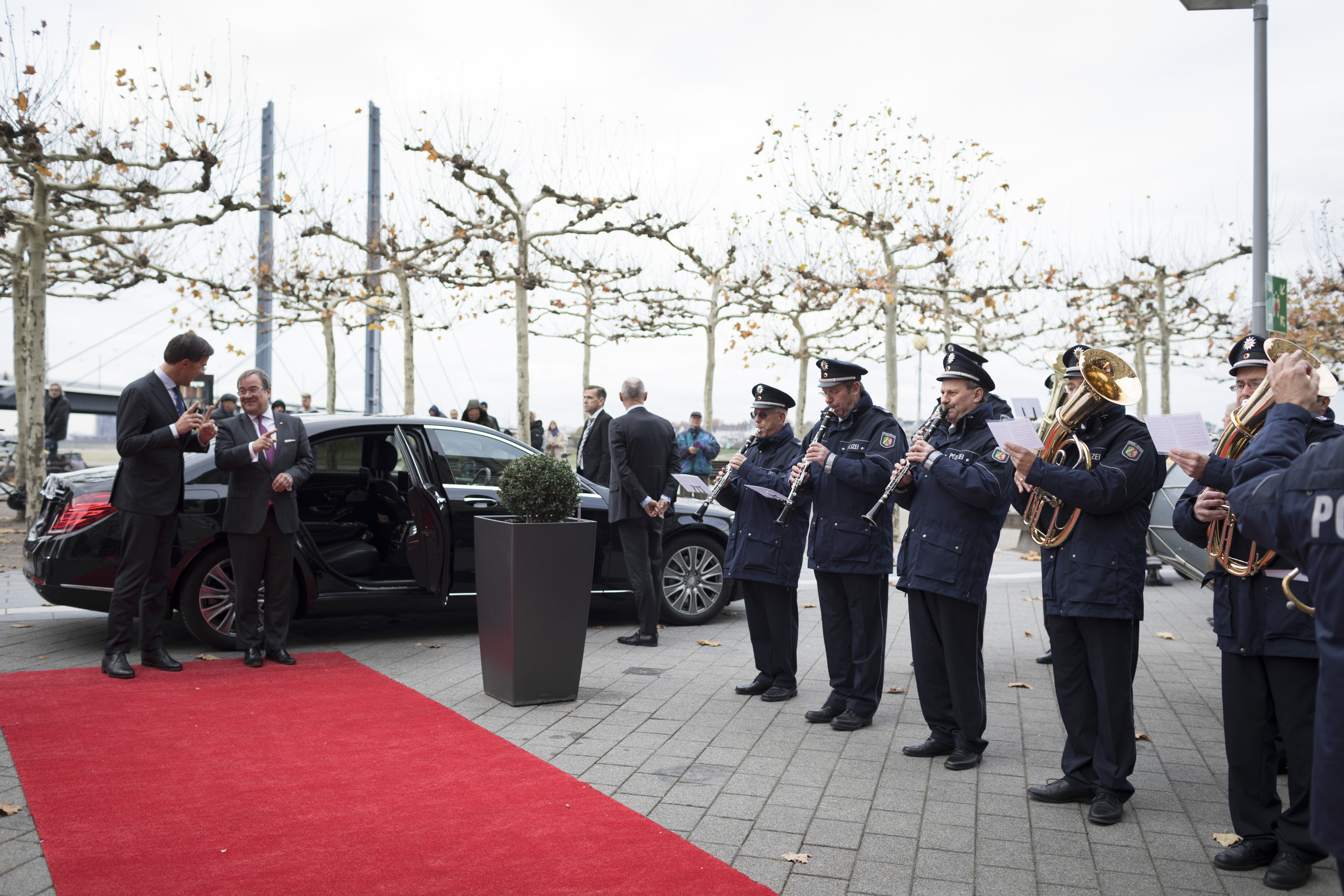 Ministerpräsident Armin Laschet hat den Ministerpräsidenten des Königreichs der Niederlande, Mark Rutte, und weitere Mitglieder seiner Regierung zu den ersten niederländisch-nordrhein-westfälischen Regierungskonsultationen in Düsseldorf empfangen. Nach der Begrüßung durch das Landespolizeiorchester vor dem Landeshaus sprachen die beiden Regierungschefs im Amtszimmer von Ministerpräsident Laschet, parallel fanden die Gespräche der nordrhein-westfälischen Kabinettmitglieder mit ihren niederländischen Fachkollegen statt. Im Anschluss kamen beide Seiten zu einer gemeinsamen Regierungssitzung im Kabinettsaal der Staatskanzlei zusammen.