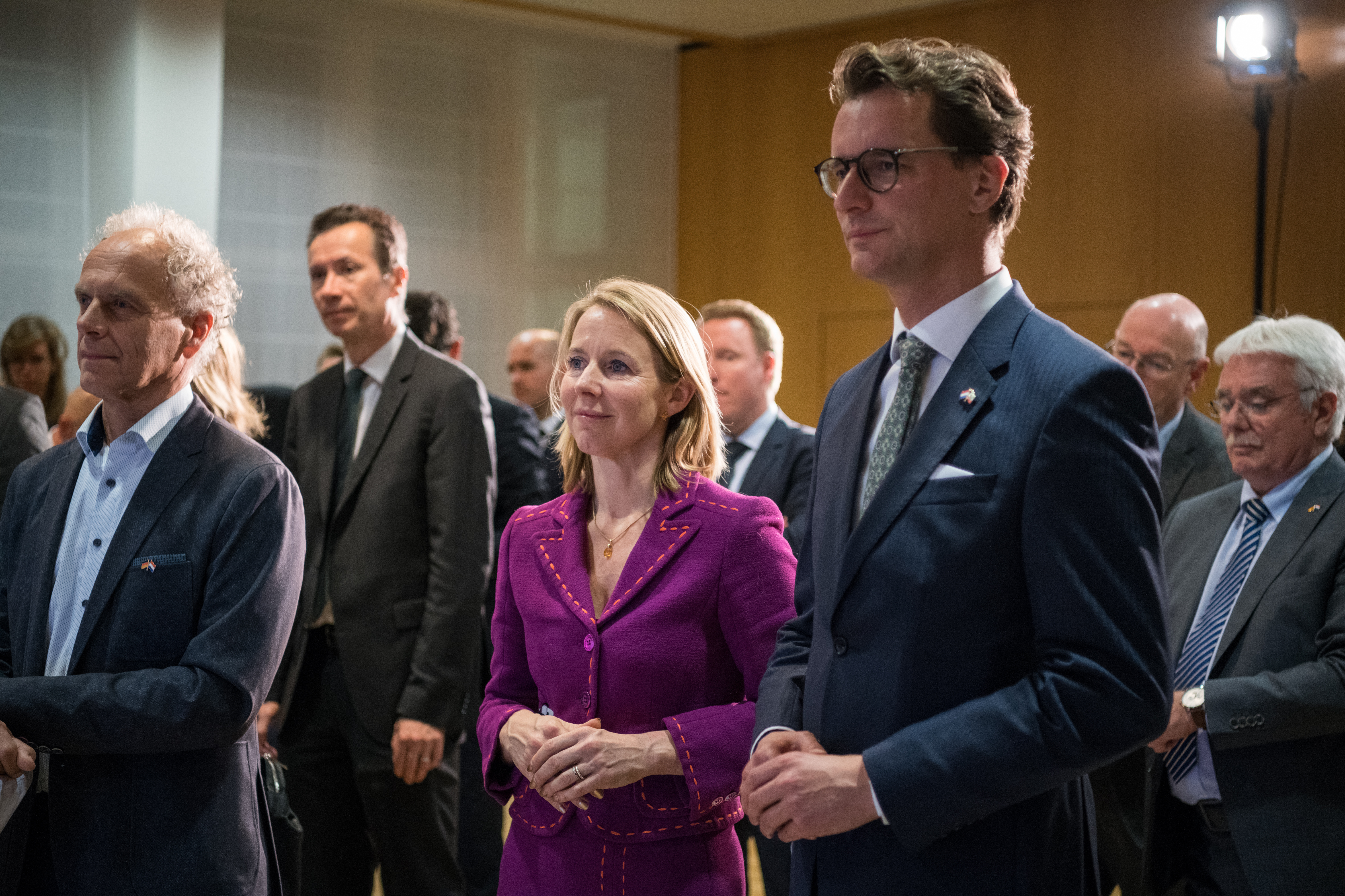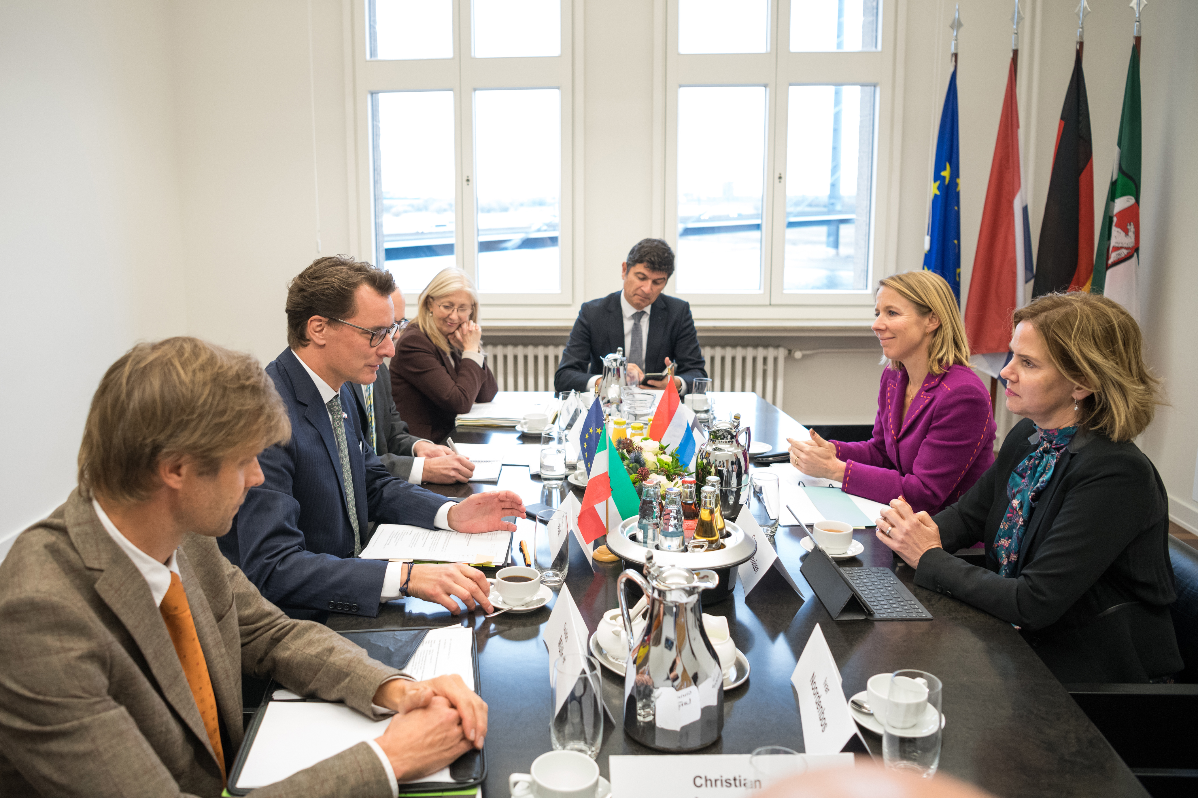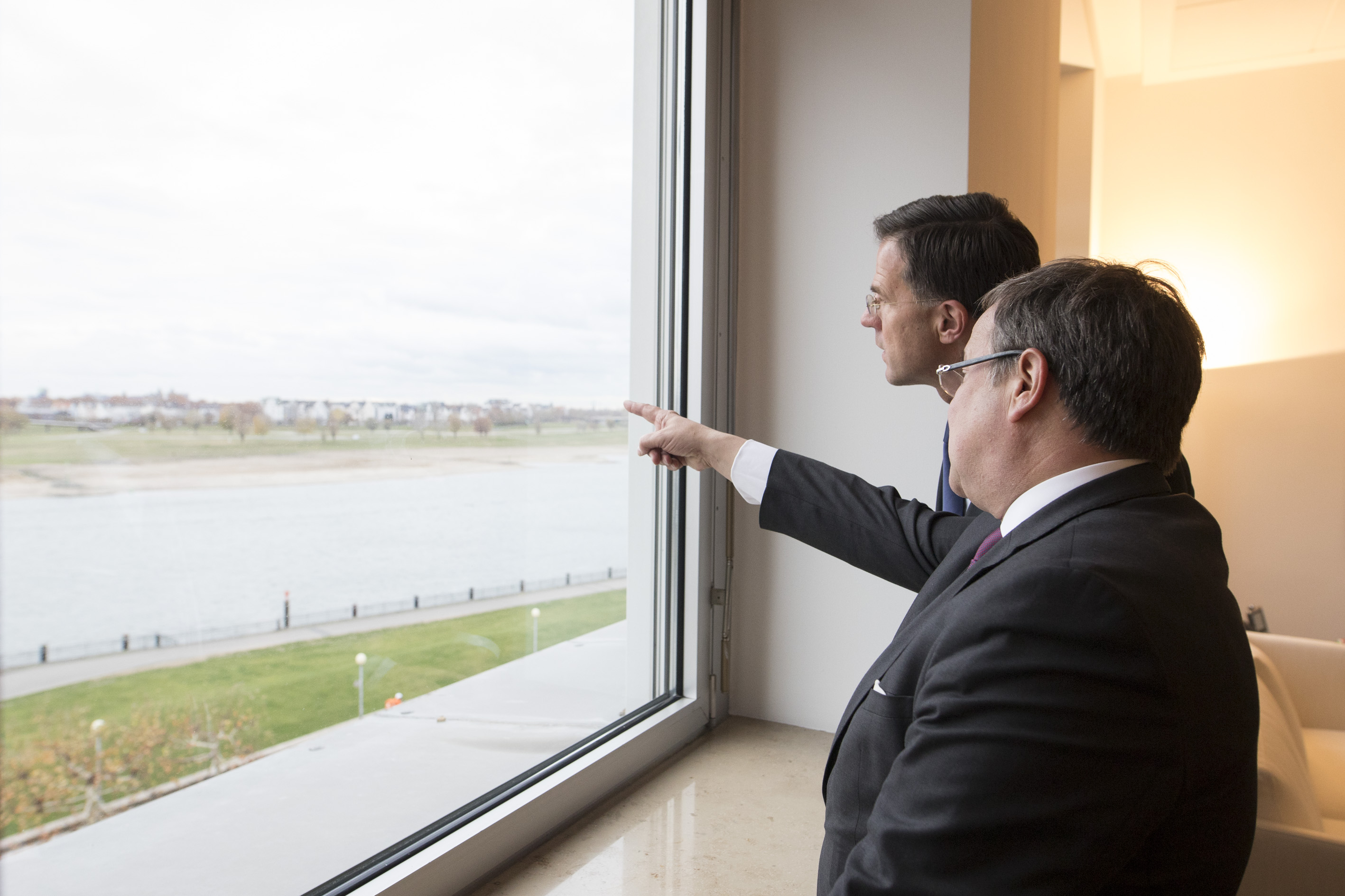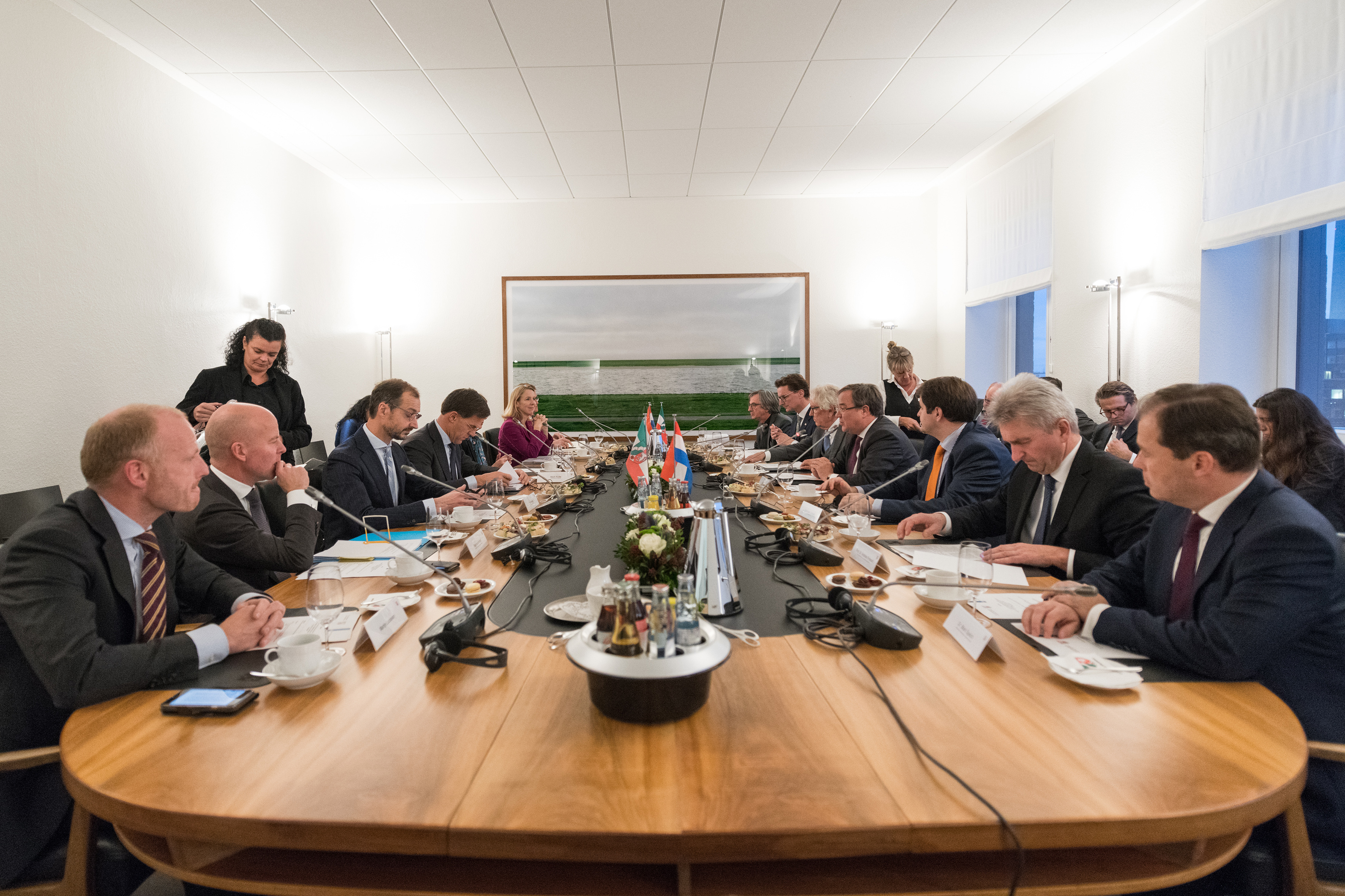 Beide Ministerpräsidenten hatten das Format eines regelmäßigen Austauschs ihrer Regierungen im September 2017 in Den Haag im Rahmen der ersten Auslandsreise von Ministerpräsident Laschet in die Niederlande verabredet und sind nun übereinkommen, die Regierungstreffen künftig regelmäßig fortzuführen.Ministerpräsident Rutte wurde beim dem Besuch im Landeshaus von mehreren Kabinettsmitgliedern begleitet: dem Minister für Wirtschaft und Klima, Eric Wiebes, der Ministerin für Infrastruktur und Wasserwirtschaft, Cora van Nieuwenhuizen, der Staatssekretärin für Infrastruktur und Wasserwirtschaft, Stientje van Veldhoven sowie dem Staatssekretär für grenzüberschreitende Zusammenarbeit und Königreichsbeziehungen im Innenministerium, Raymond Knops.