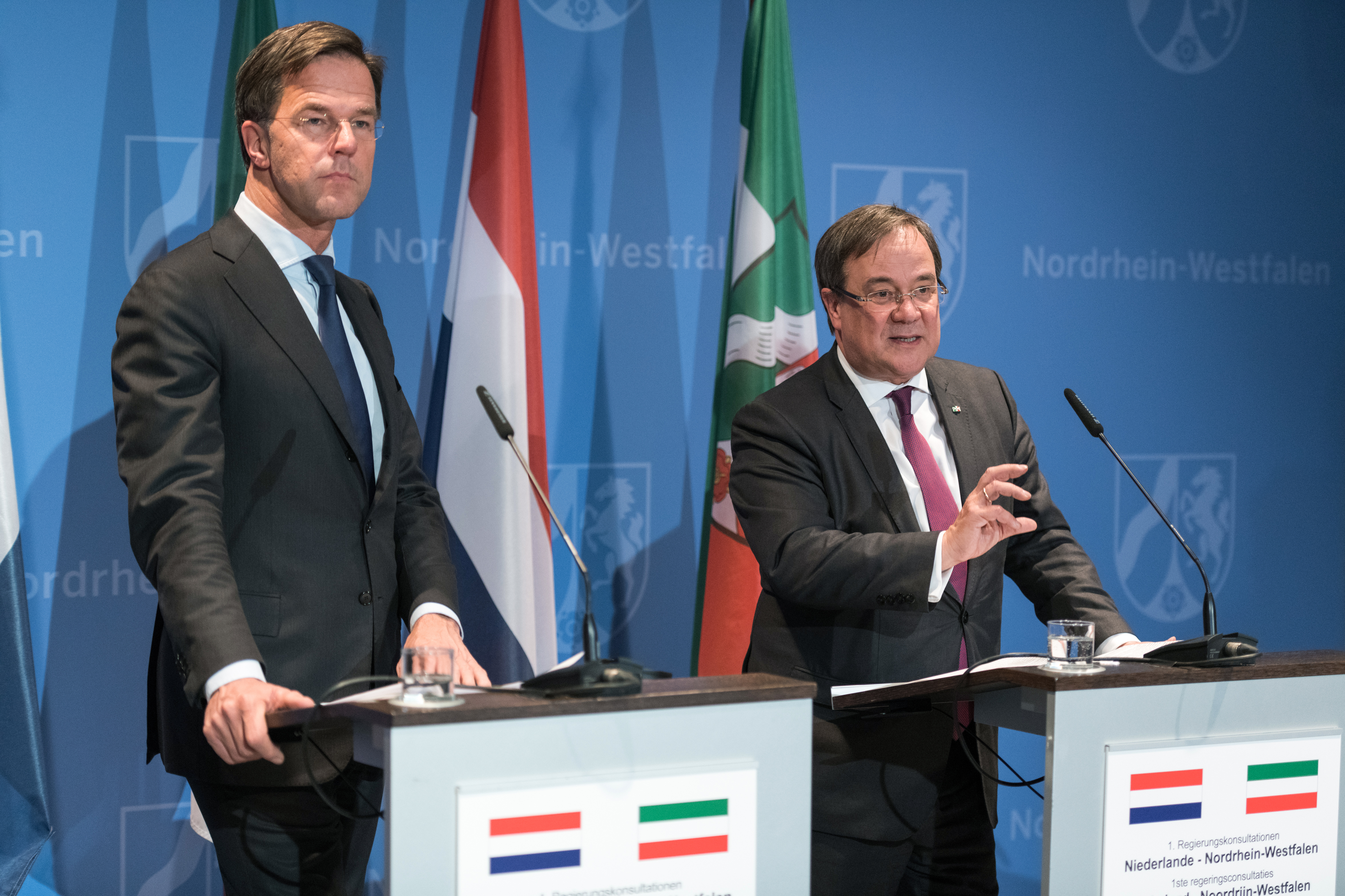 Ministerpräsident Armin Laschet: „Unsere ersten Regierungskonsultationen sind ein weiterer Impuls für die Beziehungen zwischen guten Nachbarn. Ministerpräsident Rutte und ich möchten mehr als das: Wir wollen ein starkes Signal für Europa setzen. Die Niederlande und Nordrhein-Westfalen wollen zeigen, dass wir Europa ganz praktisch noch besser und noch stärker machen können: durch eine Politik, die noch stärkere Verbindungen zwischen den Ländern der Europäischen Union schafft, beim Handel, bei Mobilität und Verkehr, in Wissenschaft, Bildung und Forschung. So schaffen wir mehr Europa. Und damit mehr Wohlstand, mehr Freiheit und mehr Sicherheit für unsere Bürgerinnen und Bürger.“