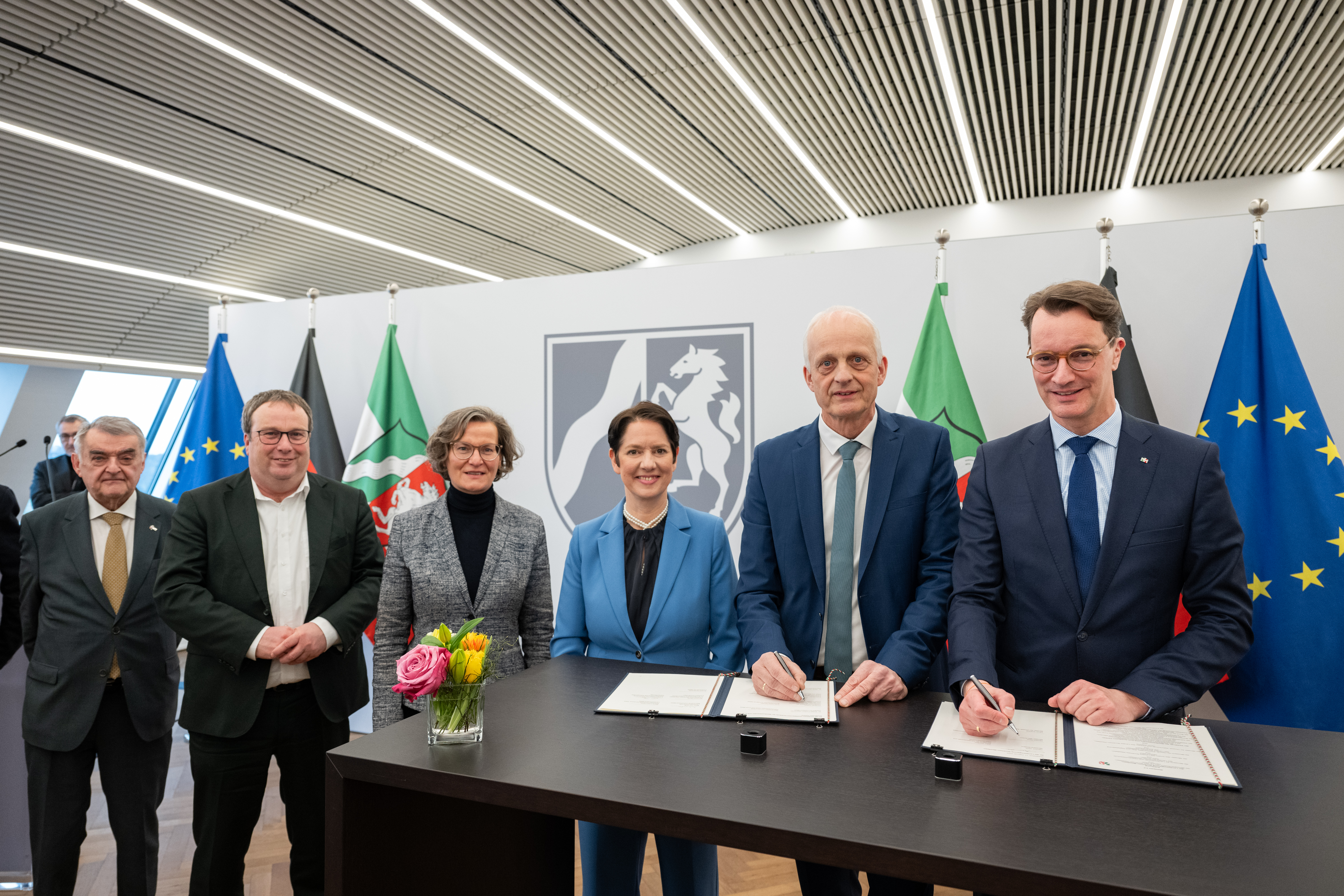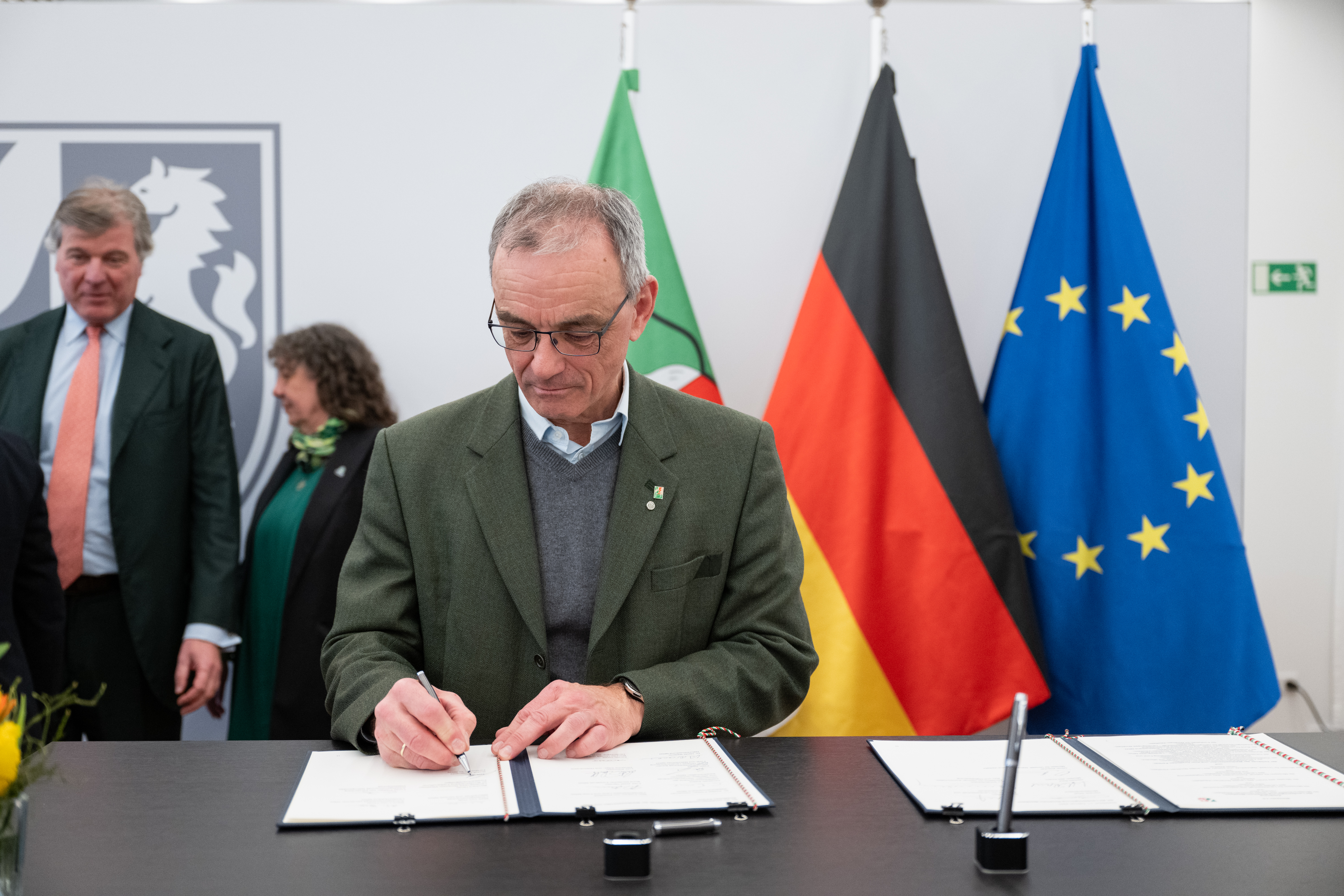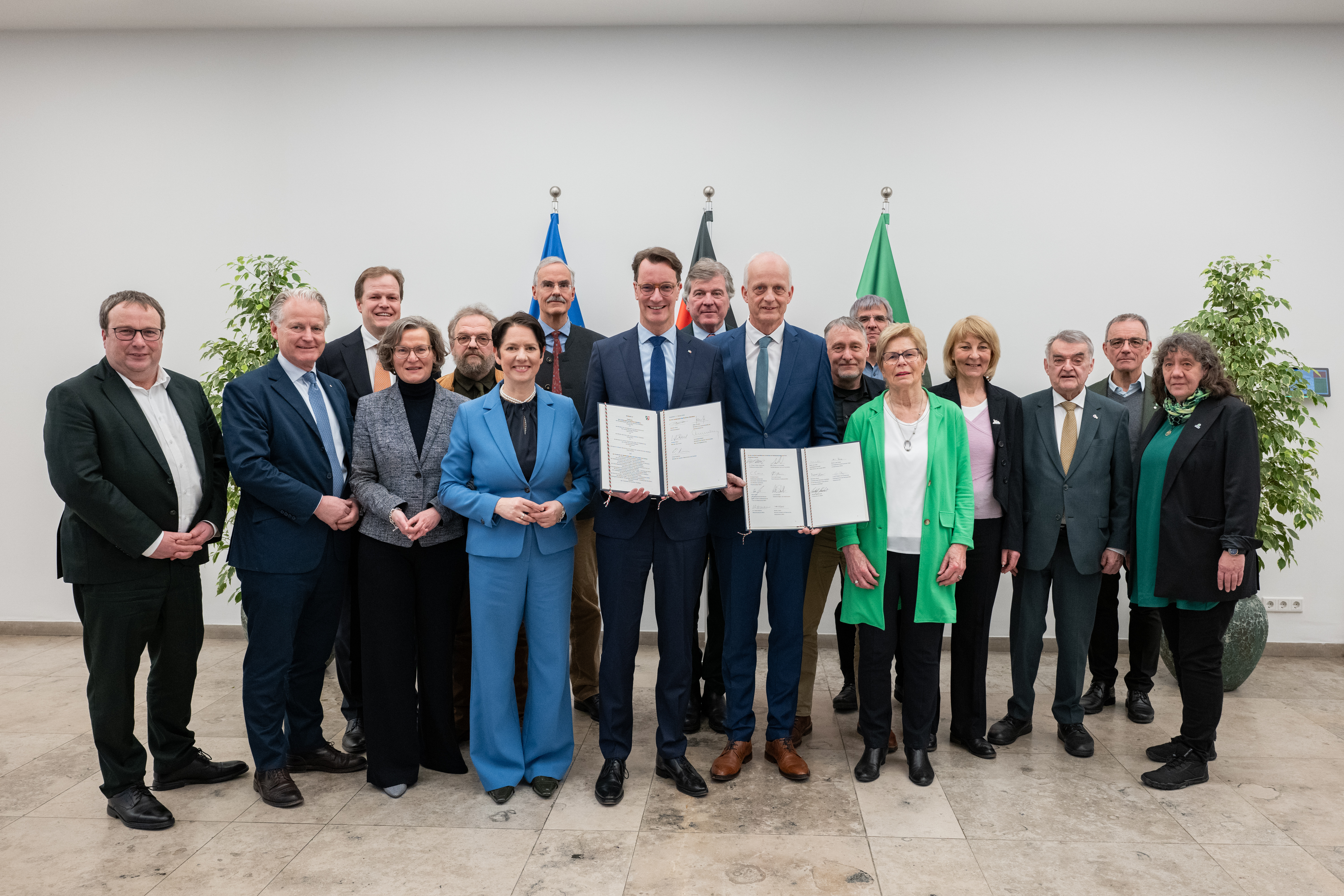 Der Wald in Nordrhein-Westfalen ist wichtig für Menschen, Tiere und Pflanzen, für den Klimaschutz und als Wirtschaftsfaktor. Durch Stürme, anhaltende Dürreperioden und massiven Schädlingsbefall an Bäumen sind in den vergangenen Jahren bis heute rund 130.000 Hektar Wald in Nordrhein-Westfalen schwer geschädigt worden. Erst im letzten Jahr hat sich eine leichte Entspannung eingestellt. Um den Wald mit seinen vielfältigen Nutz-, Schutz- und Erholungsfunktionen zu stärken und seine Anpassungsfähigkeit an die Folgen des Klimawandels zu unterstützen, hat die Landesregierung gemeinsam mit Verbänden des Waldbesitzes, des Naturschutzes, der Berufsvertretungen und der Forst- und Holzwirtschaft den „Waldpakt 2.0“ am 11. Februar in der Staatskanzlei des Landes Nordrhein-Westfalen unterzeichnet.