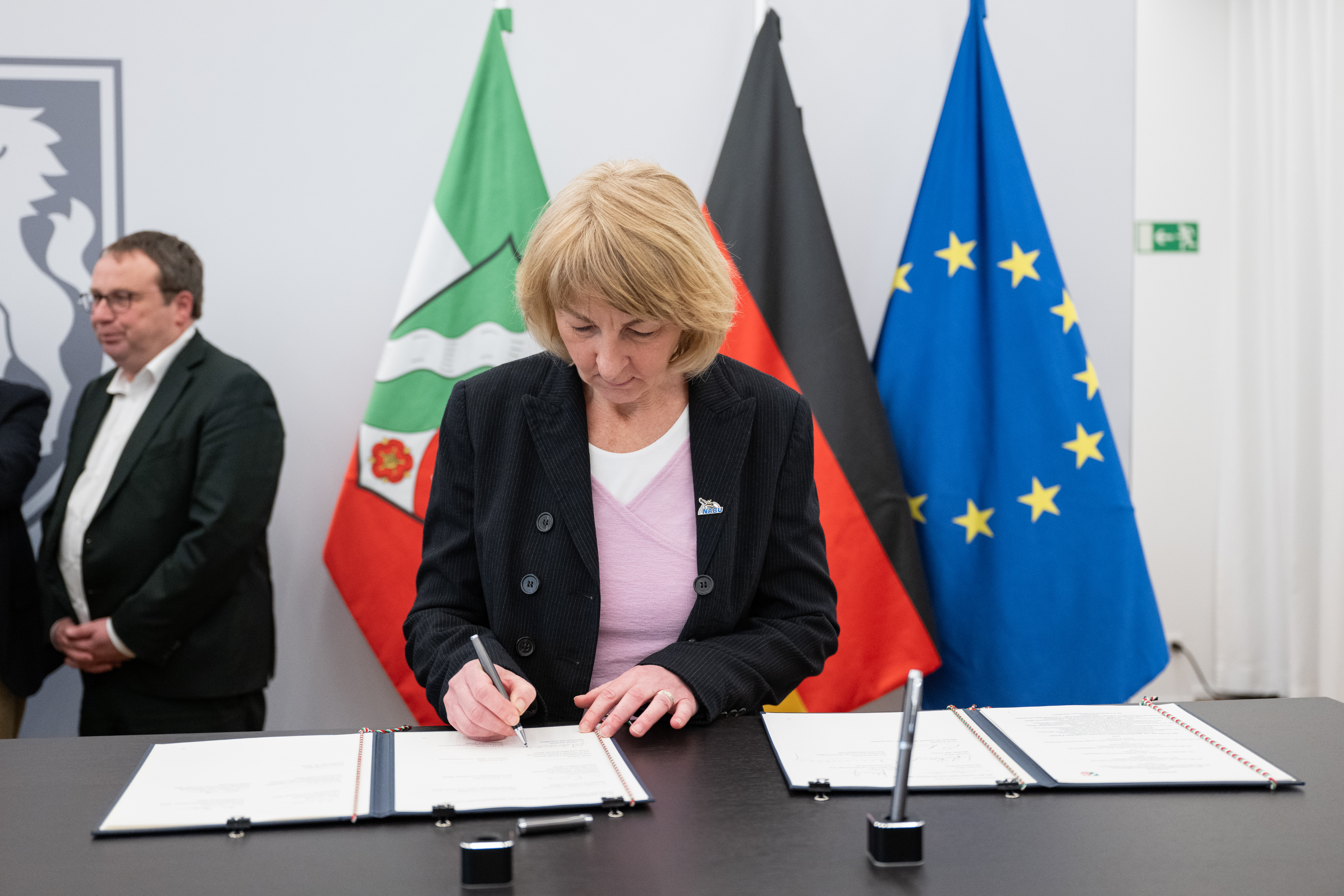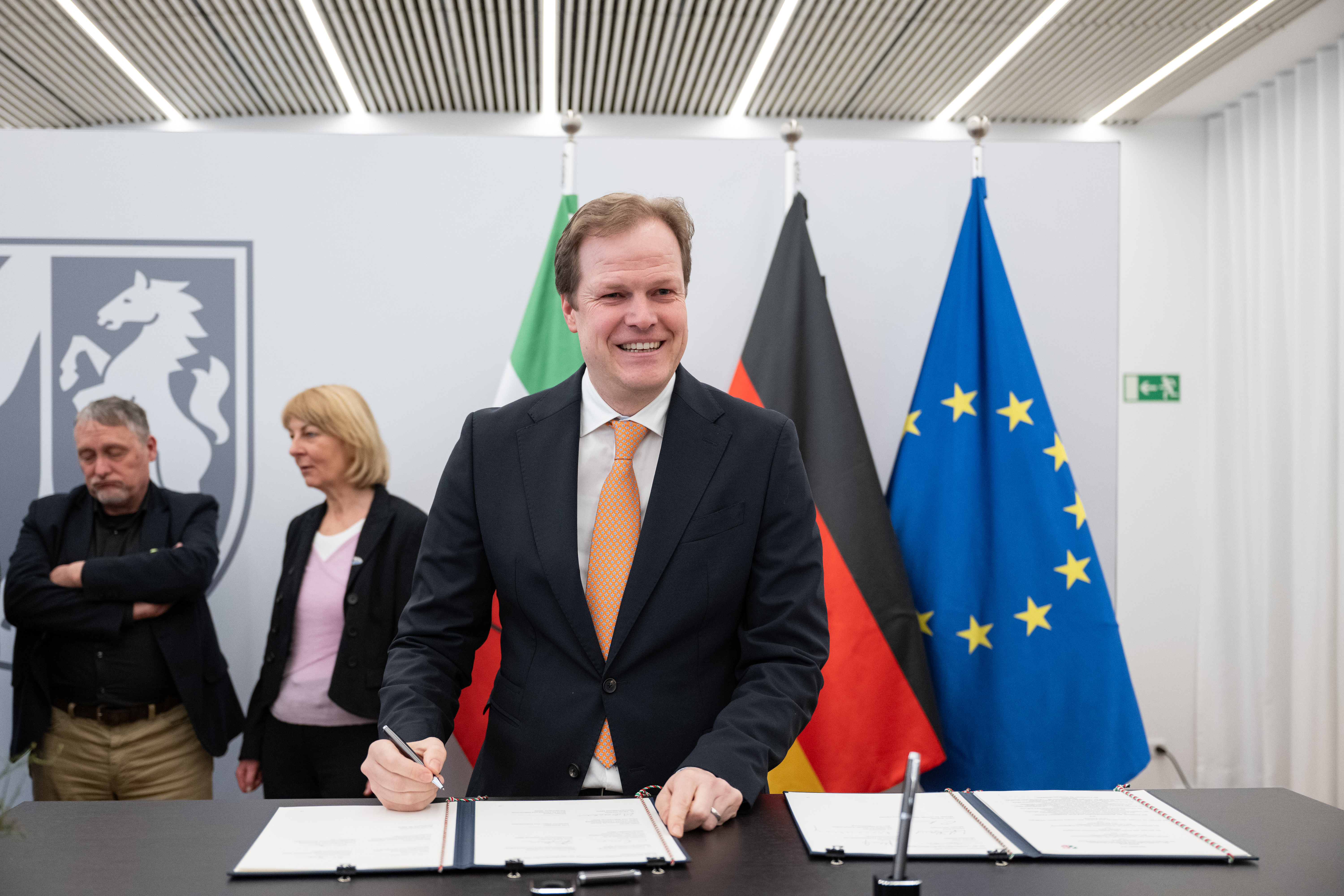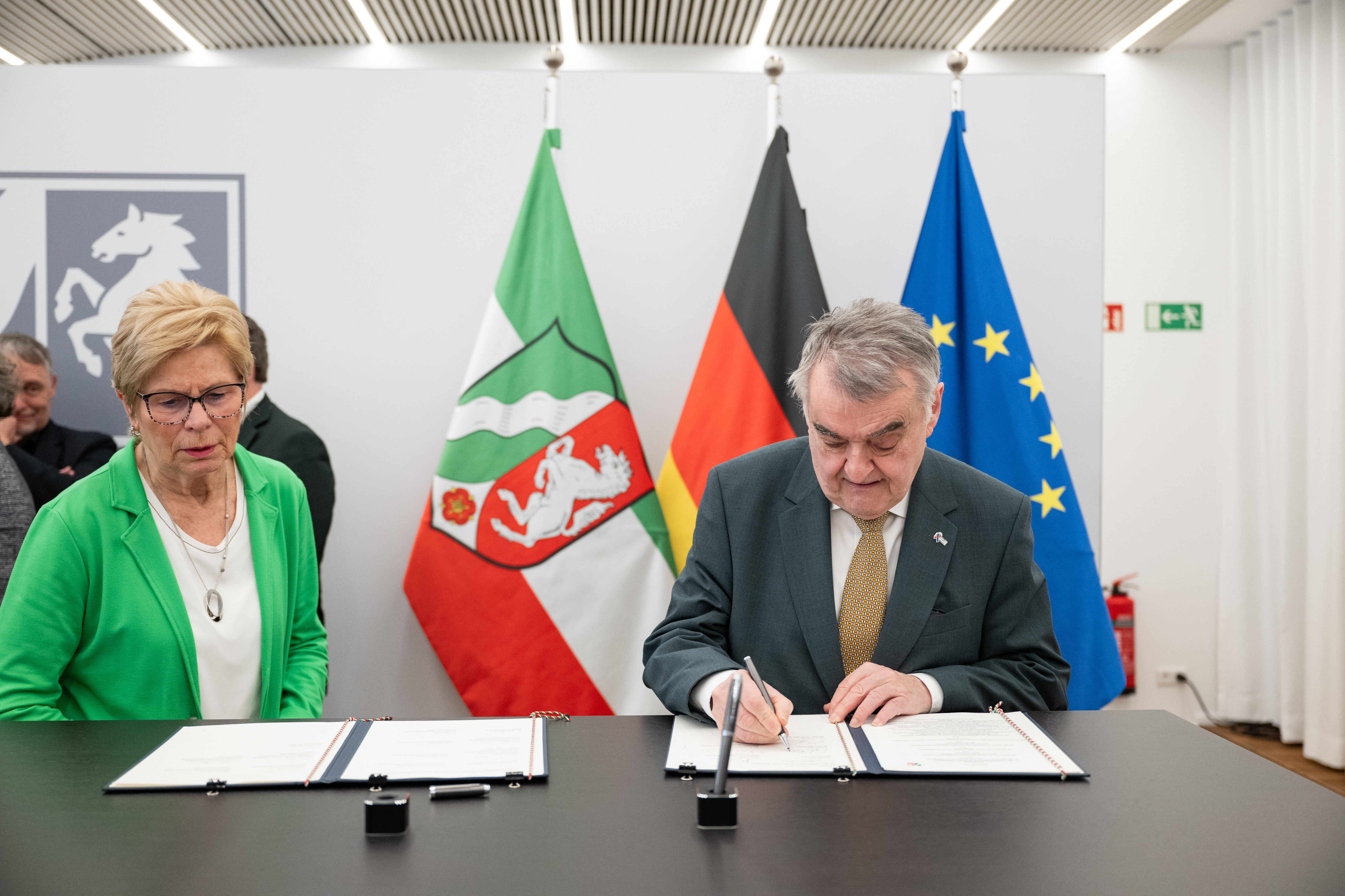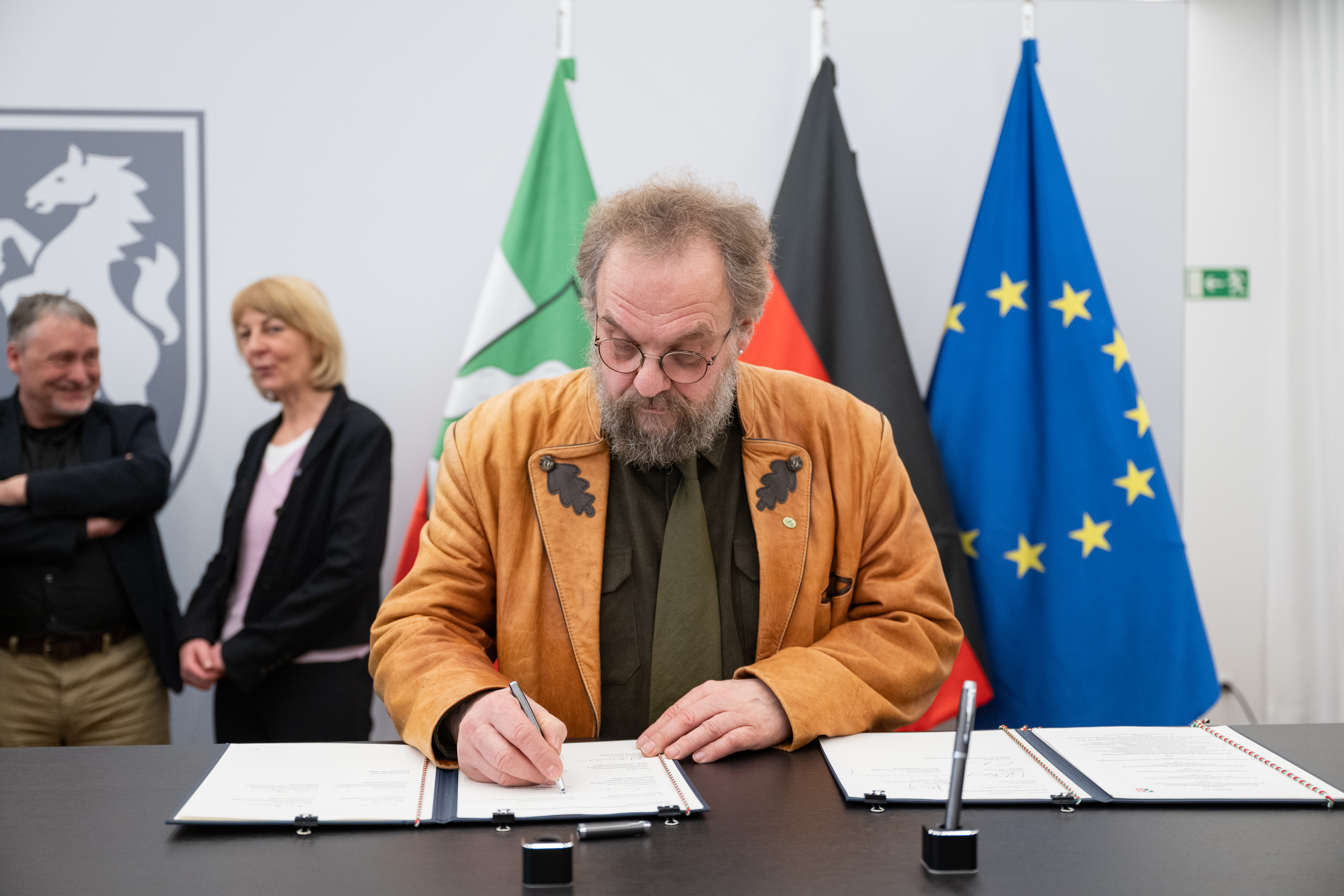Der Wald in Nordrhein-Westfalen ist wichtig für Menschen, Tiere und Pflanzen, für den Klimaschutz und als Wirtschaftsfaktor. Durch Stürme, anhaltende Dürreperioden und massiven Schädlingsbefall an Bäumen sind in den vergangenen Jahren bis heute rund 130.000 Hektar Wald in Nordrhein-Westfalen schwer geschädigt worden. Erst im letzten Jahr hat sich eine leichte Entspannung eingestellt. Um den Wald mit seinen vielfältigen Nutz-, Schutz- und Erholungsfunktionen zu stärken und seine Anpassungsfähigkeit an die Folgen des Klimawandels zu unterstützen, hat die Landesregierung gemeinsam mit Verbänden des Waldbesitzes, des Naturschutzes, der Berufsvertretungen und der Forst- und Holzwirtschaft den „Waldpakt 2.0“ am 11. Februar in der Staatskanzlei des Landes Nordrhein-Westfalen unterzeichnet.
