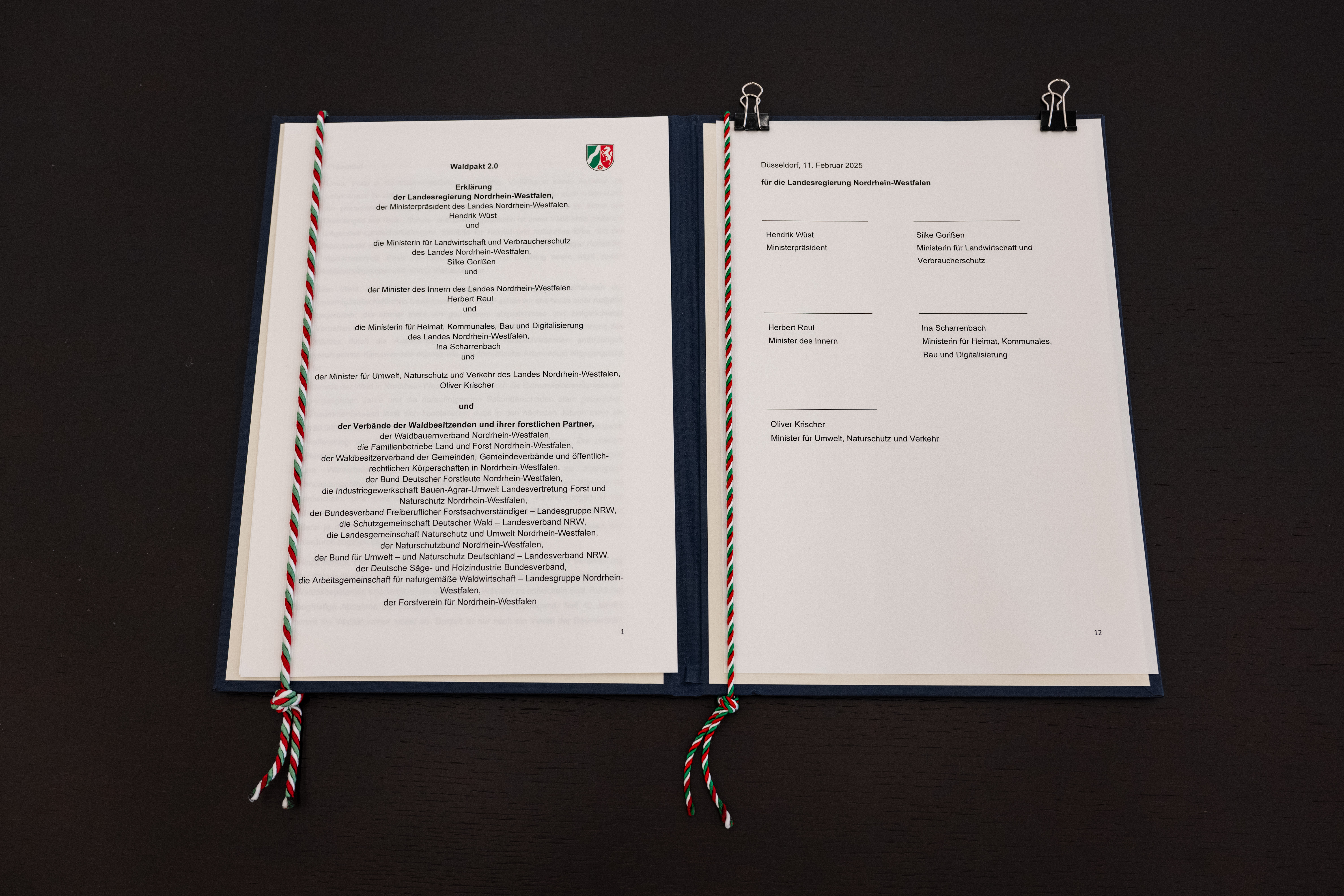 Die vollständige Fassung des Waldpakts 2.0 ist hier auf der Seite des Ministeriums für Landwirtschaft und Verbraucherschutz abrufbar: https://www.mlv.nrw.de/wp-content/uploads/2025/02/Waldpakt-2.0.pdf