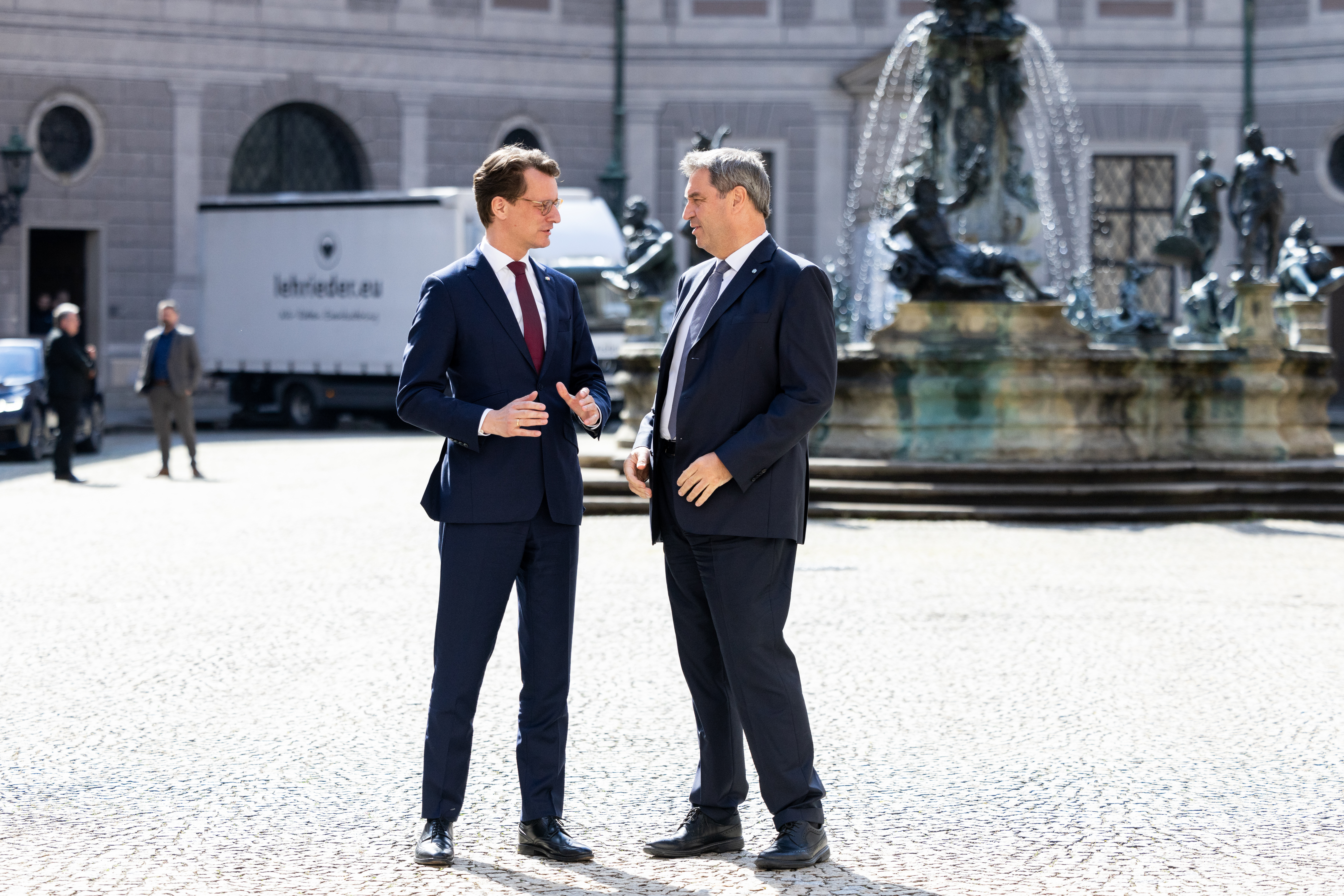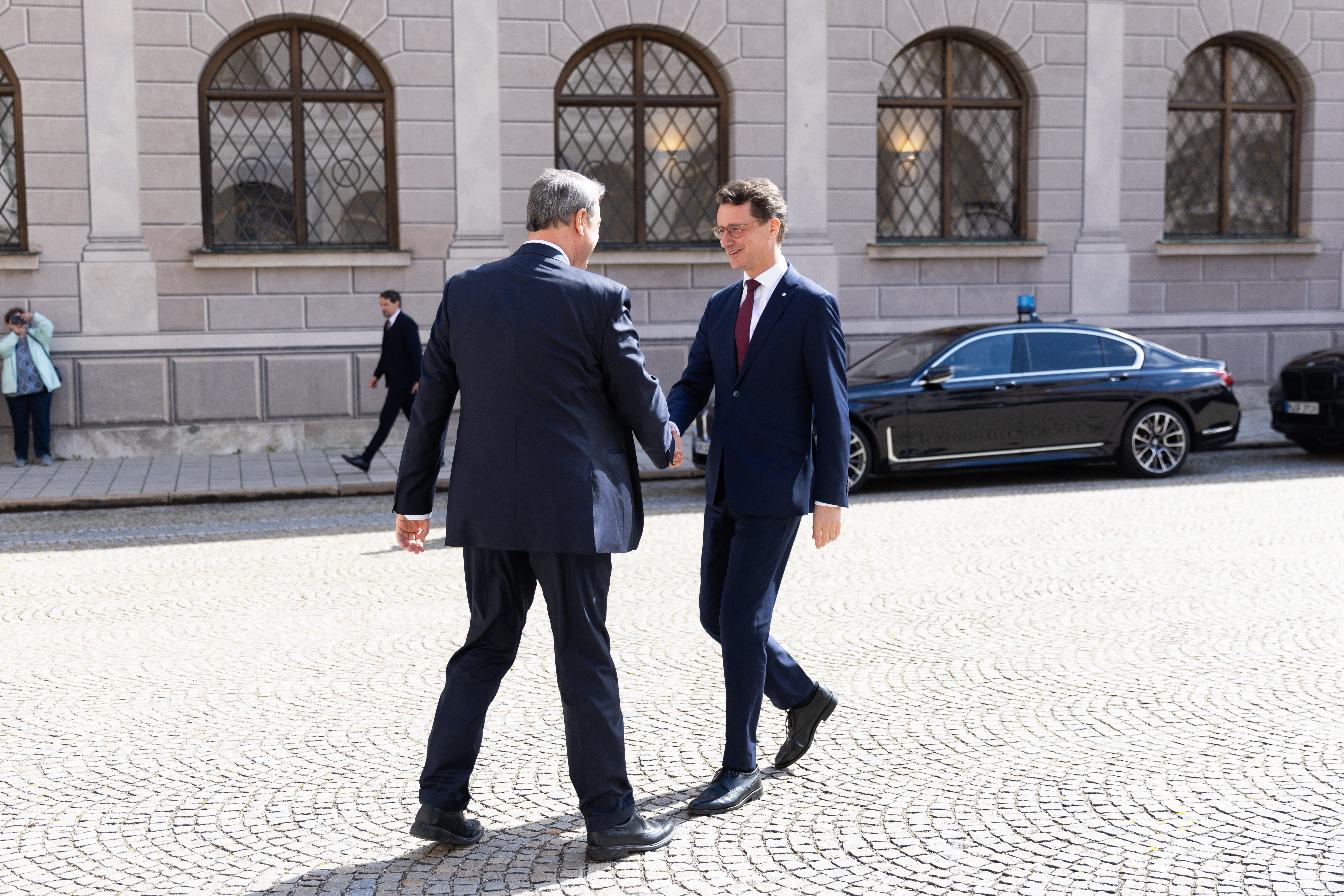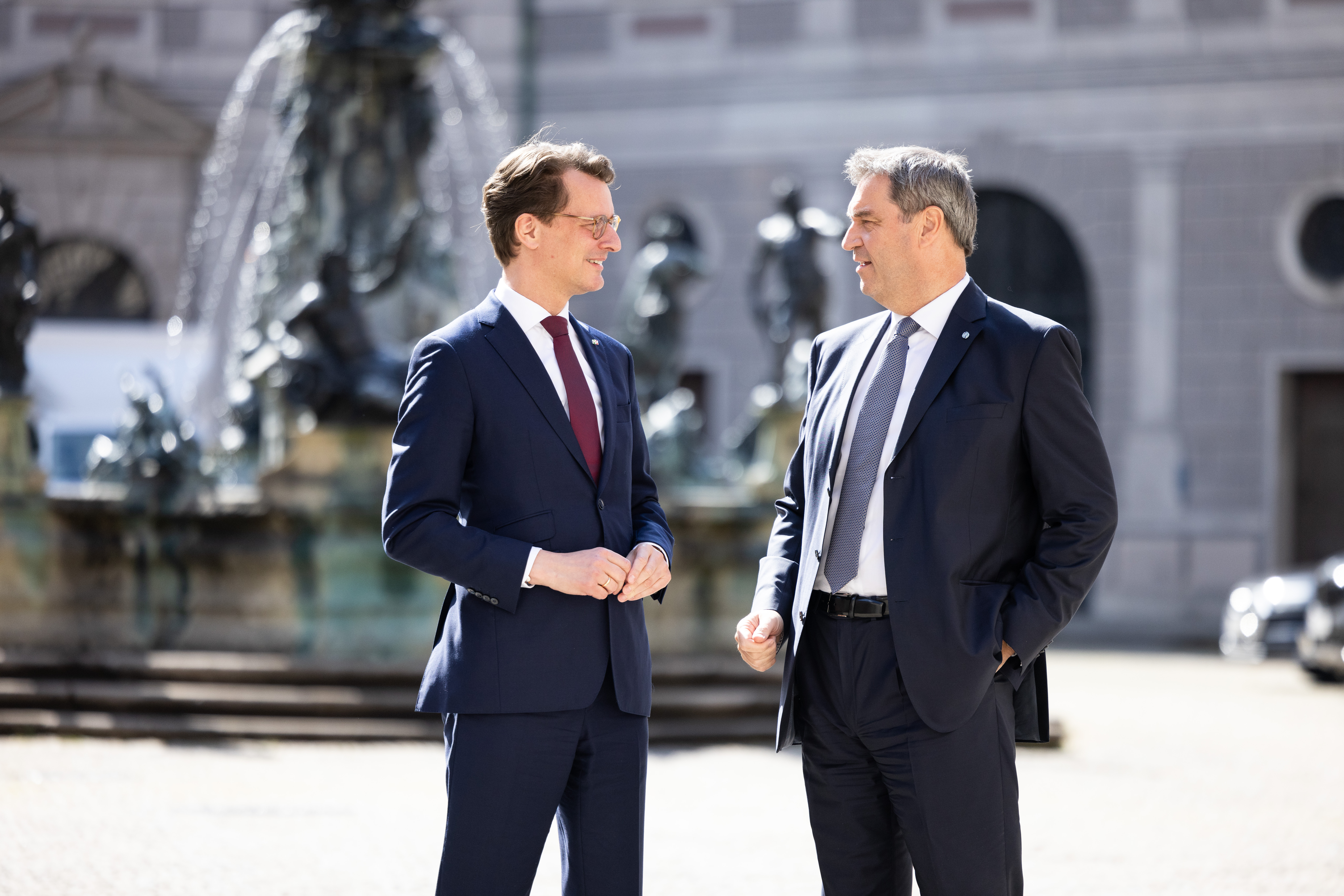 Ministerpräsident Dr. Markus Söder: „Bayern und Nordrhein-Westfalen sind Leistungsmotoren in Deutschland. Unsere Länder kennen und schätzen sich sehr. Es treffen sich heute die beiden größten Bundesländer und arbeiten eng und vertrauensvoll zusammen. Wir haben die meisten Industriearbeitsplätze, die meisten DAX-Unternehmen und auch die meisten Einwohner. Mit der gemeinsamen Sitzung bringen wir unsere enge Partnerschaft unter anderem bei den Themen Energie, Innovation und Migration weiter voran. Unsere Länder sind der Anwalt der Kommunen. Wir brauchen eine sinnvolle Migrationspolitik mit einem klaren Ja zu Hilfe und Arbeitszuwanderung, aber einem ebenso klaren Nein zu Überforderung und illegaler Migration. Die gemeinsame Sitzung ist ein deutlicher Schulterschluss Richtung Bundesregierung in Berlin.“
