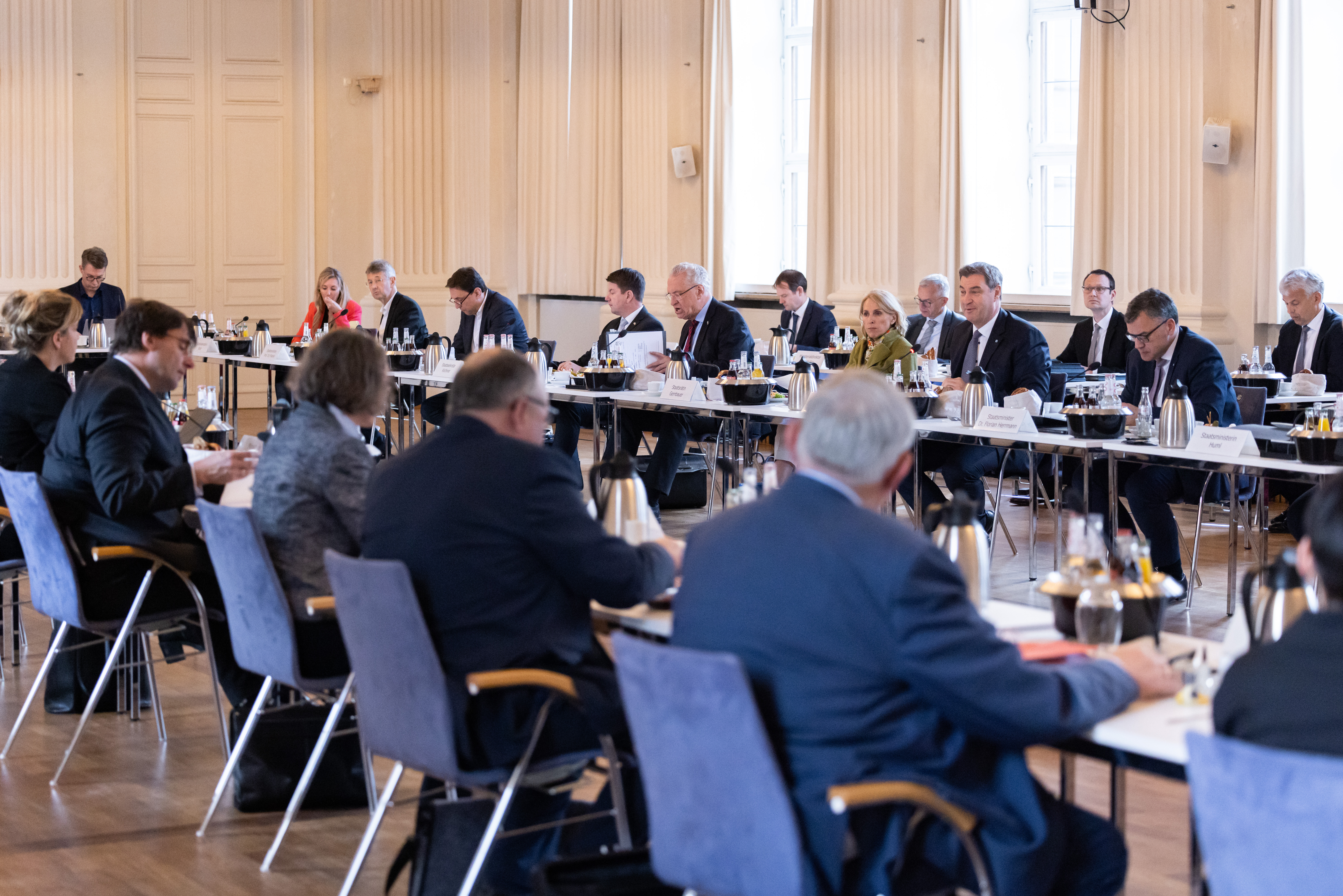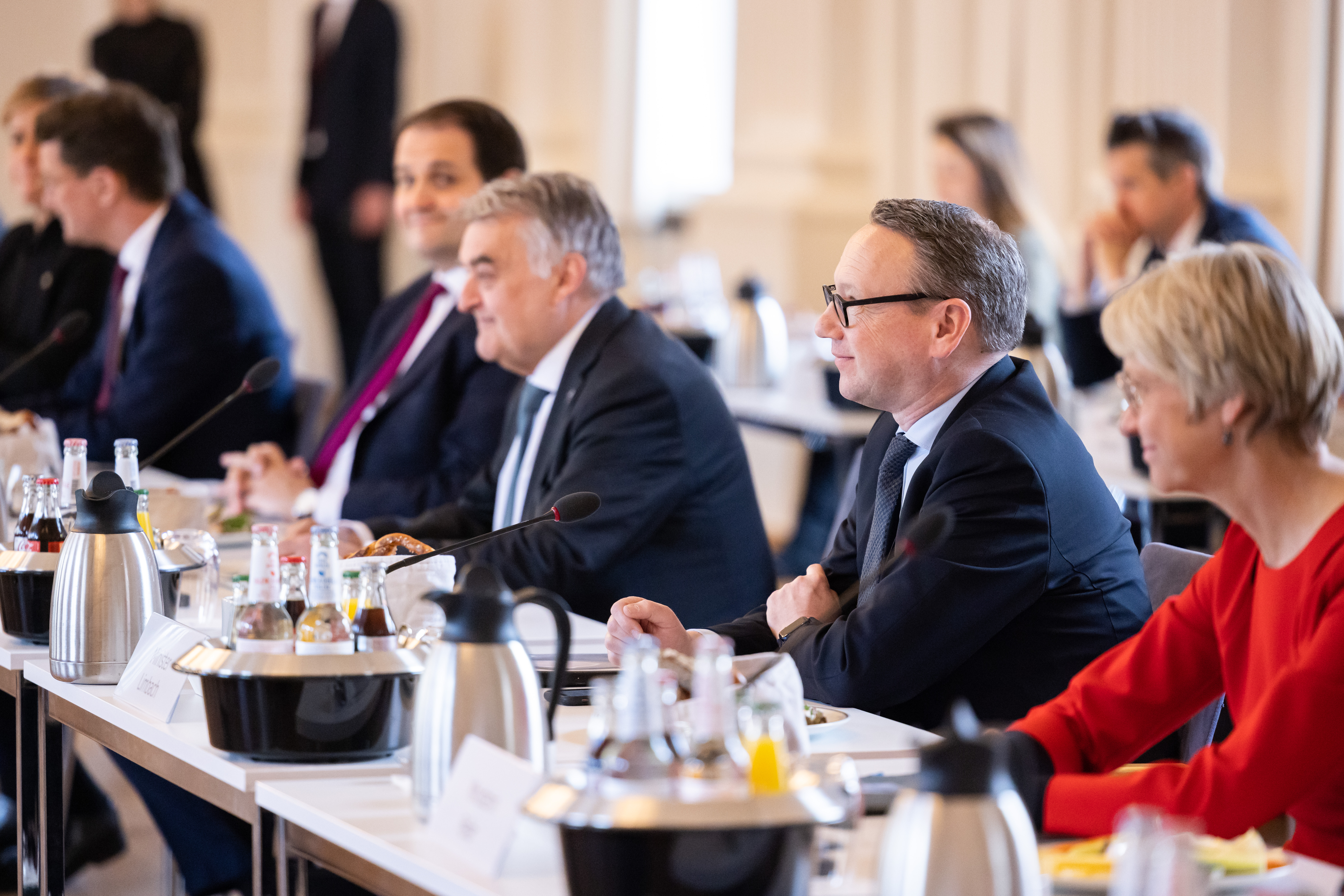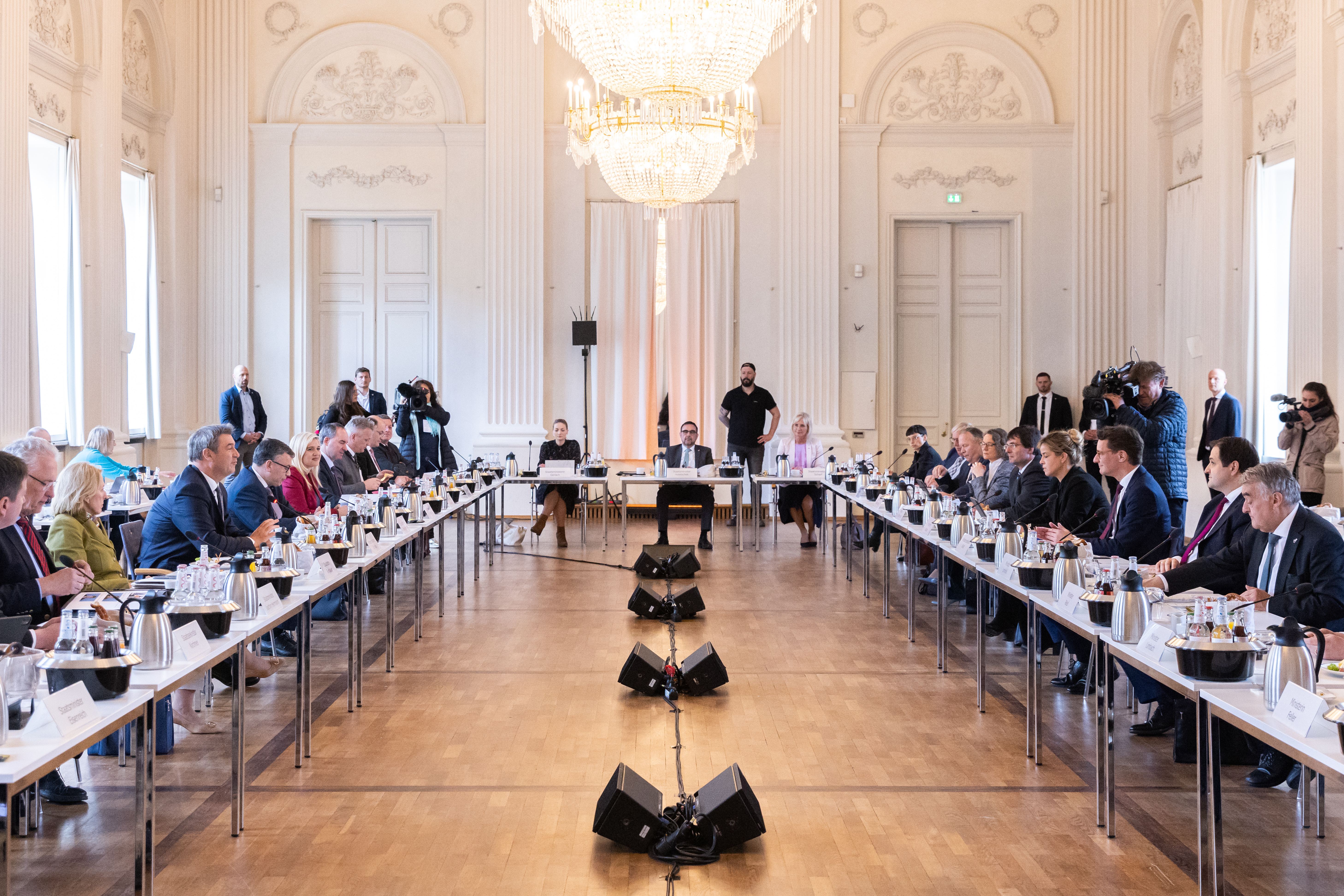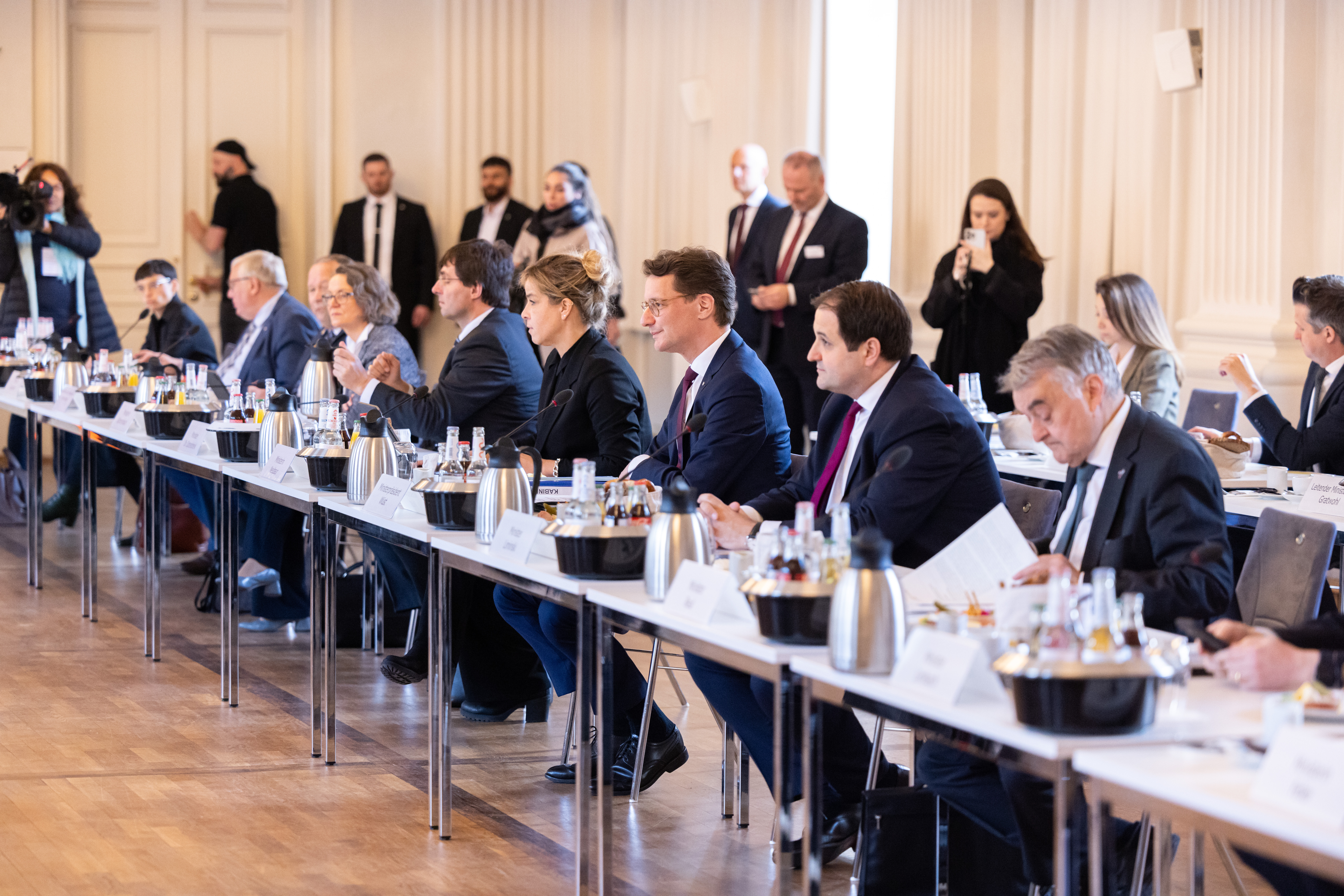In der gemeinsamen Kabinettsitzung haben die Länder wichtige Zukunftsfragen erörtert und beraten. So standen unter anderem die Themen Fachkräftemangel, Hochlauf der Wasserstoffwirtschaft, die Krankenhausreform, Sicherheit, Innovation und gleichwertige Lebensverhältnisse auf dem Land und in den Städten auf der Tagesordnung.