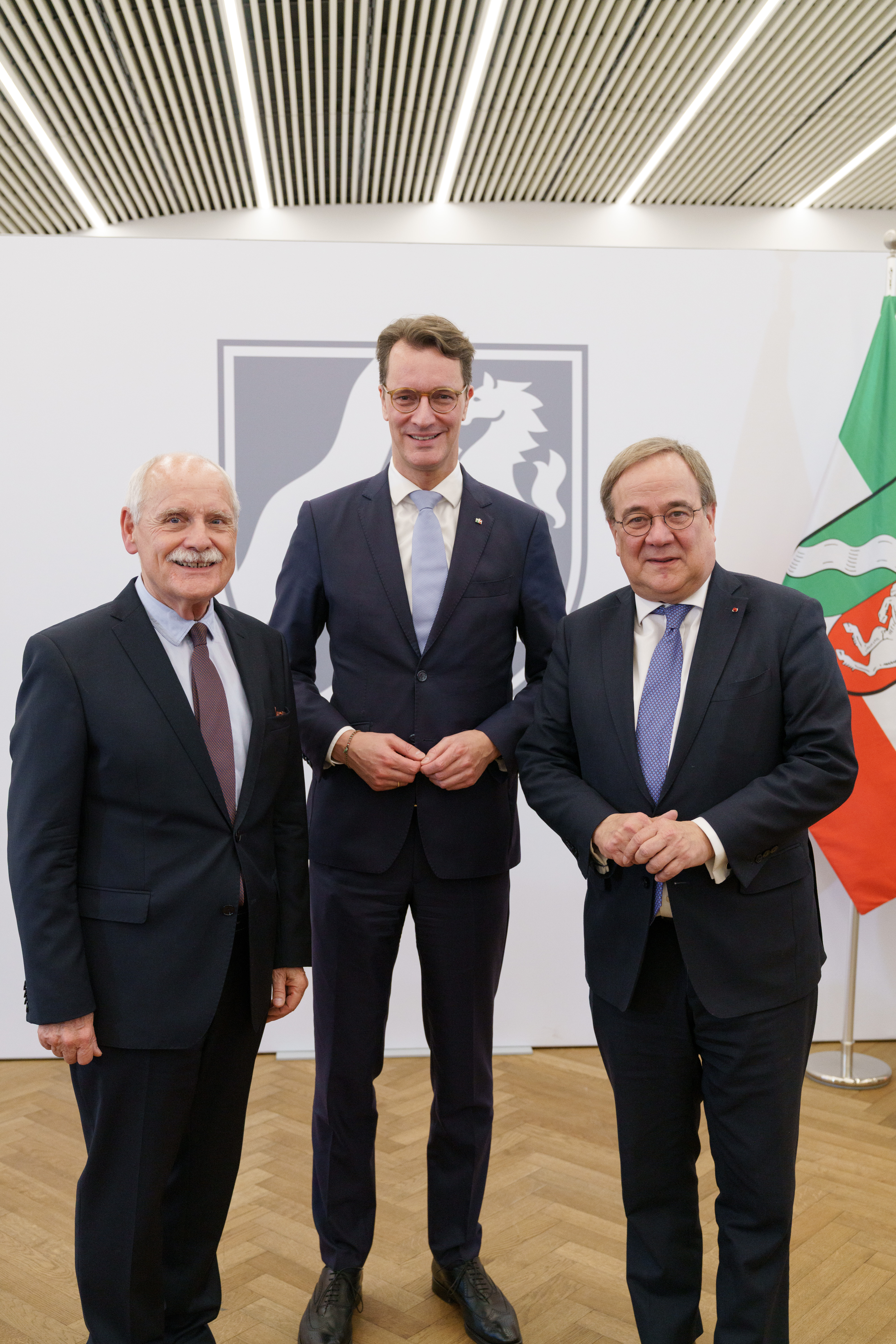 Seit 75 Jahren zeichnet der Internationale Karlspreis zu Aachen Persönlichkeiten oder Institutionen aus, die sich um Europa und die europäische Einigung verdient gemacht haben. Anlässlich dieses besonderen Jubiläums hat Ministerpräsident Hendrik Wüst am Montag, 8. Dezember 2025, Gäste aus Politik, Wirtschaft und Kultur sowie Vertreterinnen und Vertreter des Karlspreisdirektoriums zu einem Empfang geladen. Unter den Gästen waren auch Dr. Jürgen Linden, ehemaliger Vorsitzender des Direktoriums der Gesellschaft zur Verleihung des Karlspreises, sowie Ministerpräsident a.D. Armin Laschet, der neu gewählte Vorsitzende des Direktoriums.