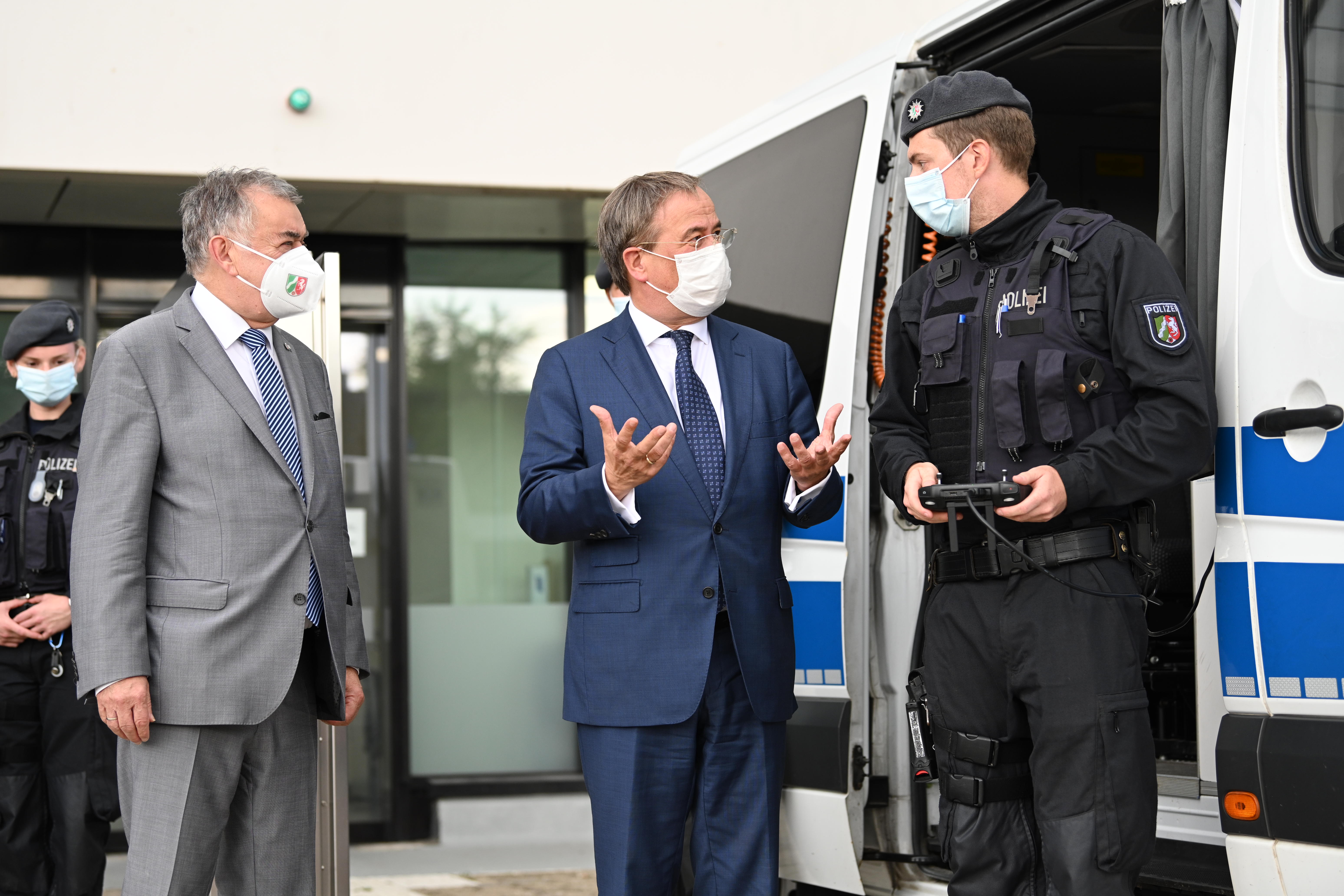 Bei dem Termin in Essen tauschten sich Ministerpräsident Armin Laschet und Innenminister Herbert Reul zudem mit Polizistinnen und Polizisten der Bereitschaftshundertschaft sowie den Mitarbeiterinnen und Mitarbeitern der Sicherheitskonferenz Ruhr über deren Arbeit aus. Ministerpräsident Armin Laschet: „Eine moderne Ausstattung, vernetze Sicherheitsstrukturen, mehr Personal und klare rechtliche Befugnisse: Das Erfolgsgeheimnis der SiKo Ruhr ist auch das Erfolgsgeheimnis unserer Innenpolitik insgesamt.“