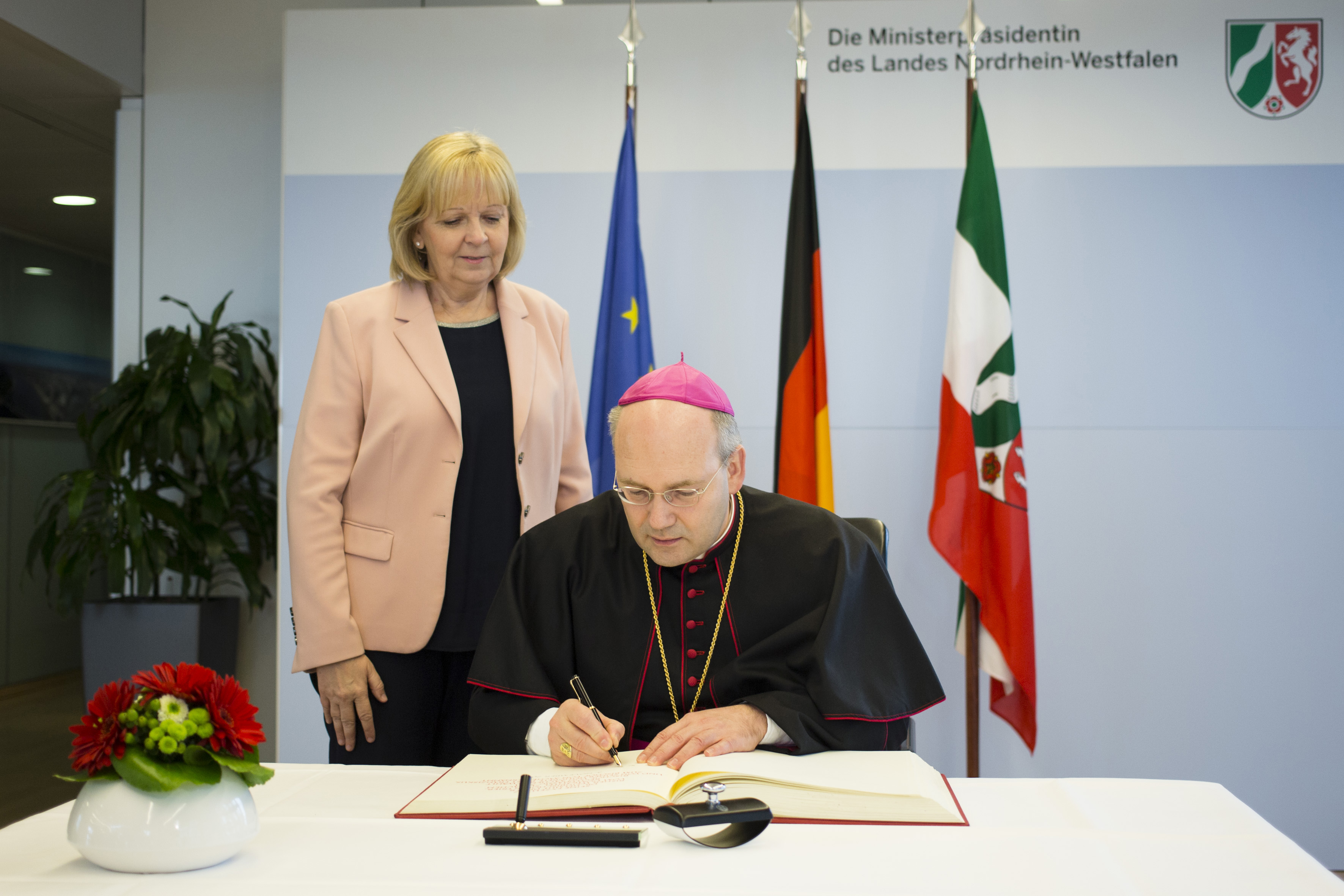 Ministerpräsidentin Hannelore Kraft sagte: „Der Treueeid bekräftigt die gemeinsame Verantwortung von Kirche und Staat für die Menschen in unserem Land. Die Kirchen wie auch die anderen Religionsgemeinschaften sind wichtige Partner, wenn es darum geht, die Aufgaben und Herausforderungen, vor denen wir heute stehen, zu meistern. Die Aufnahme und Integration der Flüchtlinge, für die sich gerade die Kirchen besonders engagieren, ist hierfür ein eindrückliches Beispiel.“