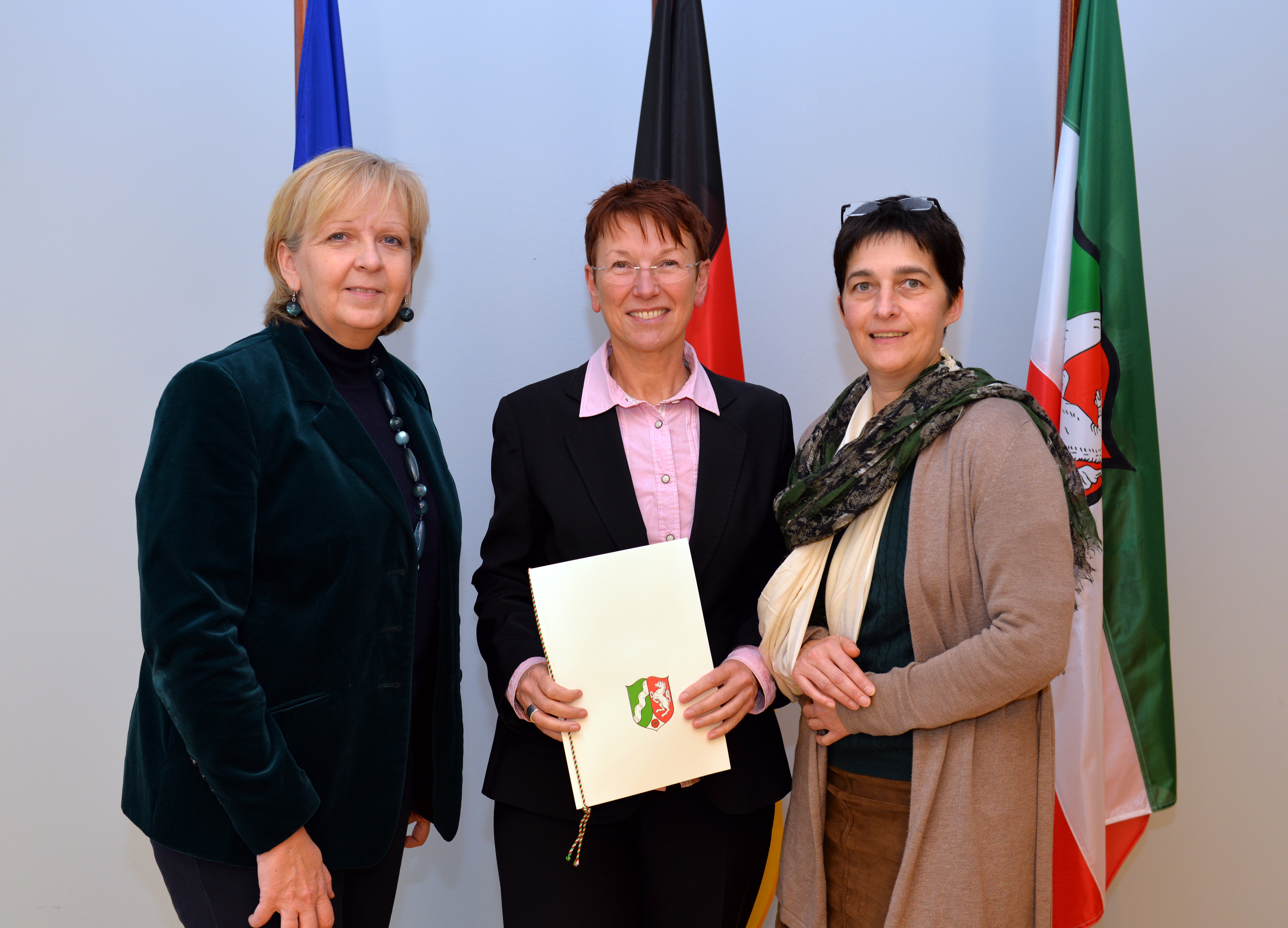 Das Landeskabinett hat auf Vorschlag von Ministerpräsidentin Hannelore Kraft drei neue Staatssekretäre ernannt. Ministerpräsidentin Kraft: „Ich danke den drei ausgeschiedenen Staatsekretären für ihre geleistete Arbeit. Den Nachfolgern wünsche ich auch im Namen des Kabinetts gutes und umsichtiges Handeln zum Wohle des Landes. Alle drei neu ernannten Staatssekretäre bringen beste Voraussetzungen zur Gestaltung ihrer Aufgaben mit.“ Im Anschluss an die Kabinettssitzung überreichte die Ministerpräsidentin im Beisein der zuständigen Minister der neuen Staatssekretärin im Ministerium für Gesundheit, Emanzipation, Pflege und Alter, Martina Hoffmann-Badache, dem neuen Staatssekretär im Ministerium für Inneres und Kommunales, Bernhard Nebe, und dem neuen Staatssekretär für Integration im Ministerium für Arbeit, Integration und Soziales, Thorsten Klute, ihre Ernennungsurkunden.