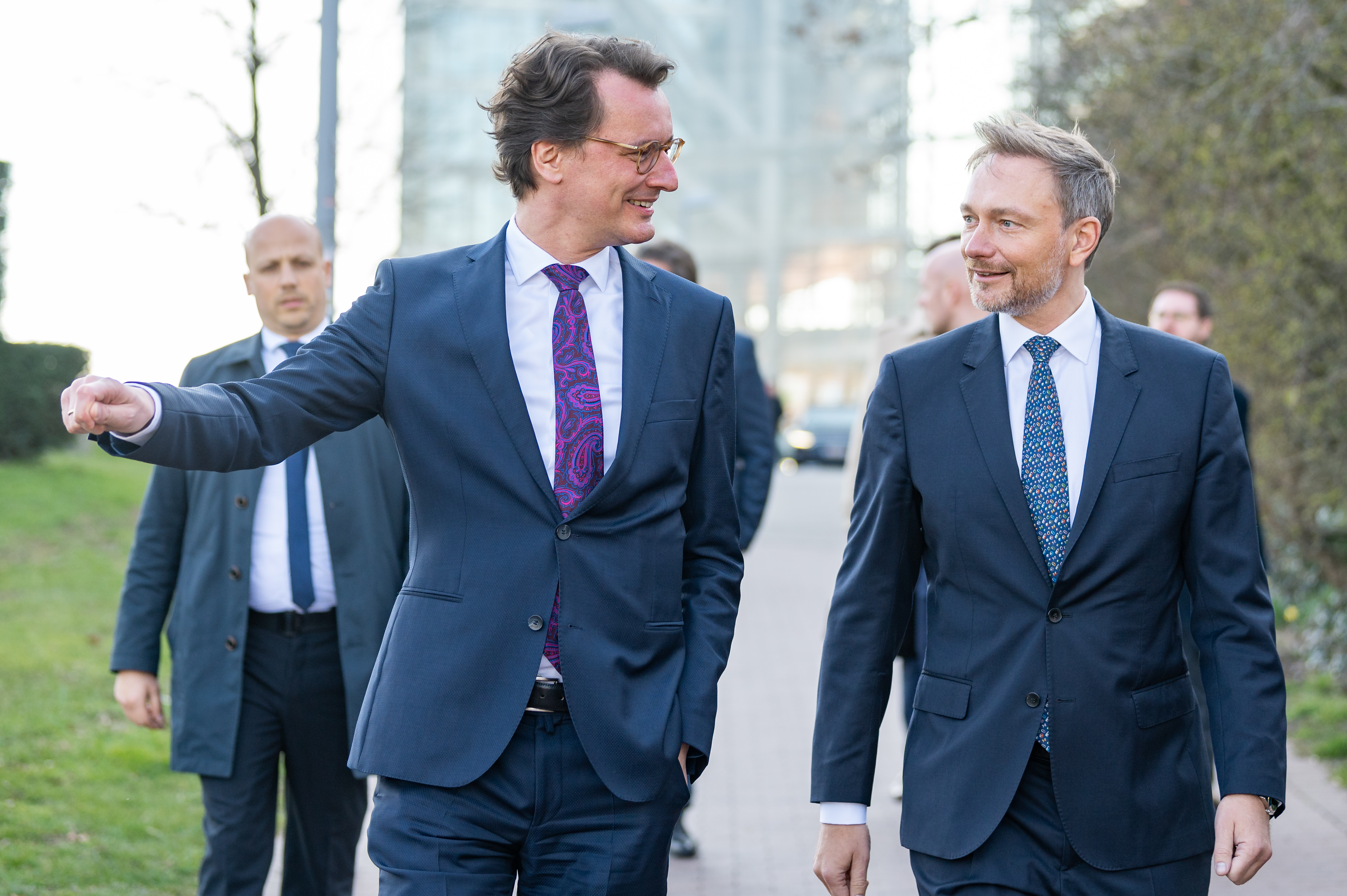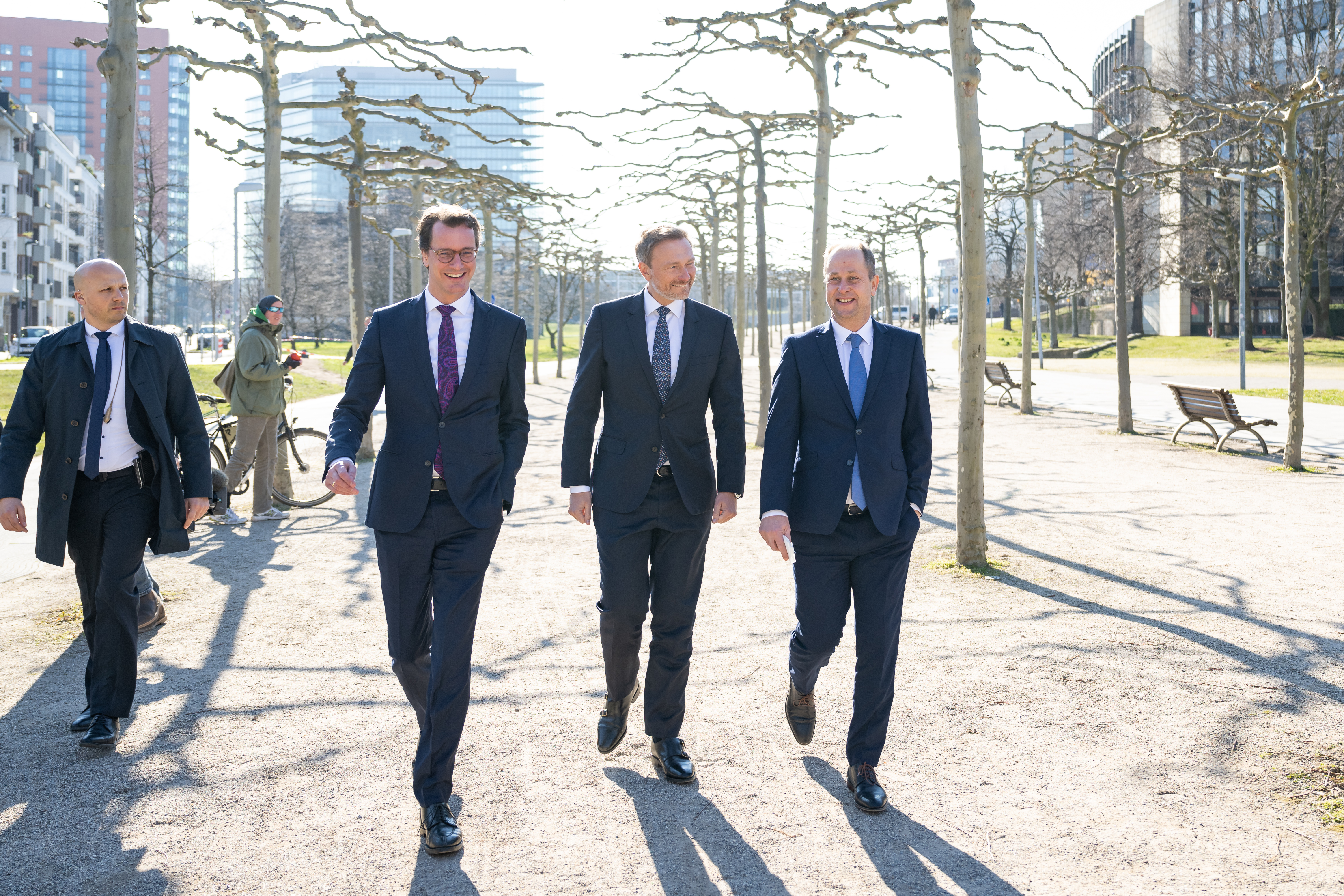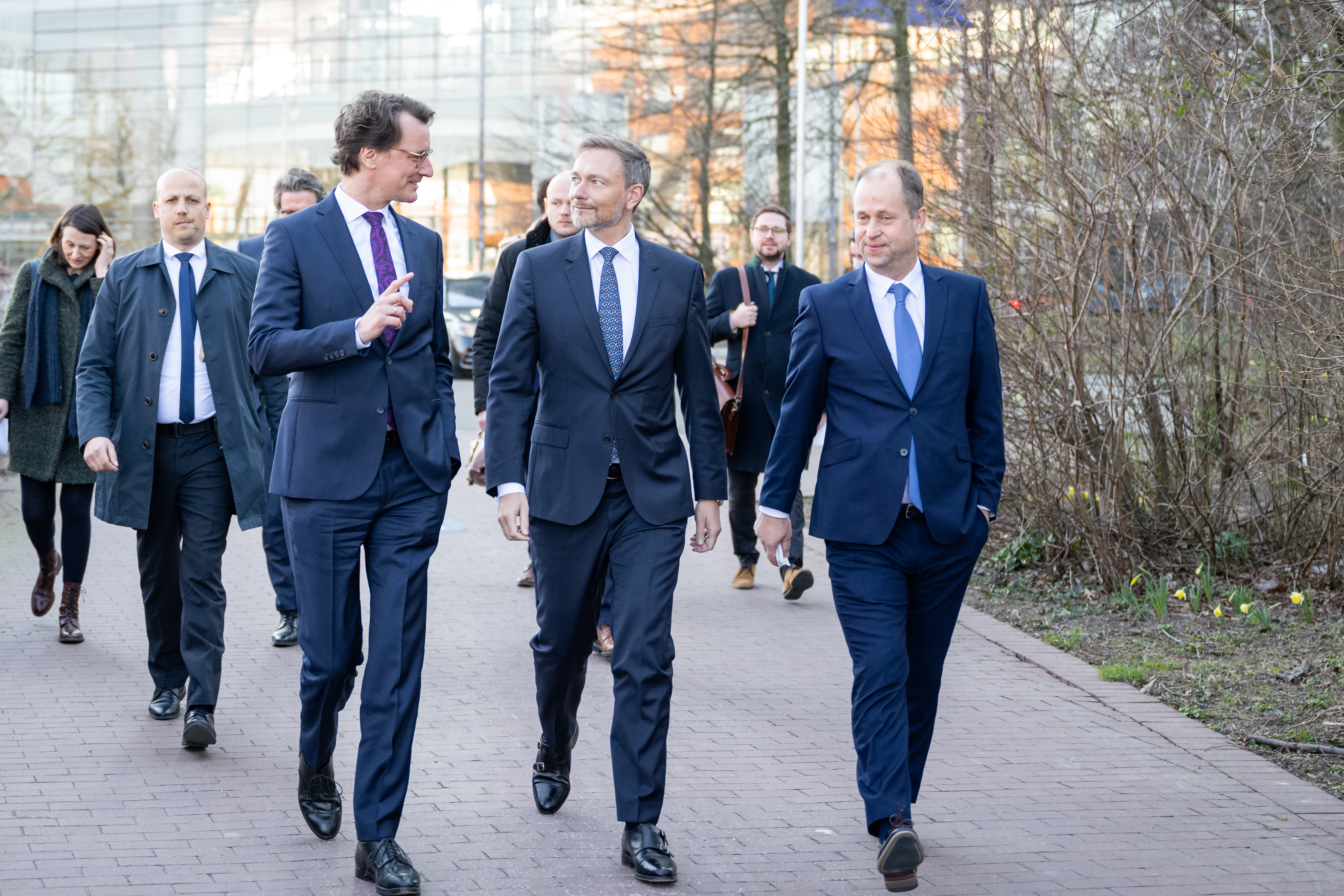 Auf Einladung von Ministerpräsident Hendrik Wüst nahm der Bundesminister der Finanzen Christian Lindner am Dienstag als Gast an der Sitzung des Kabinetts in Düsseldorf teil.