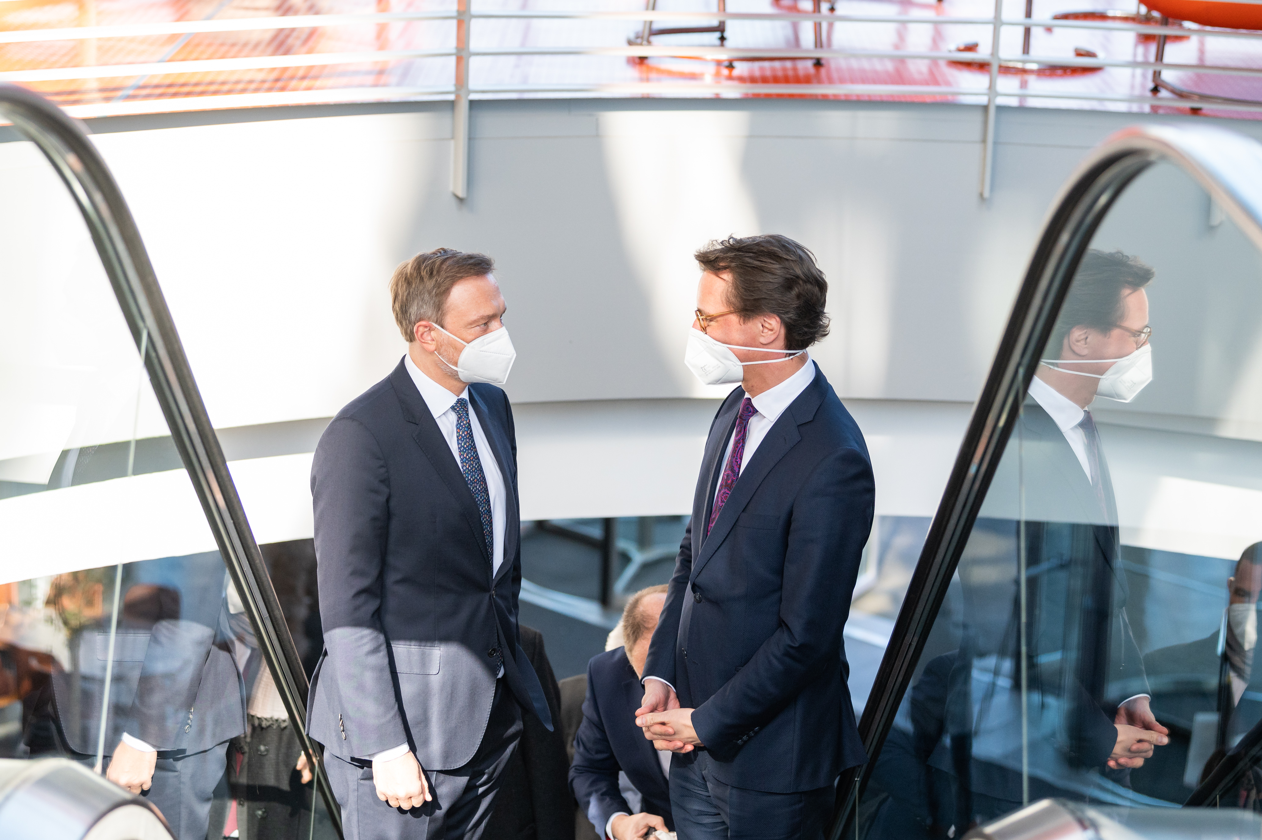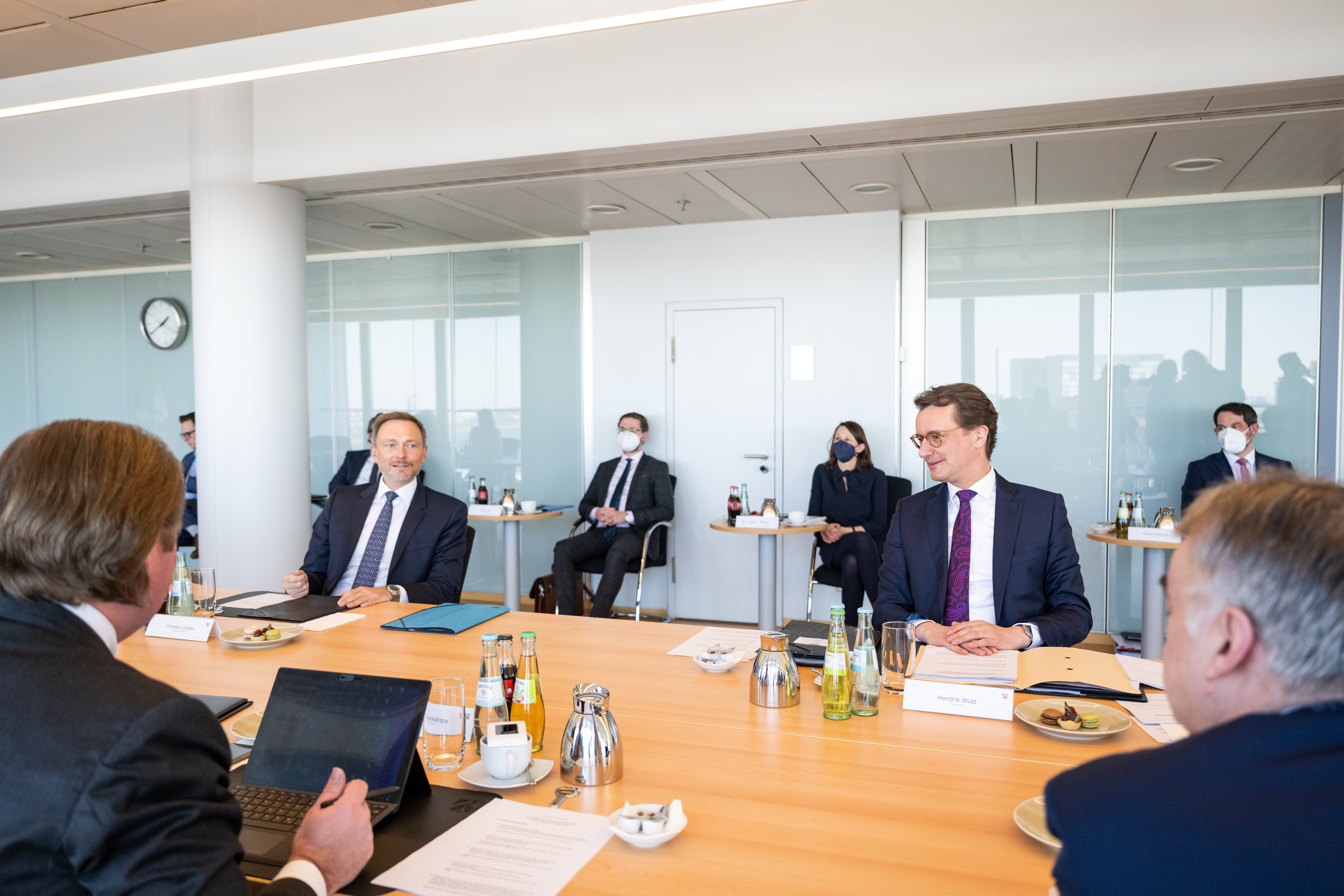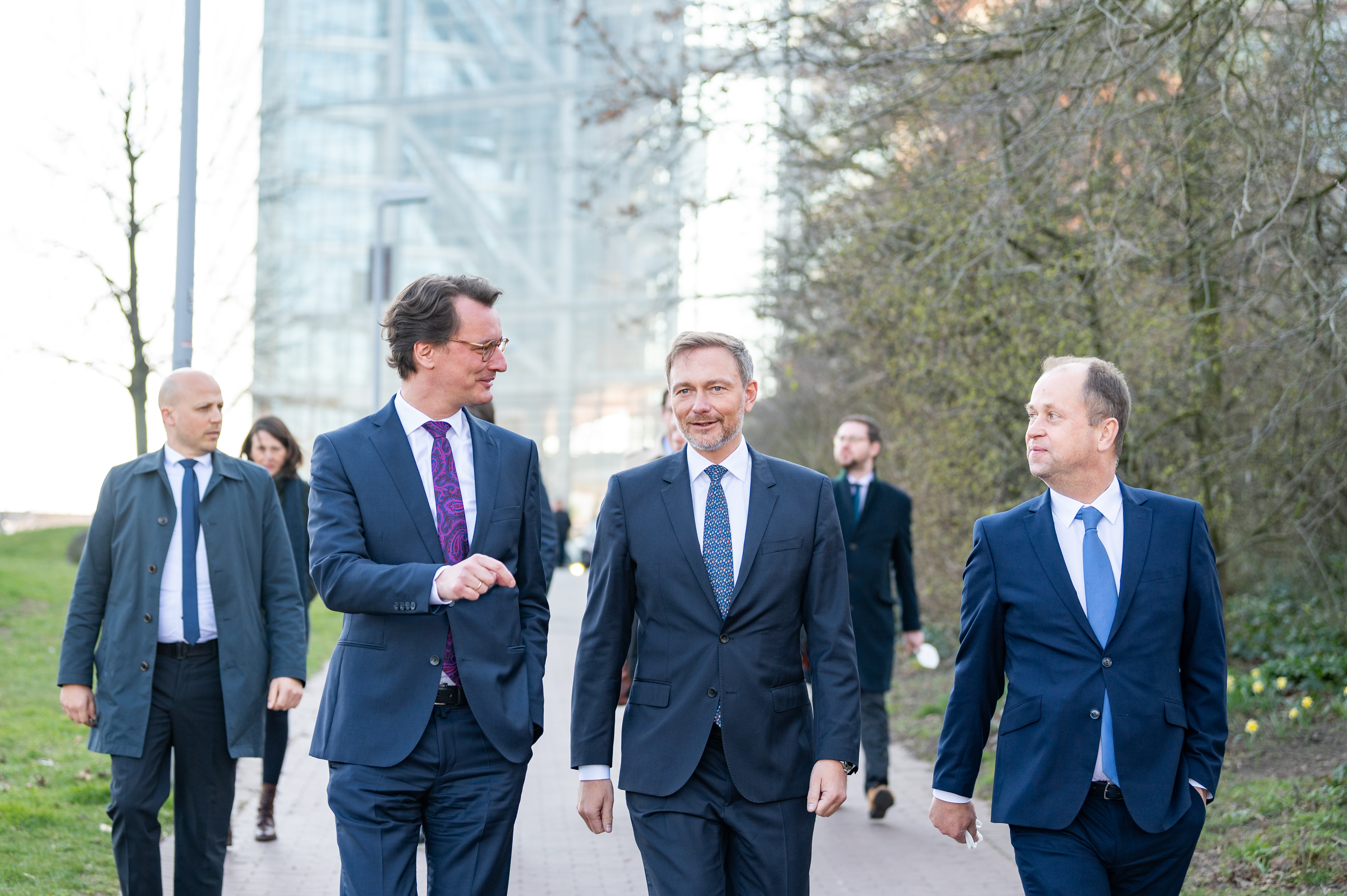 Auf Einladung von Ministerpräsident Hendrik Wüst nahm der Bundesminister der Finanzen Christian Lindner am Dienstag als Gast an der Sitzung des Kabinetts in Düsseldorf teil.