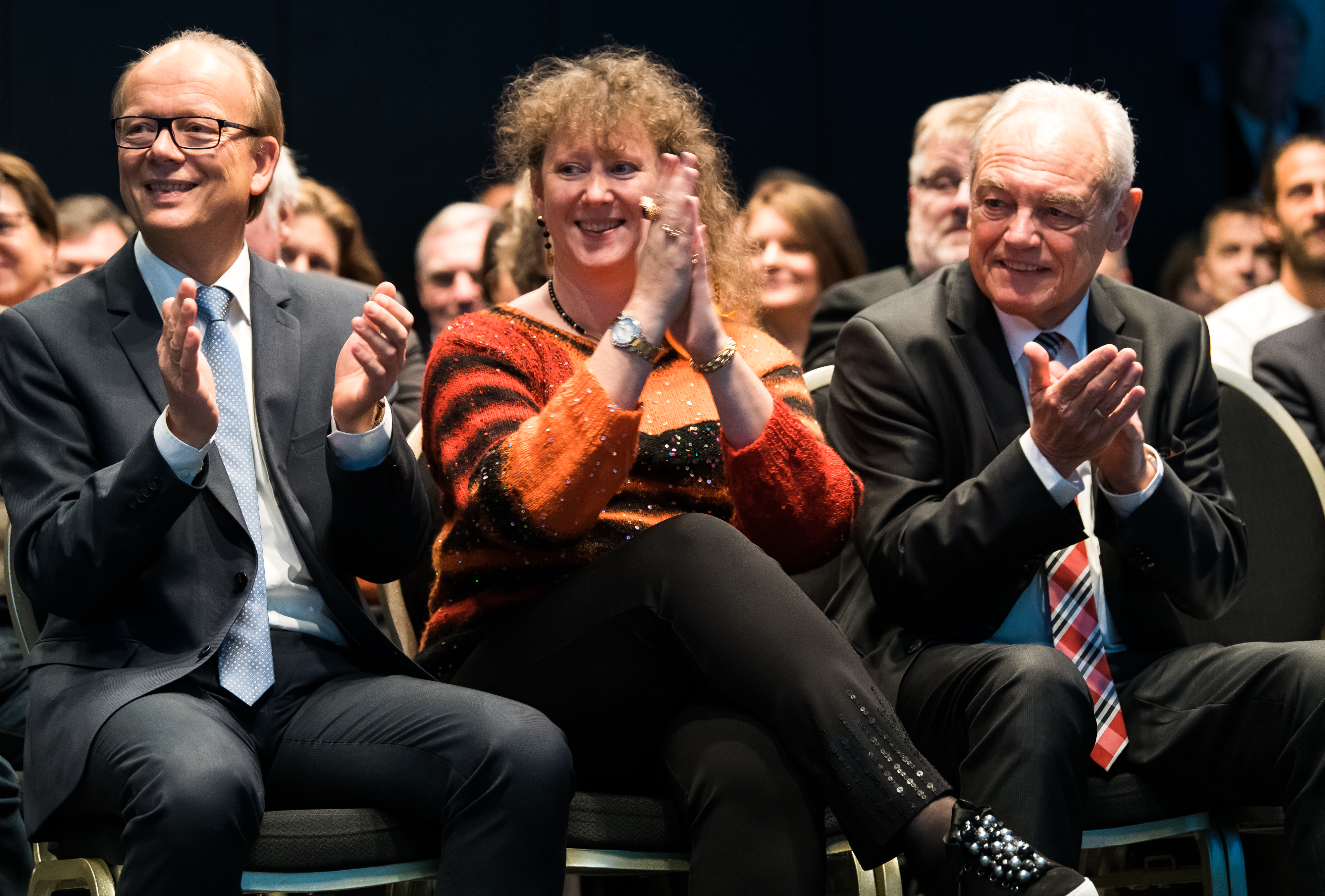 Moderiert von Anke Feller (WDR) würdigten die Laudatoren Professorin Dr. Marie-Luise Klein (Ruhr Universität Bochum), Professor Dr. Theodor Stemper (Bergische Universität Wuppertal) und Professor Dr. Peter Hemmersbach (Universität Oslo) die Preisträgerin und die beiden Preisträger.