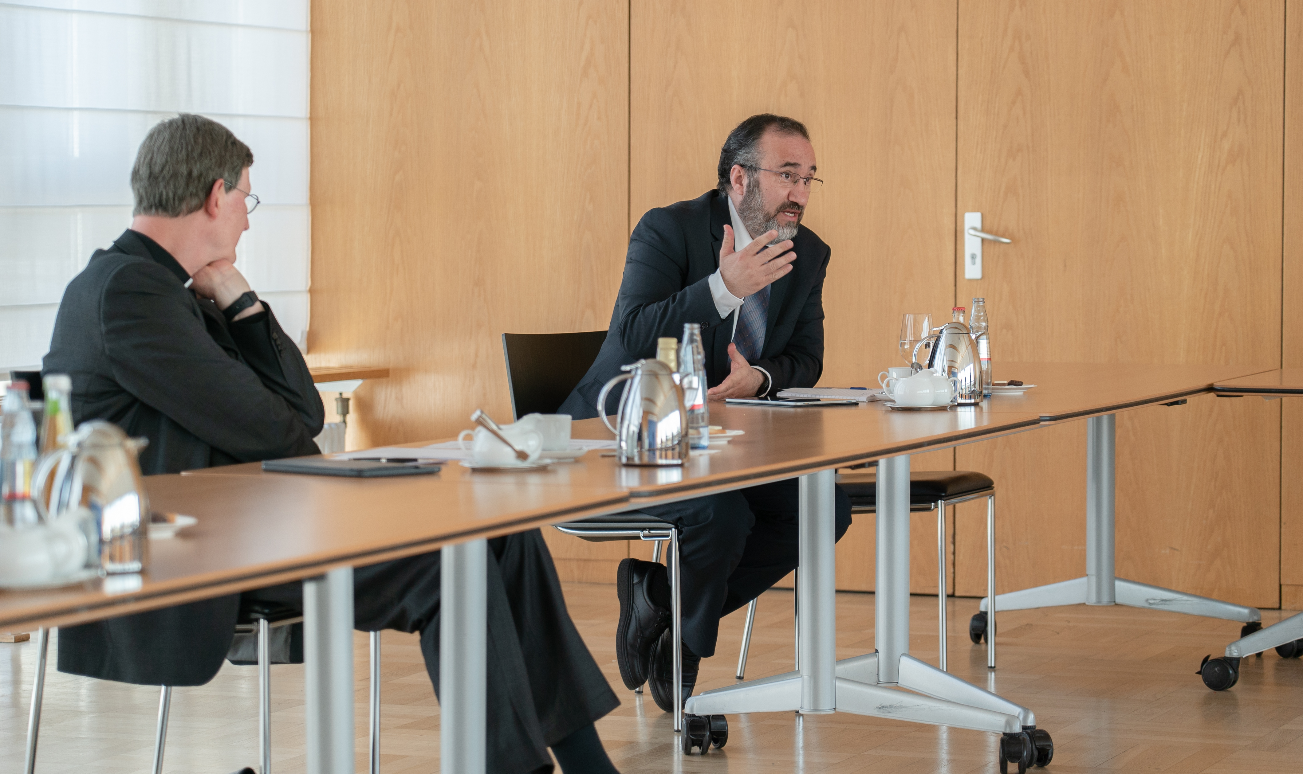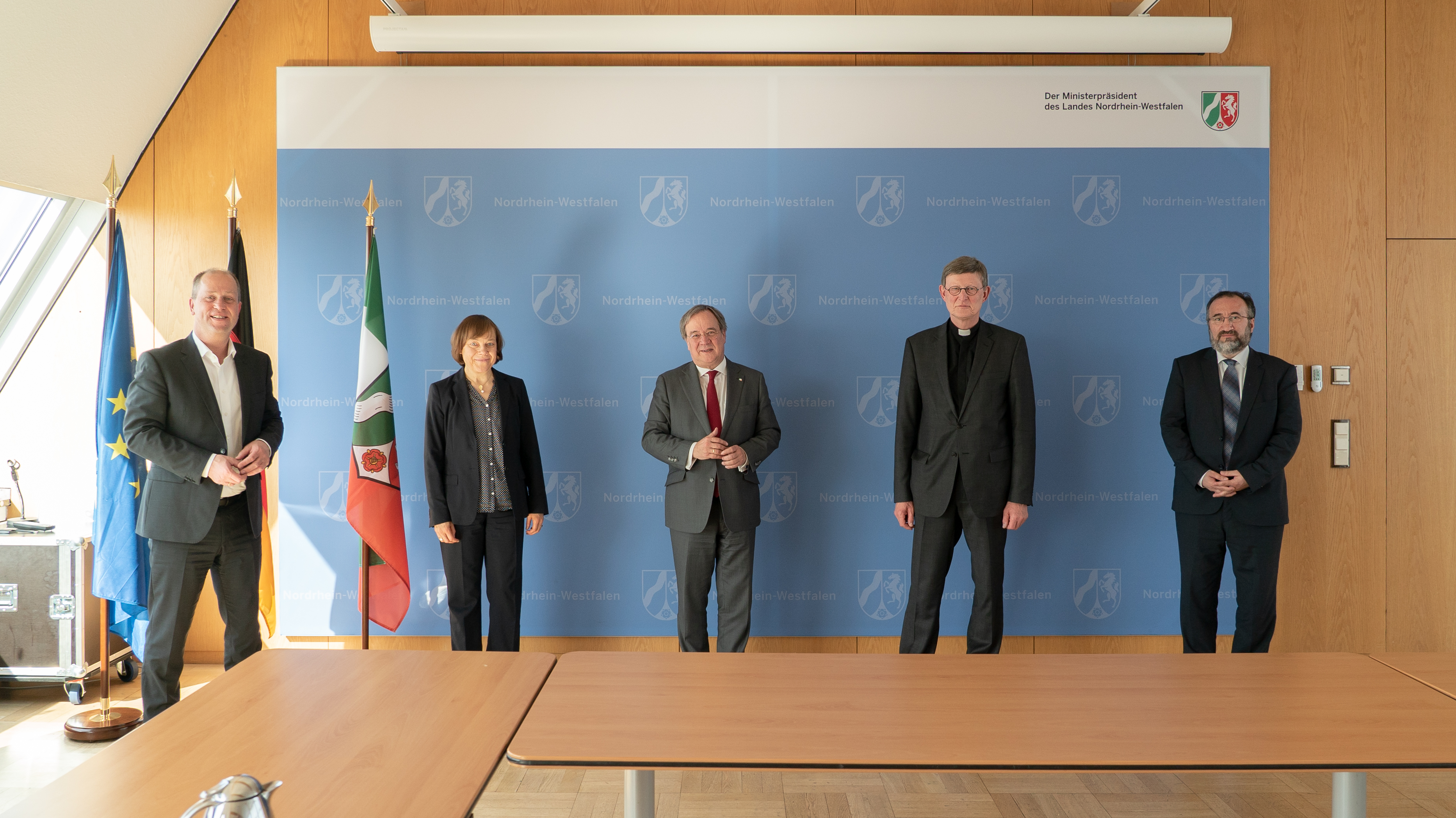 An dem Gespräch in der Staatskanzlei in Düsseldorf nahmen der Erzbischof von Köln, Rainer Maria Kardinal Woelki, die Präses der Evangelischen Kirche von Westfalen, Dr. h.c. Annette Kurschus, sowie Vertreter der jüdischen und muslimischen Gemeinden teil. Für die Landesregierung waren neben Ministerpräsident Armin Laschet zudem der stellvertretende Ministerpräsident und Familienminister Dr. Joachim Stamp und der Chef der Staatskanzlei, Staatssekretär Liminski, bei den Beratungen anwesend.