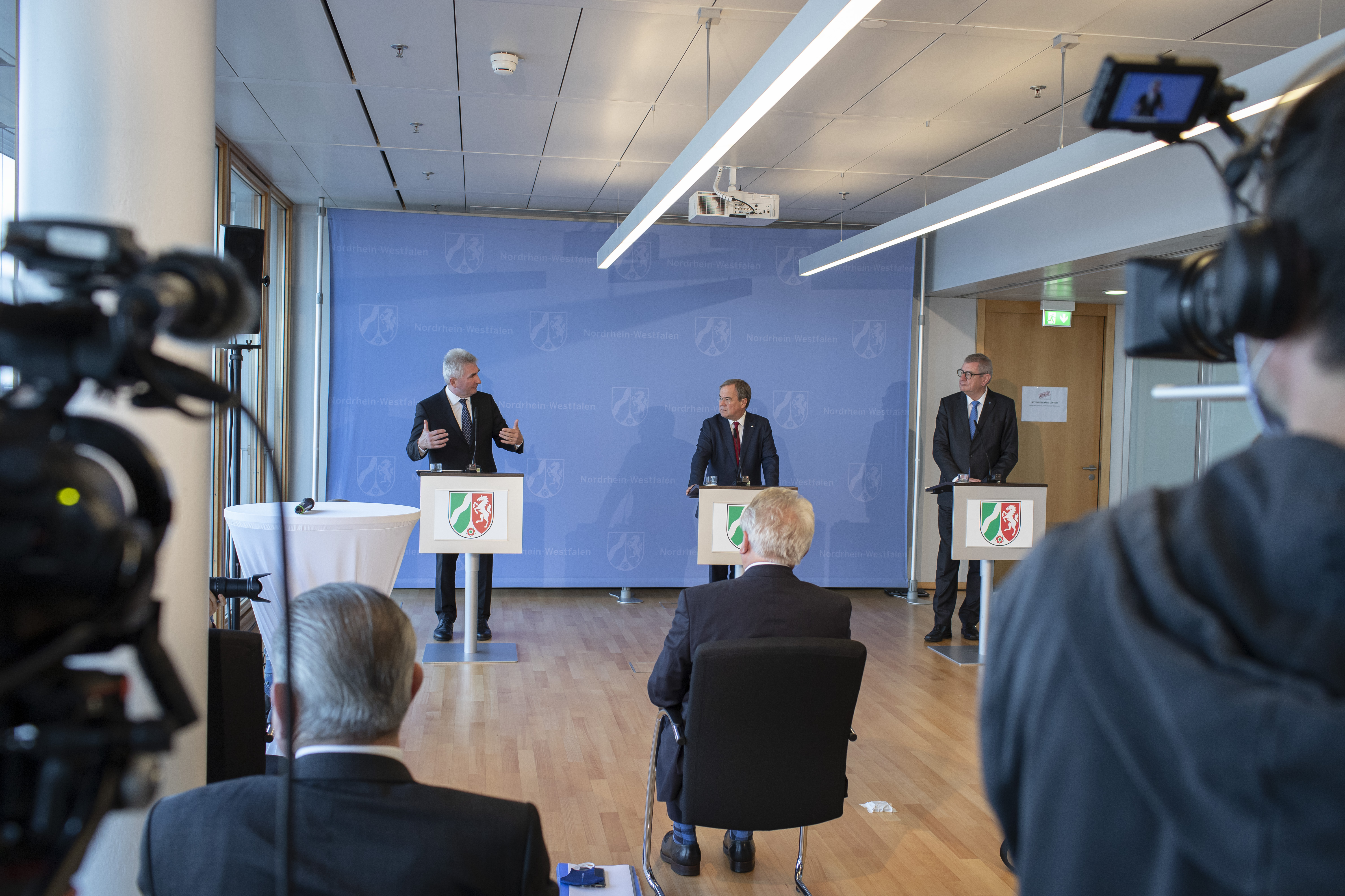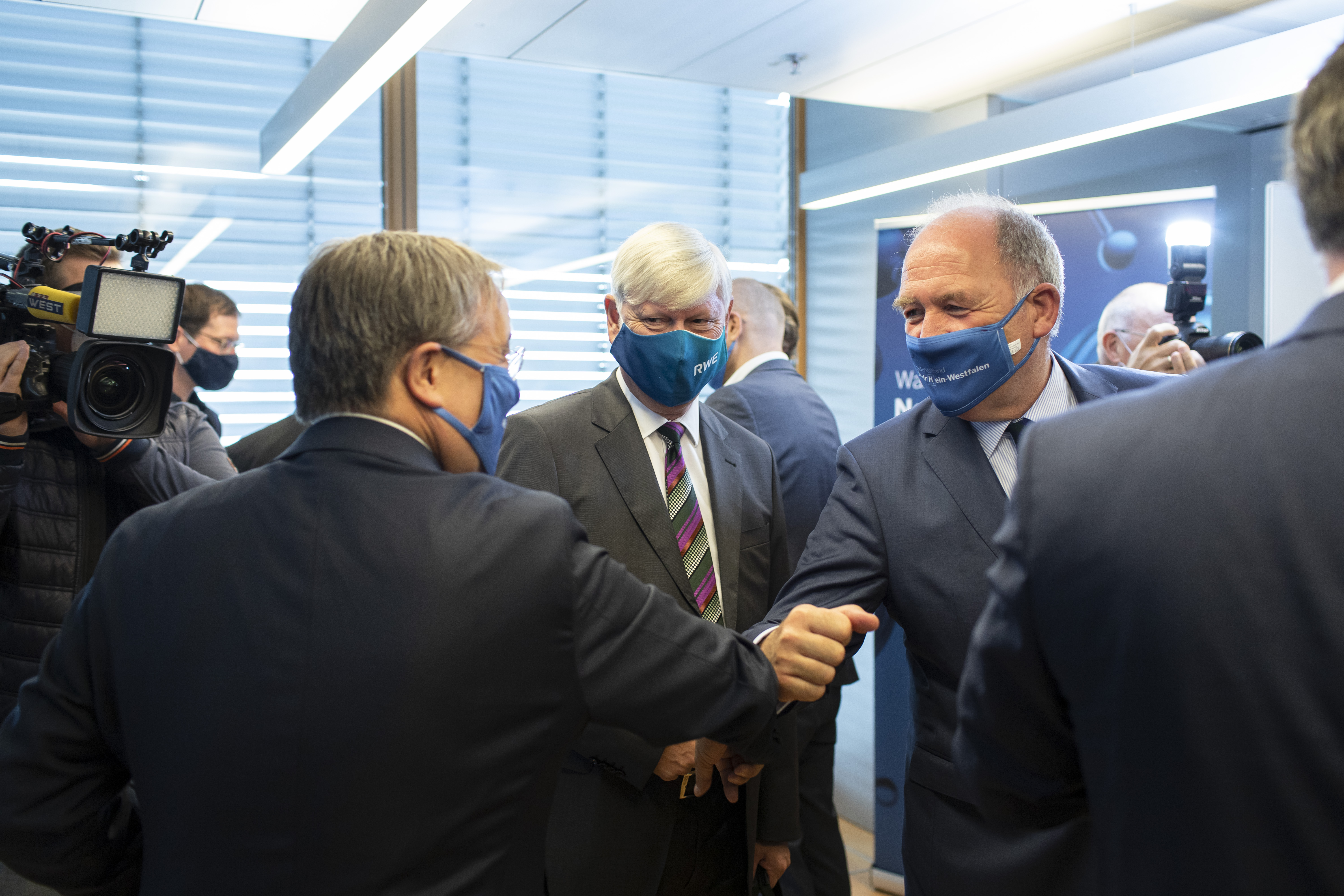 Ministerpräsident Armin Laschet und Wirtschafts- und Digitalminister Prof. Dr. Andreas Pinkwart haben am 12. Oktober 2020 Vorstandsvorsitzende und Inhaber nordrhein-westfälischer Unternehmen zu einem branchenübergreifenden Spitzengespräch Wasserstoff in Düsseldorf getroffen. Im Nachgang des Gesprächs überreichte der Präsident der Landesvereinigung der Unternehmensverbände Nordrhein-Westfalen (unternehmer nrw), Arndt G. Kirchhoff, stellvertretend ein Projektpapier „Aufbruch in die Zukunft: Transformationspfade für nachhaltige industrielle Projekte in Nordrhein-Westfalen”, das von Persönlichkeiten der nordrhein-westfälischen Industrie erarbeitet und unterzeichnet wurde. Das Papier beinhaltet Projektvorschläge mit einem Investitionsvolumen von rund vier Milliarden Euro für den Industriestandort Nordrhein-Westfalen.